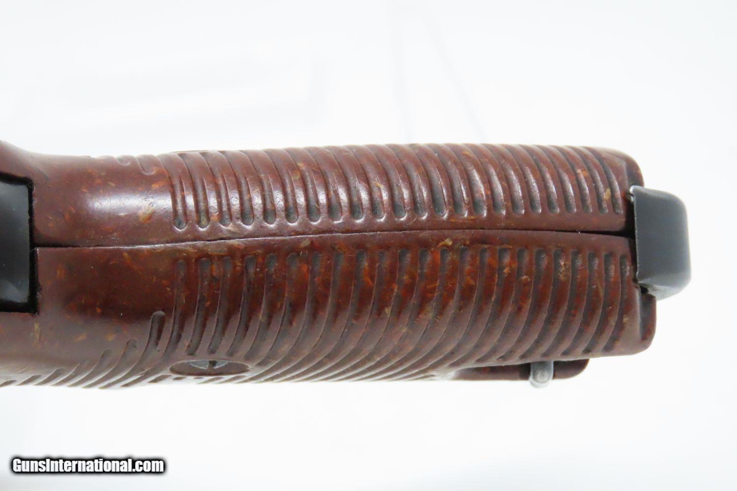 Description: RUSSIAN CAPTURE WW2 Walther “ac/44” P.38 GERMAN MILITARY Pistol C&R Third Reich Sidearm Captured by the Soviets! Here we present a Nazi German Walther “ac/44” code P38 Pistol, made in November of 1944 in Zella-Mehlis. The P38 was designed by Walther to replace the Luger P08 as the standard service weapon for the Third Reich’s Wermacht. The Luger was a ground-breaking design, but quite expensive to produce. The P38 was the first locking breech pistol to feature the double/single action firing mechanism with a decocking safety lever, a prelude to many modern pistols to come. It also features a loaded chamber indicator that is both visible and tactile, extending out of the top rear of the slide, just above the hammer. The falling block locking mechanism was also carried into future pistol designs. Many of these design features are found in the Beretta 92 or U.S. M9 pistols. The Wermacht was the primary buyer of these pistols, but the German police also used about 6,800 P38s. The left side of the slide is marked “P.38” and “ac/44”, the code for Walther and the year of manufacture. The frame, slide and magazine bear the acceptance marks “Eagle/359”. The overall condition is near fine. The action is strong. The bore is bright. Both grips are in fine shape. Numbers match. This example has a Russian capture "X" marking on frame with German WaffenAmts. Reproduction P.08 holster in fine shape. A fantastic piece made for the German military and police then captured and used by the Soviets! This firearm is classified as a Curio & Relic. Barrel is 4-3/4 inches. Caliber: 9x19mm Luger Overall condition as seen in photos. Very Fast. Very Safe. FREE SHIPPING. Will need to be sent to your local FFL or C&R licensee. This firearm is classified as a Curio & Relic. Guaranteed AUTHENTIC & Includes CERTIFICATE OF AUTHENTICITY. ancestryguns $1945 #201646 SOLD Curio/Relic: Yes |