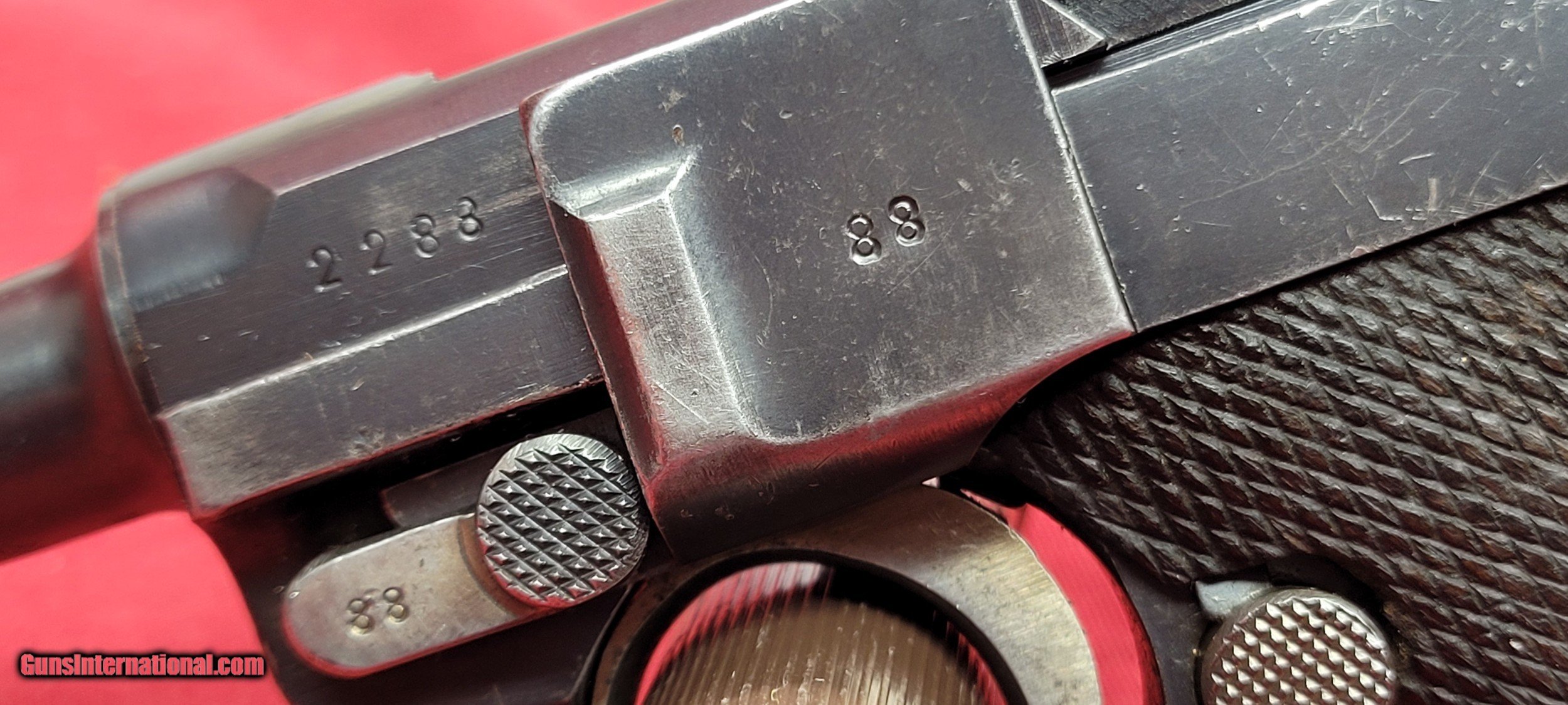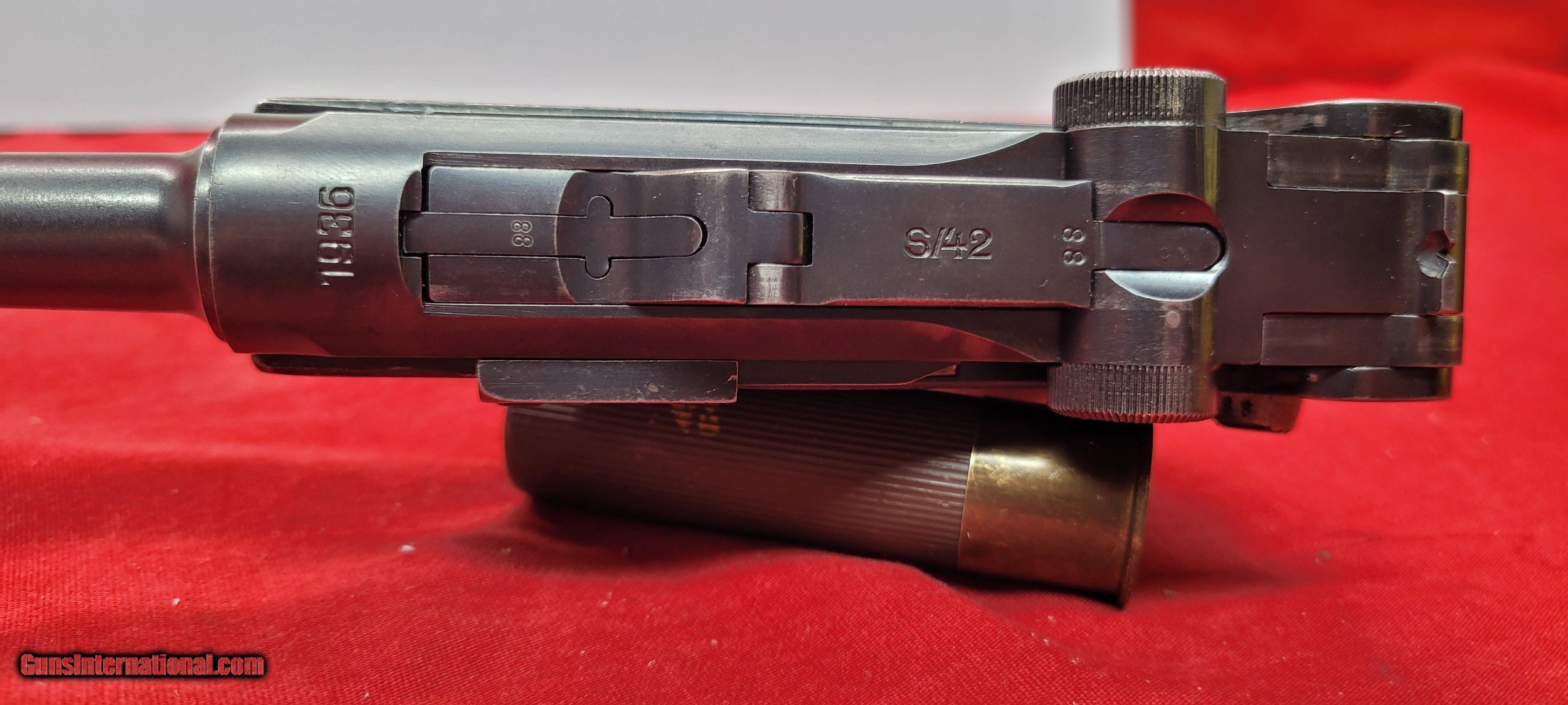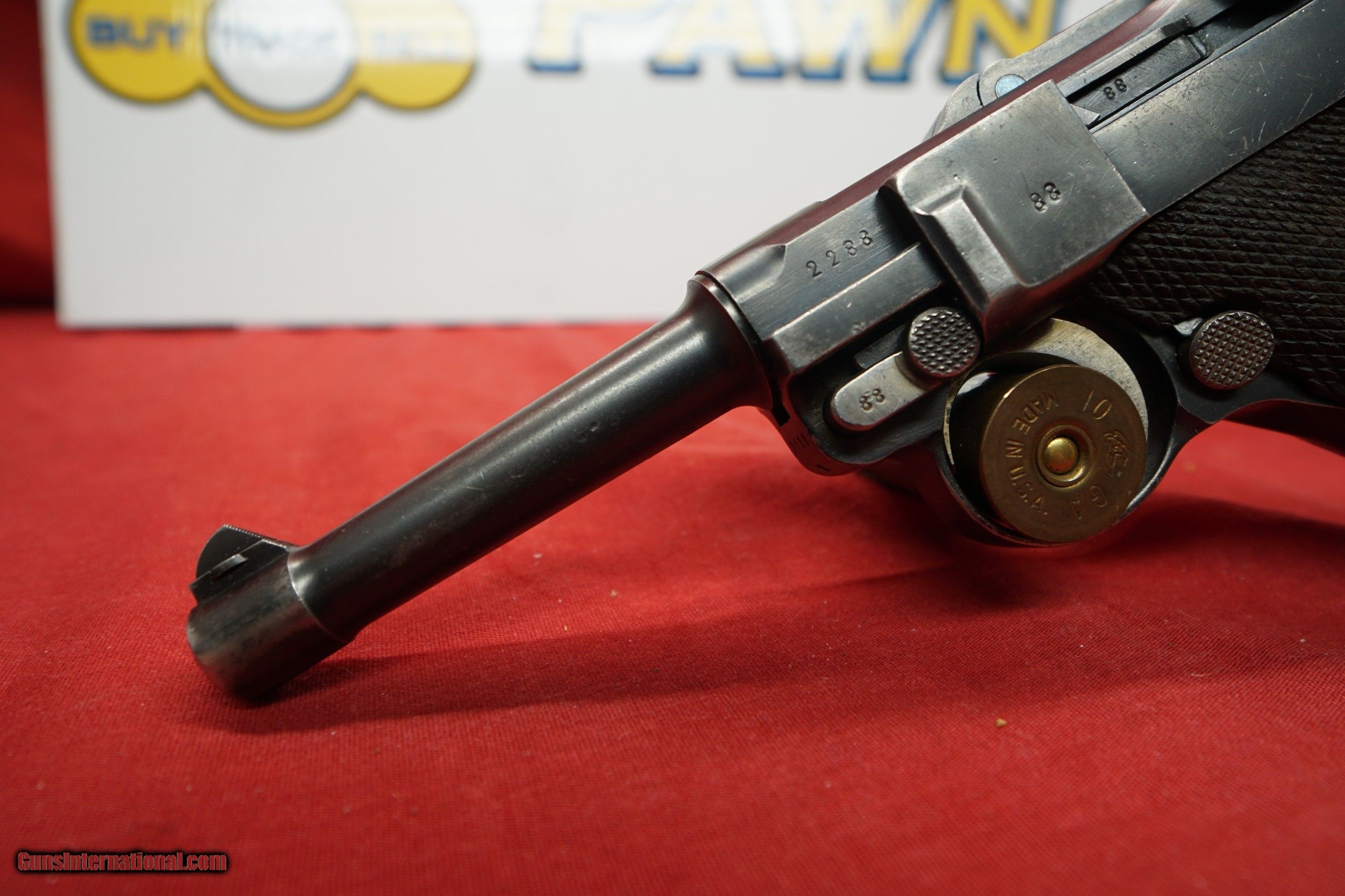 Description: Price reduced...Another great item from Gainesville Pawn! Up for sale is a S/42 PO 8 Luger. Mauser made in 1936. This pistol is chambered in 9x19. This handgun is in excellent condition with some minor apparent signs of wear present. The bore of this pistol is shiny and the rifling is dull. Please see attached photos. *Please be aware that all items are sold “AS IS”. Ask questions BEFORE placing a bid. Feel free to call us at our store (352) 240-6452 or email us at Gainesvillepawn(at)gmail(dot)com with ANY questions. We do not accept trades or offers through through Guns International We only entertain trades and offers through our store. $35 shipping and handling. Insurance extra. We only accept USPS money orders and major credit cards for payment. 3% convenience fee for credit cards. WE collect Florida state sales tax for in state sales. Please be aware that this item is for sale in our store as well as the occasional gun show so it may be sold there at any time. We will not ship the item until you have your dealer/receiving store email us a signed copy of their FFL to gainesvillepawn(at)gmail(dot)com SOLD Curio/Relic: Yes Rifle Caliber: 9x19mm Parabellum (9mm Luger, 9x19mm NATO) Manufacturer: Mauser Model: P08 Serial Number: 2288 Barrel Length: 4 inches Condition: Excellent Metal Condition: Excellent Wood Condition: Excellent Bore Condition: Excellent |