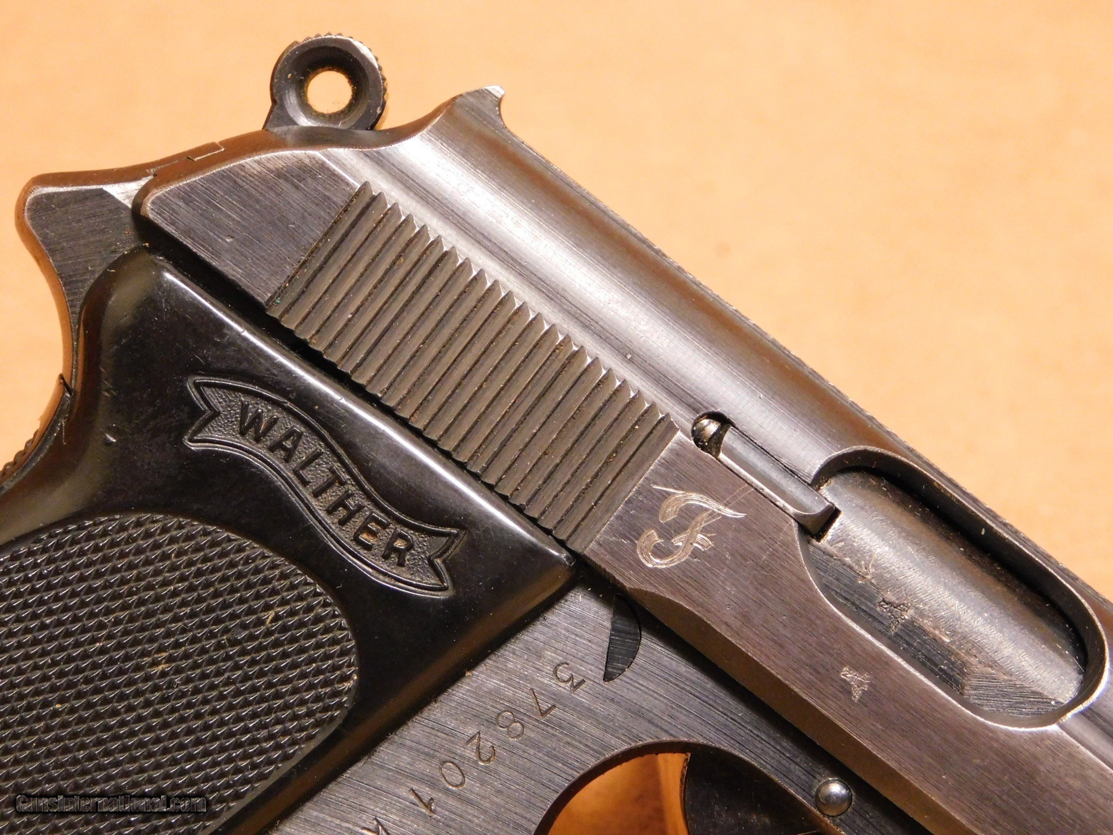 Description: This is a scarce E/359 Waffenampt PPK steel frame pistol. A stylized "F" has been added to the slide, probably by the vet who brought it back. This gun comes with an Akah-marked holster. These E/359 PPK variants are highly sought after by collectors. All items are also available for sale in our brick & mortar store and are subject to prior sale. Think long, think wrong. Payment On firearms, we typically only accept credit cards or money orders/cashier's checks.
