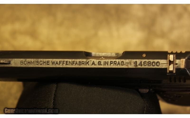 Description: Marked "BOHMISCHE WAFFENFABRIK AG in PRAG, and sporting German Army markings. This handgun was produced in German occupied Czechoslovakia. This handgun has no import markings which gives credence to the firearm being a GI bring back after/during ww2. The bluing is clean with no rust or pitting. The firearm operates well and includes one magazine. 7.65MM (.32 ACP) SOLD Chambers: 7.65 (32ACP) Metal Condition: Good with minor holster wear Barrels: 3.5 inches Weight: 2 lbs Item Location: Nashville, TN |