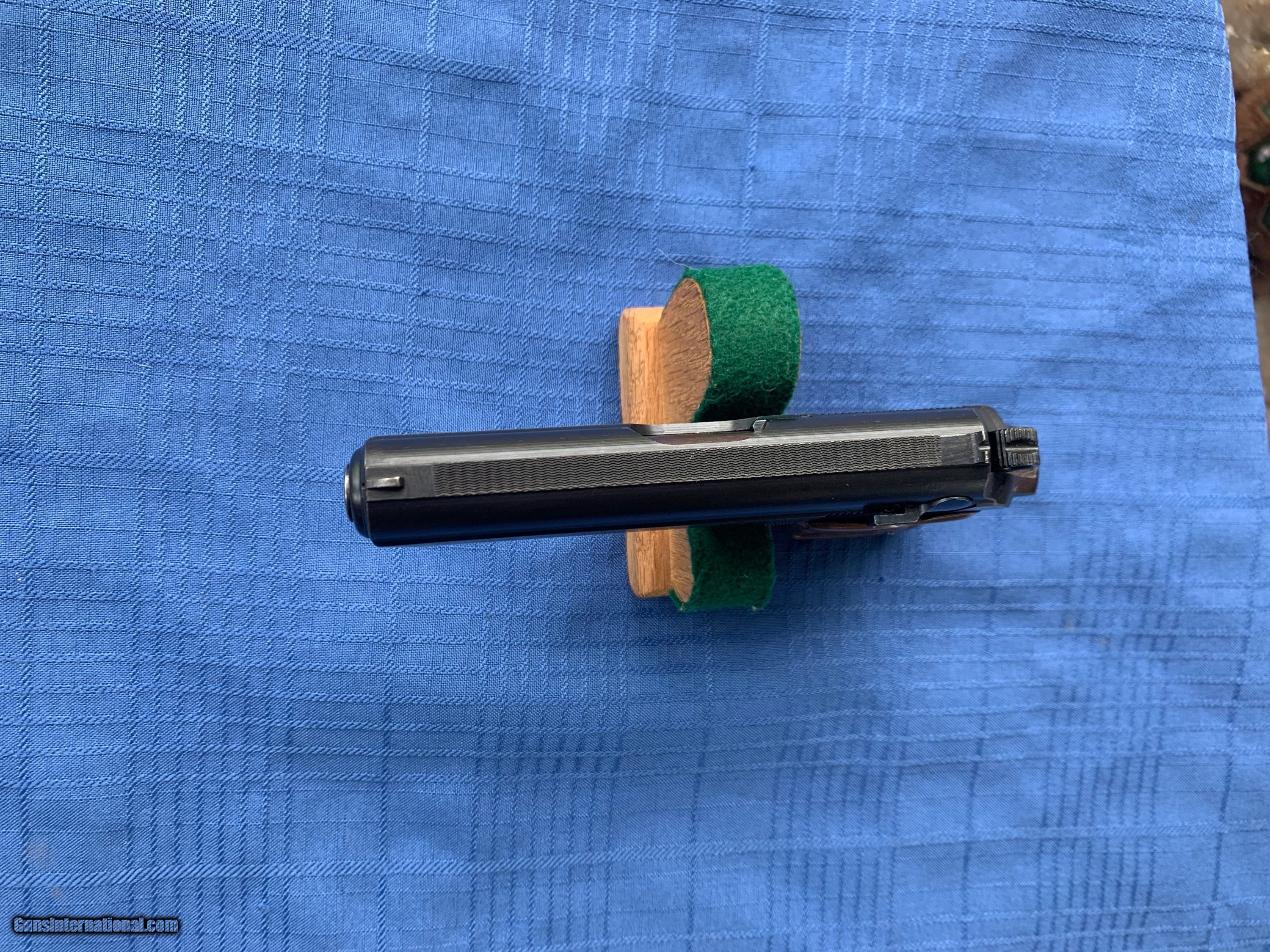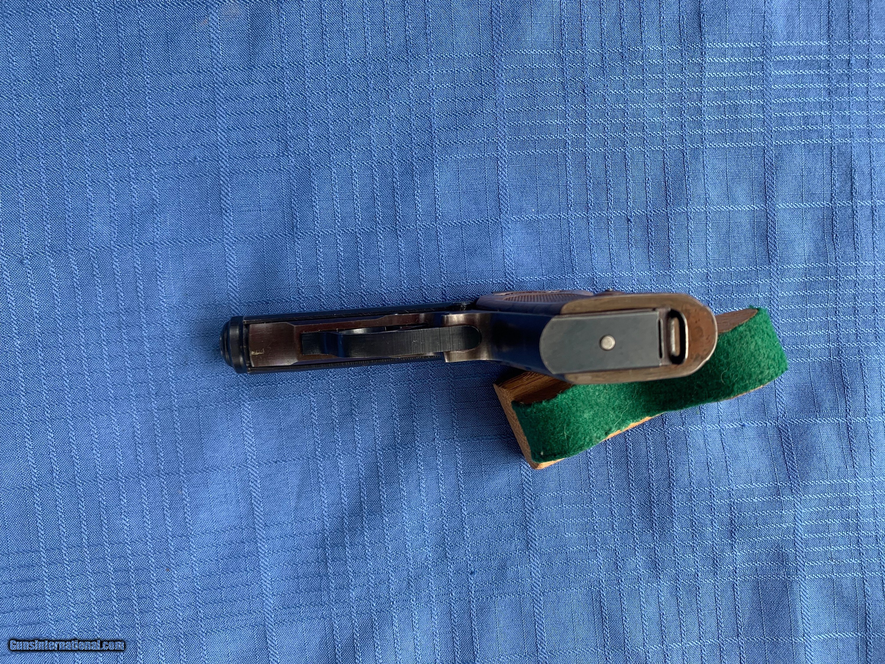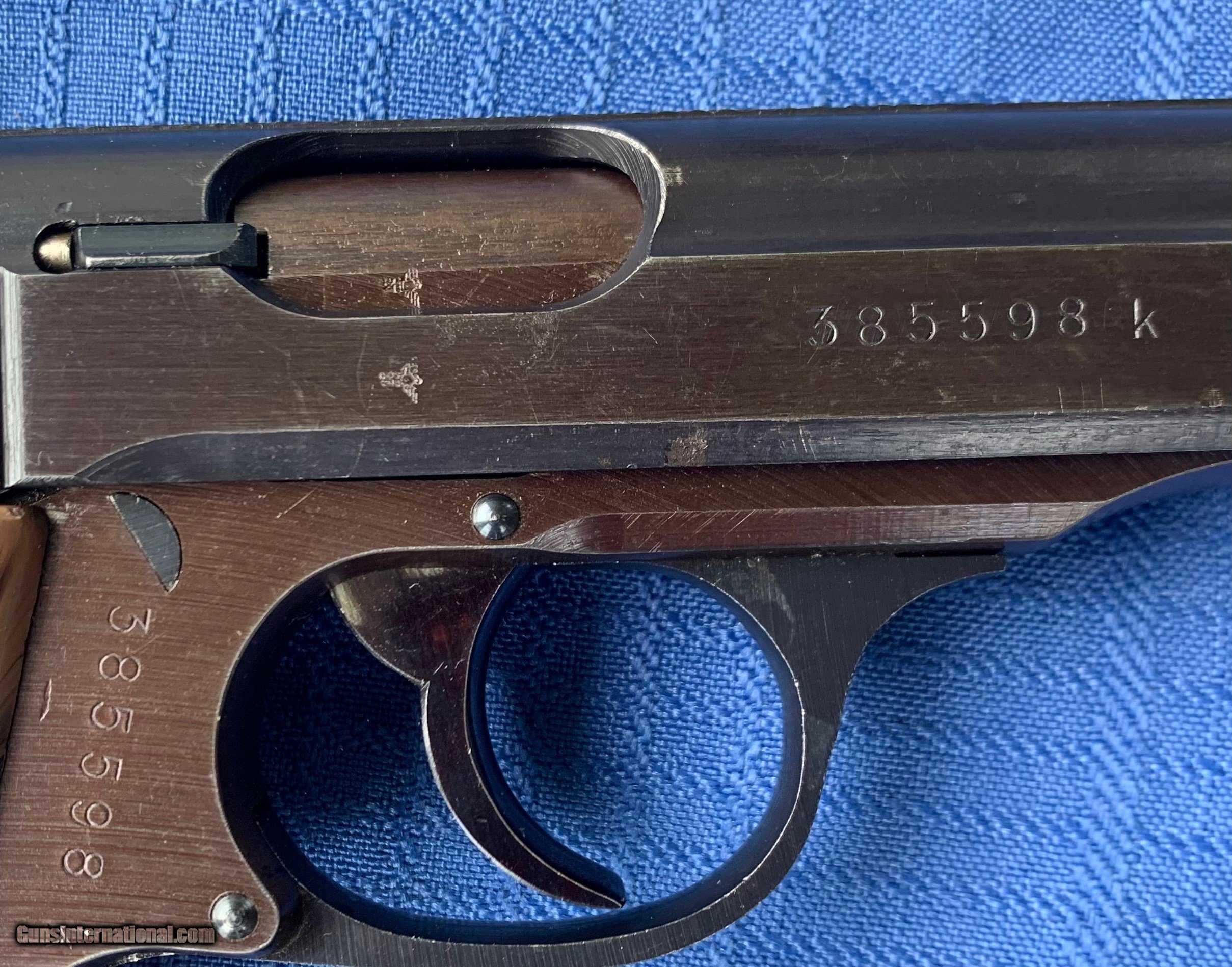 Description: Here's a near mint condition Walter PPK! Early 1943 Nazi Police Issue! With super rare Grey Grips! Serial number 385598. Frame is stamped with Eagle / C . Barrel and slide stamped Eagle N . All numberes matching . 32 caliber. Gun has all of its original wartime finish still remaining with very lite wear on muzzle area. Original Grey grips have a few chips out of them . Bore and mechanics are in excellent condition ! Gun locks up tight . Excellent working condition! Overall a near mint super rare PPK ! Please review my photos and please email me with any questions ? 3 day inspection as allways! Thank you for looking , Little Jo SOLD Curio/Relic: Yes Handgun Caliber: .32 ACP (7.65x17mm Browning SR) Manufacturer: Walter Model: PPK Serial Number: 3855980 Condition: Near mint Bore Condition: Excellent |