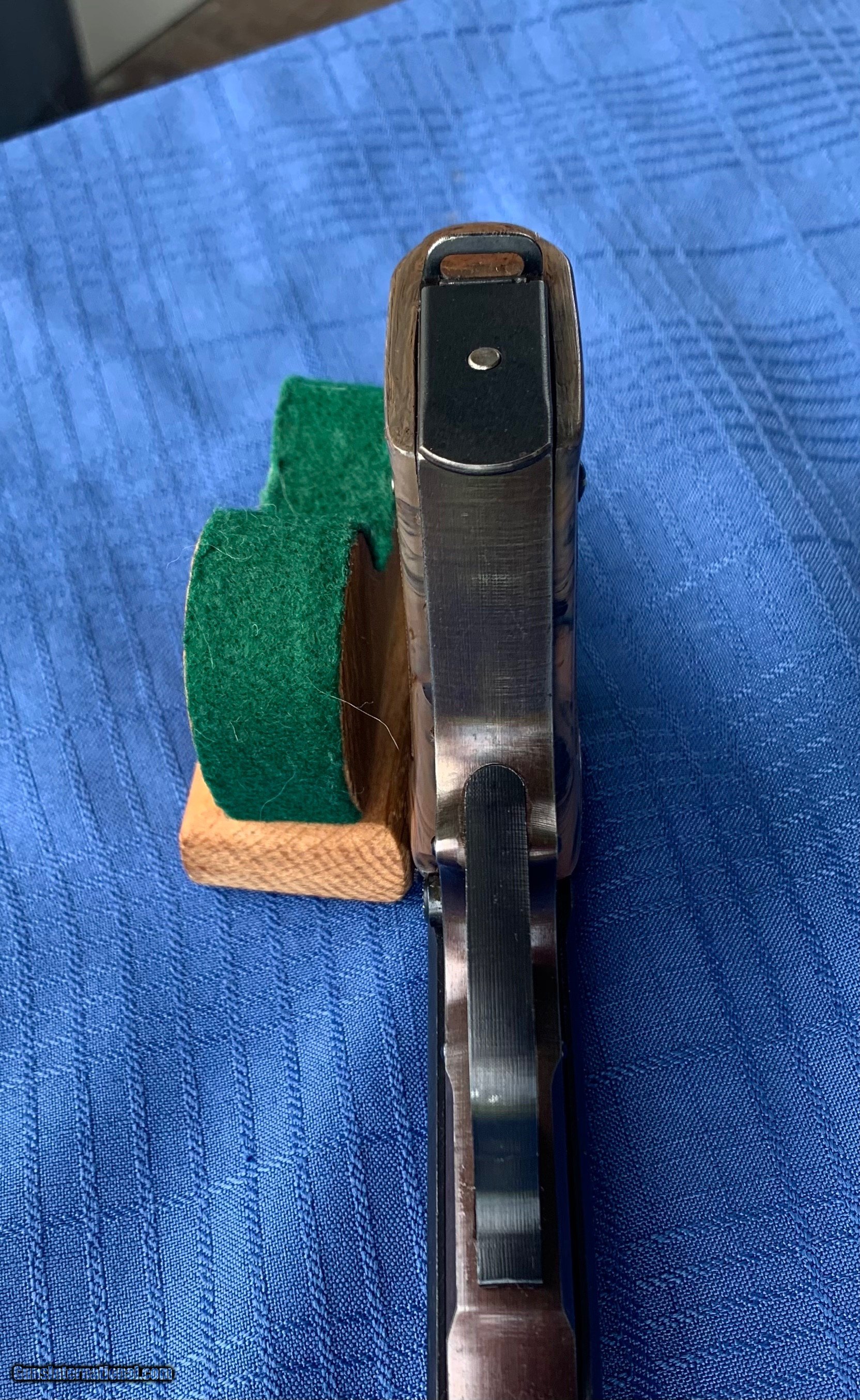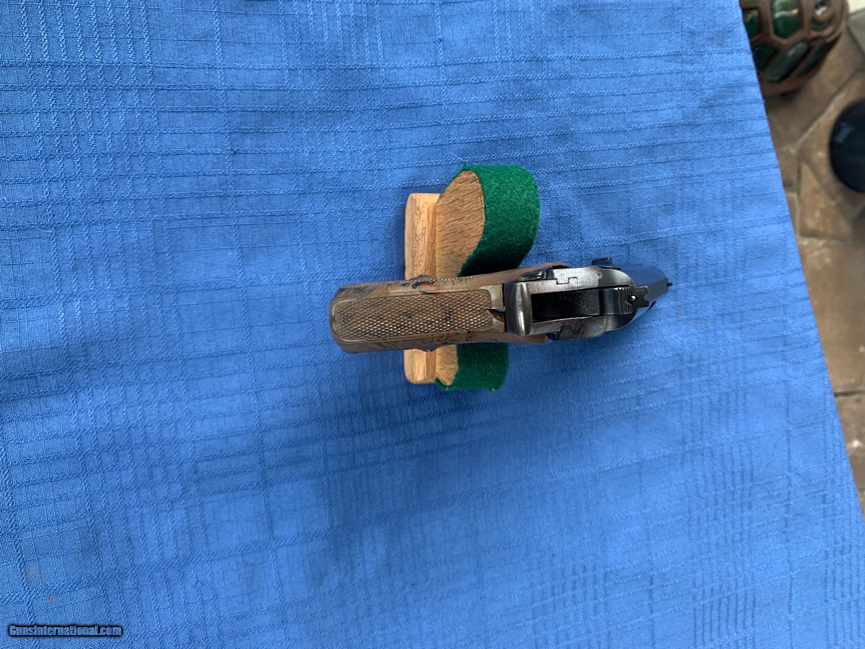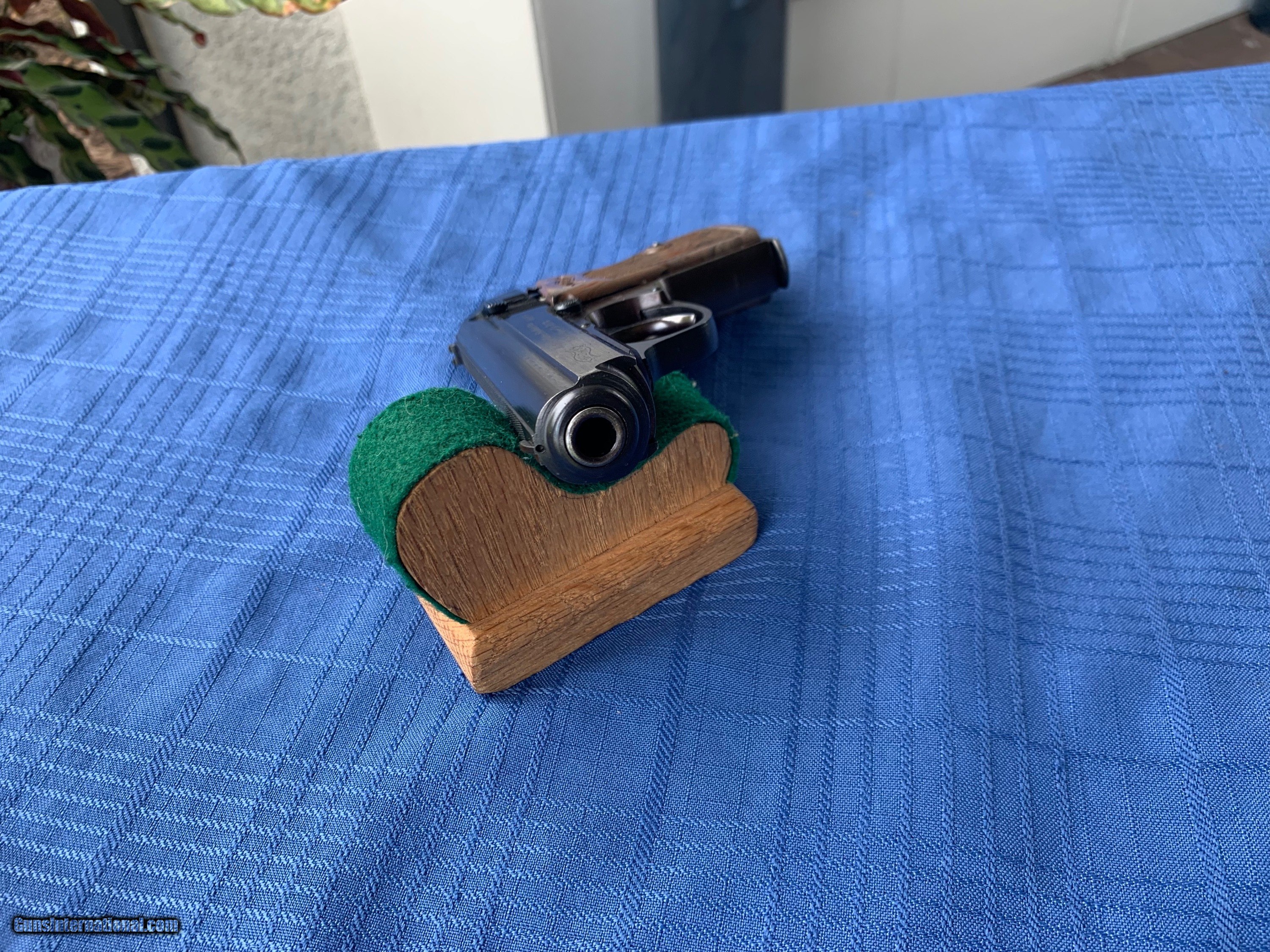 Description: Here's a near mint condition Walter PPK! Early 1943 Nazi Police Issue! With super rare Grey Grips! Serial number 385598. Frame is stamped with Eagle / C . Barrel and slide stamped Eagle N . All numberes matching . 32 caliber. Gun has all of its original wartime finish still remaining with very lite wear on muzzle area. Original Grey grips have a few chips out of them . Bore and mechanics are in excellent condition ! Gun locks up tight . Excellent working condition! Overall a near mint super rare PPK ! Please review my photos and please email me with any questions ? 3 day inspection as allways! Thank you for looking , Little Jo SOLD Curio/Relic: Yes Handgun Caliber: .32 ACP (7.65x17mm Browning SR) Manufacturer: Walter Model: PPK Serial Number: 3855980 Condition: Near mint Bore Condition: Excellent |