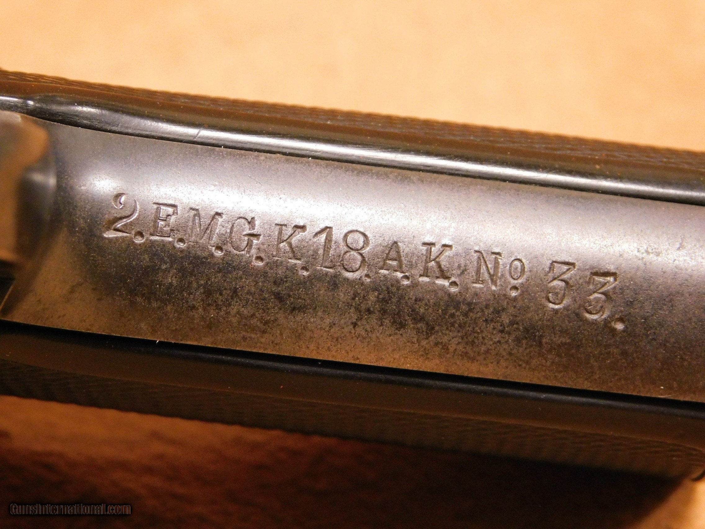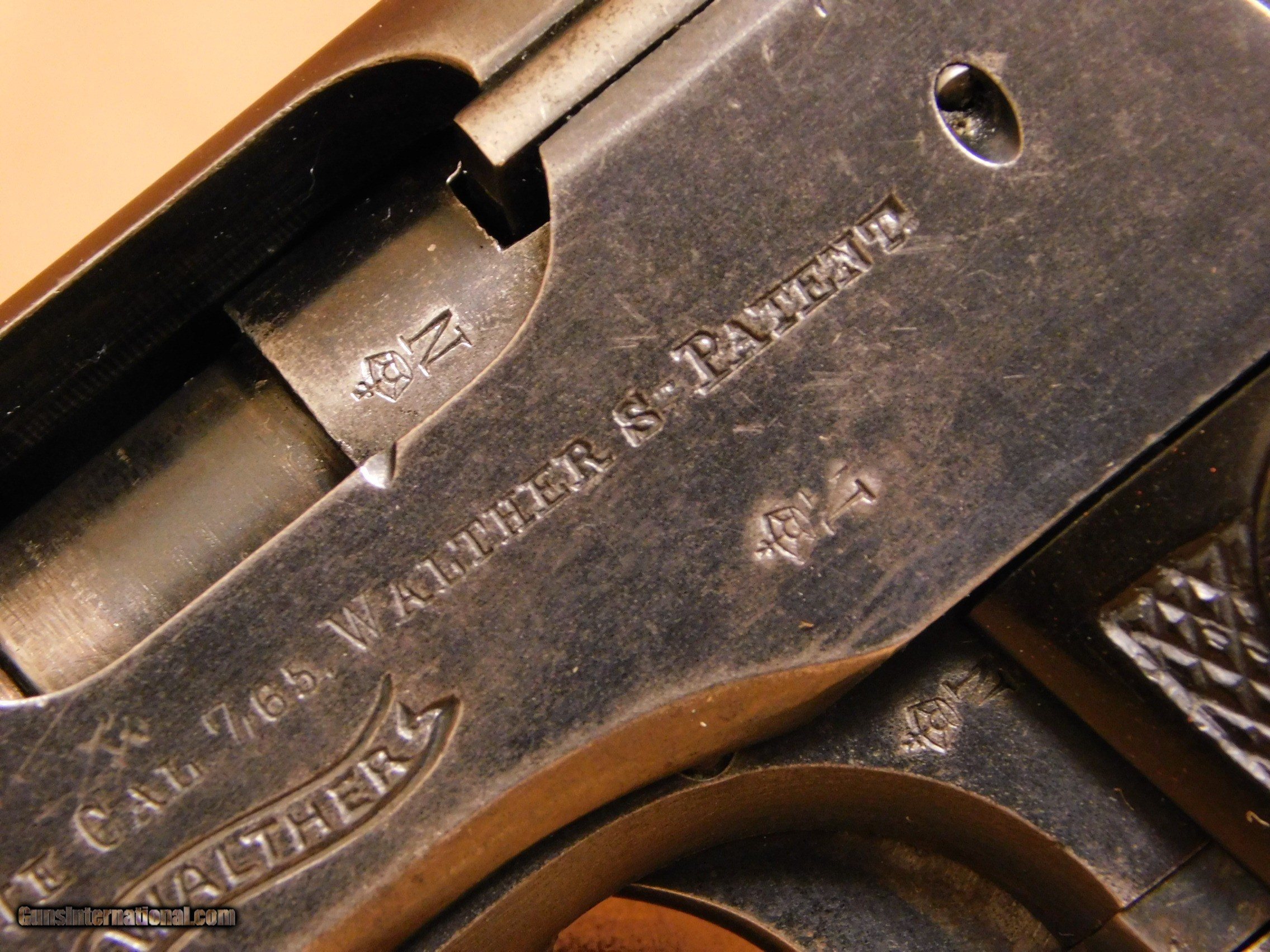 Description: This is a scarce Walter Model 4 with a holster. It is unit marked "2nd Ersatz Machine Gun Company, 18th Army korp Gun No. 33". The holster is also unit marked and overstamped. There is a small thread repair on rear flap. The barrel retaining ring has wear and is easily removed from the pistol. The barrel itself has a light pitting ring. All items are also available for sale in our brick & mortar store and are subject to prior sale. Think long, think wrong. Payment On firearms, we typically only accept credit cards or money orders/cashier's checks.