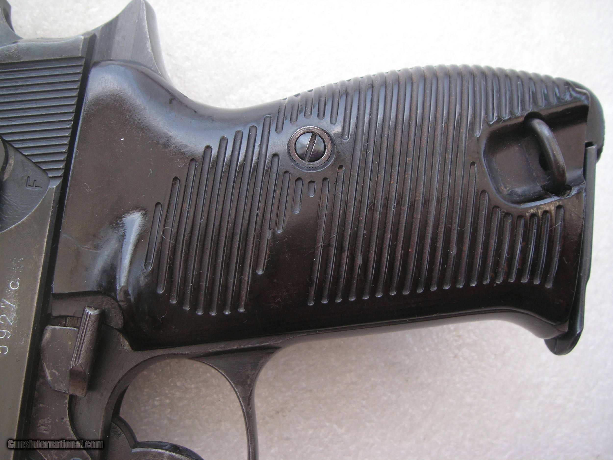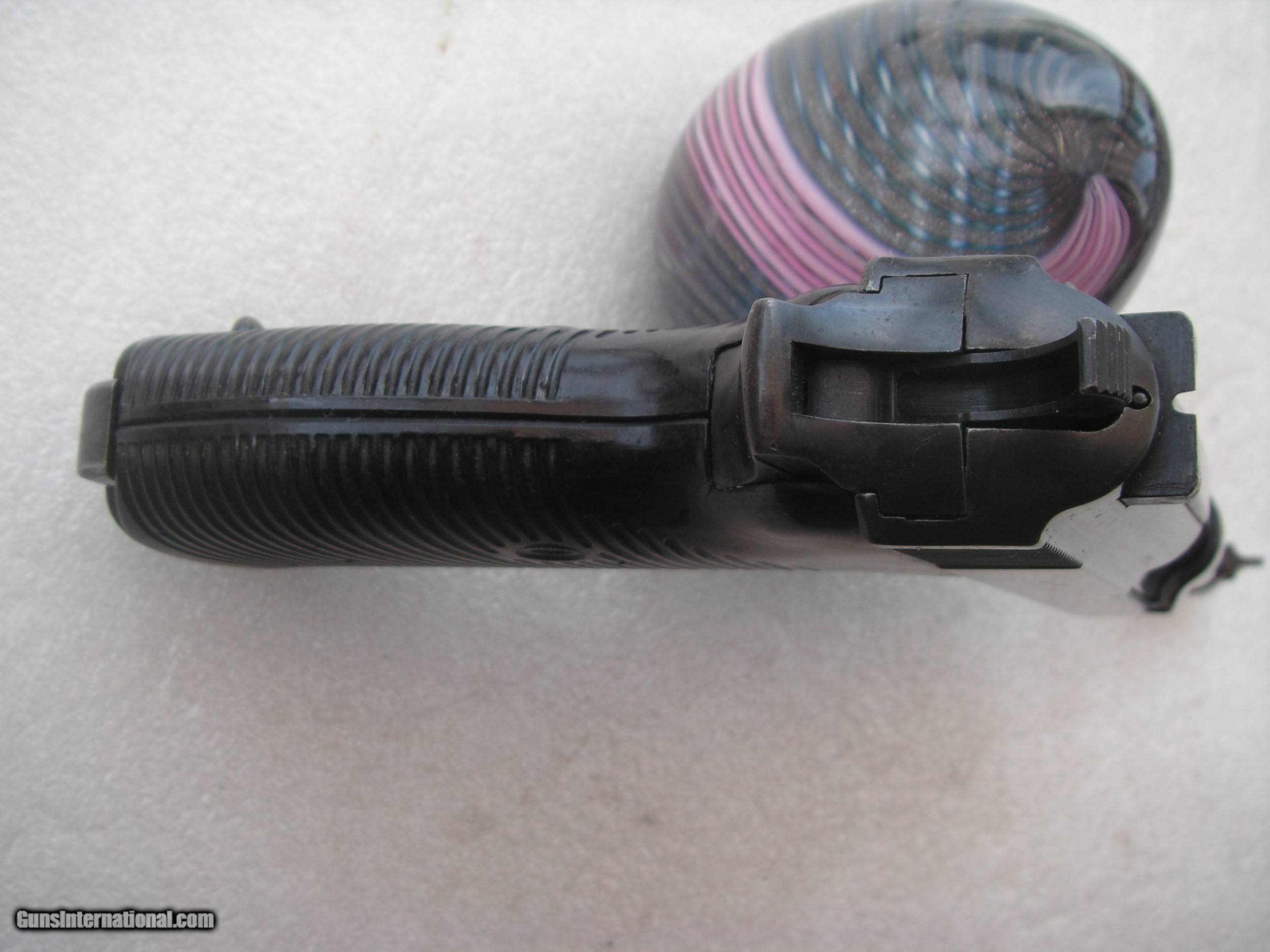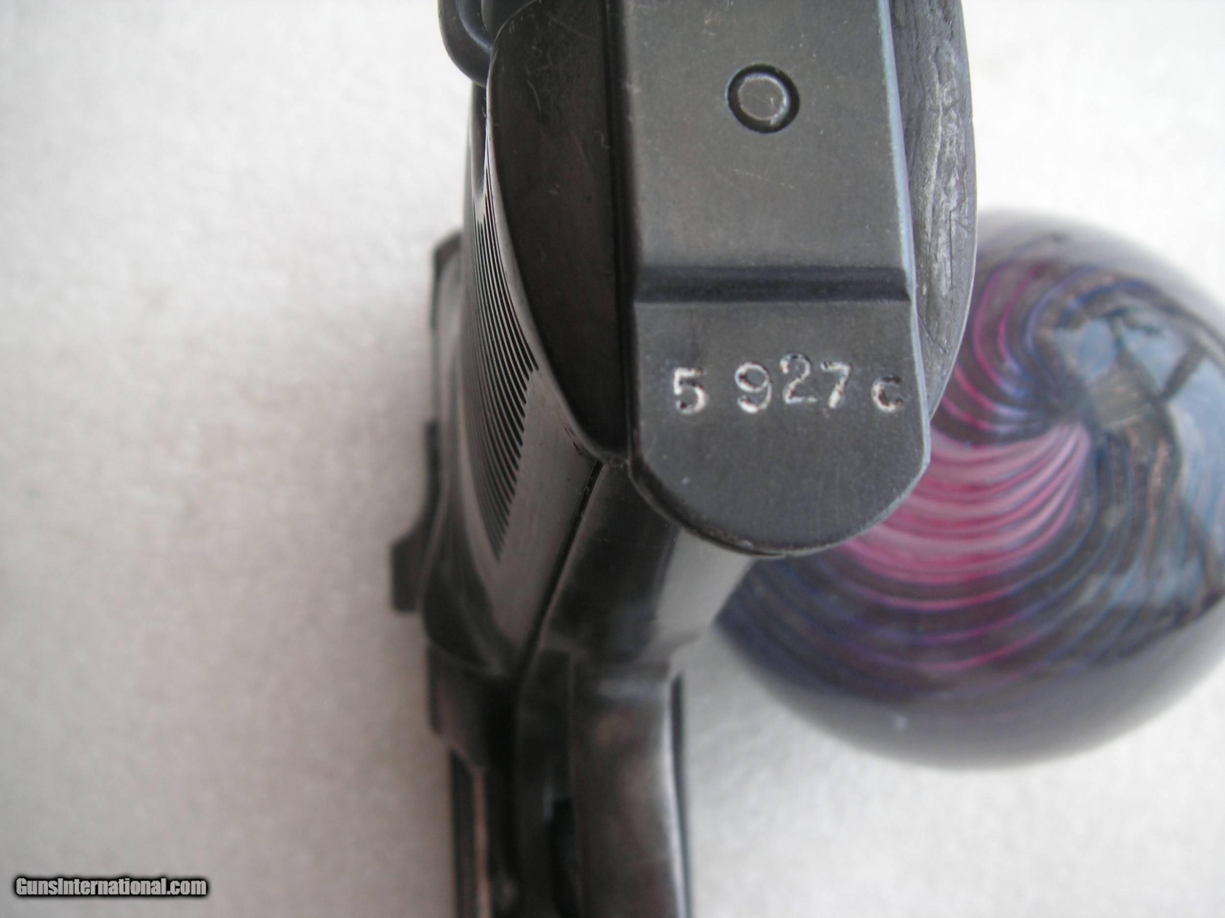 Description: SEE THE PICTURES OF THIS BEAUTIFUL WW2 WALTHER MODEL P.38 PISTOL IN GRATE 98% ORIGINAL HIGH POLISH FINISH, BRIGHT AND SHINY BORE BARREL AND ALL MATCHIG PARTS, INCLUDING ONE MATCHING SERIAL NUMBERED MAGAZINE. THIS IS HIGHLY COLLECTIBLE WW2 CALIBER 9mm WALTHER PISTOL, AND IT COULD BE EXCELLENT FOR HOME OR PERSONAL PROTECTION. We offer three days inspection. Only not fired changed parts or condition guns would be accepted. Return shipping cost is the buyer expense. We accept bank & postal money orders or personal & business checks, but those take time to clear. We also offer 90 days layaway with 25% down & three more payments of 25% per month. The layaway plan does not have 3 days inspection privileges; therefore there is a “NO RETURNS” policy. If you have offered to buy my guns, and the payment has not made soon after (from 3 to 5 days), I will not guarantee you will be the buyer of it. I can secure your purchase only when you have paid for it. If your payment comes too late, I will return it back to you. Please check our other nice listings. SAFETY NOTICE: Buyer solely responsible for following all safety requirements in handling guns. The buyer agrees to hold seller harmless against damages, injury or death caused by defective merchandise or ammo. NOTICE: DISCLAMER OF LIABILITY ADT Sporting Goods and Collectibles assumes no responsibility for product malfunction or for physical injury or property damage resulting in whole or in part from criminal or negligent use of the product, improper or careless handling, unauthorized modification, use of defective, improper, hand-loaded or reloaded ammunition, customer abuse or neglect of the product, or other influences beyond ADT Sporting Goods and Collectibles direct and immediate control. Before using any firearms, always have it checked over by a licensed gunsmith. If you like, we can negotiate terms of shipping. The offered shipping price includes insurance cost & priority mail cost only. SOLD Curio/Relic: Yes Handgun Caliber: 9x19mm Parabellum (9mm Luger, 9x19mm NATO) Manufacturer: WALTHER Model: P.38 Serial Number: 5927c Barrel Length: 5 IN Bore: SHINY & BRIGHT Condition: EXCELLENT ORIGINAL Metal Condition: 98%+ Bore Condition: SHINY AND BRIGHT |