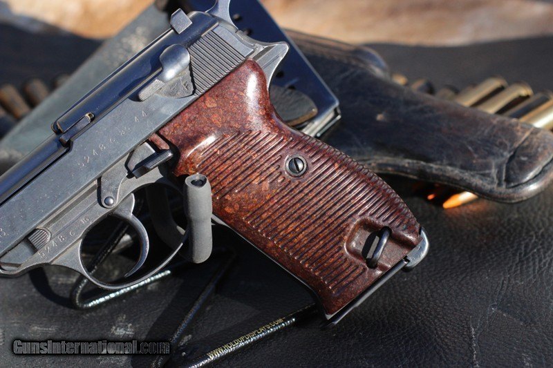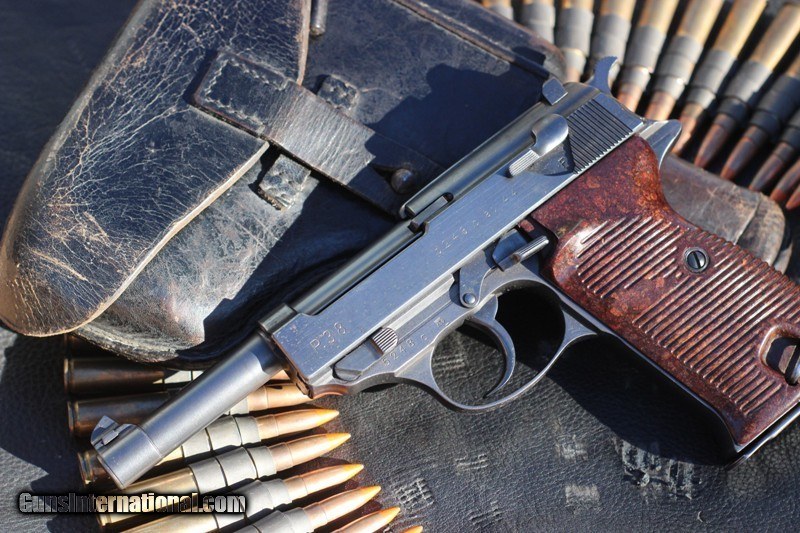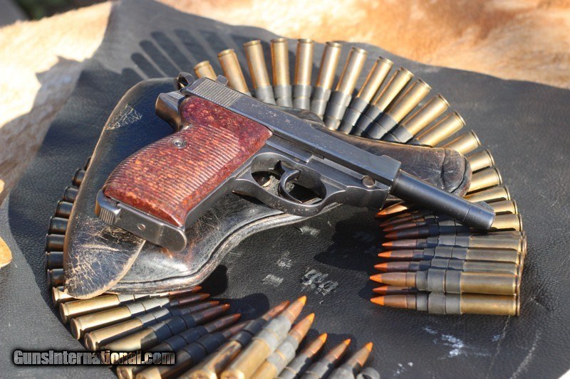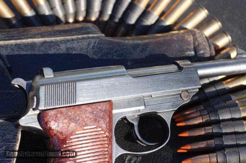 Description: All matching numbers Waffenamt 359 98 % factory blue Very good bore Excellent grips 2 magazines (P-38 marked at base) Comes with original clam shell style unmarked holster with 2nd magazine All original , collectoe quality $1295 all personal checks take 3-5 days to clear SOLD |