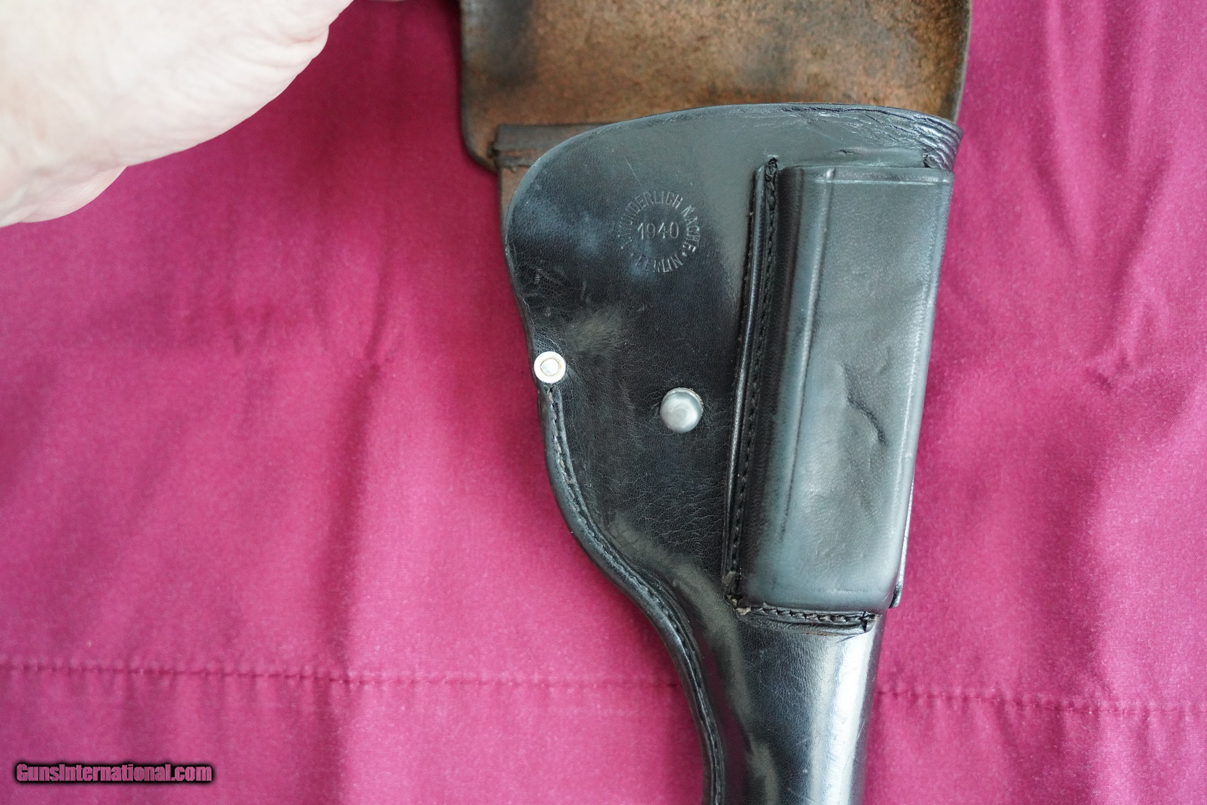 Description: WW2 WALTHER PP MARKED RFV WITH 2 MAGAZINES AND THE CORRECT HOLSTER ALL IN A NICKLE FINISH. HOLSTER MARKED , A. WUNDERLICH NACHE BERLIN 1940 . SOME LOOSE THREADS ON BACK FLAP. BEST REASONABLE OFFERS ACCEPTED . SHIPPING 75.00 SOLD |