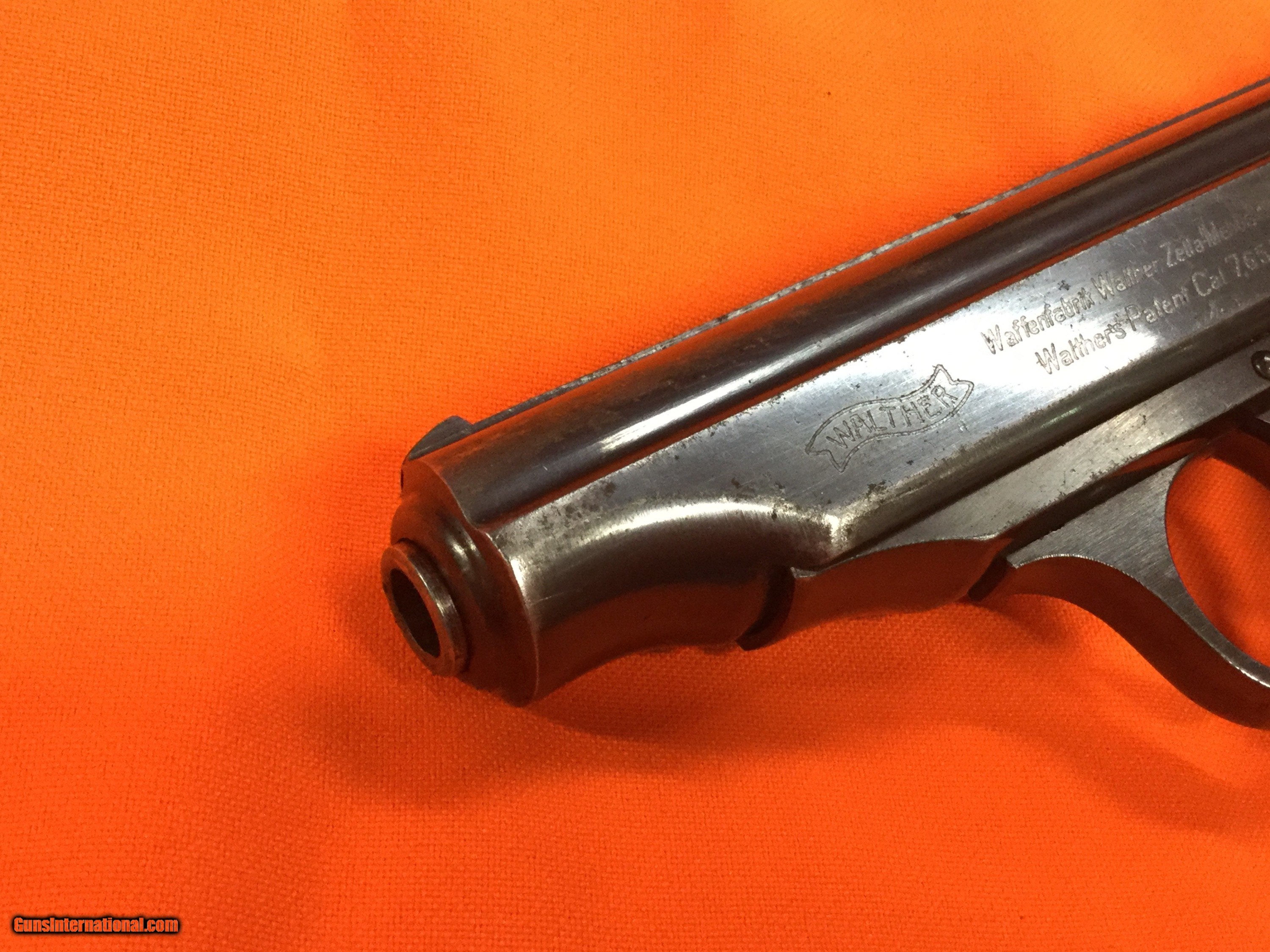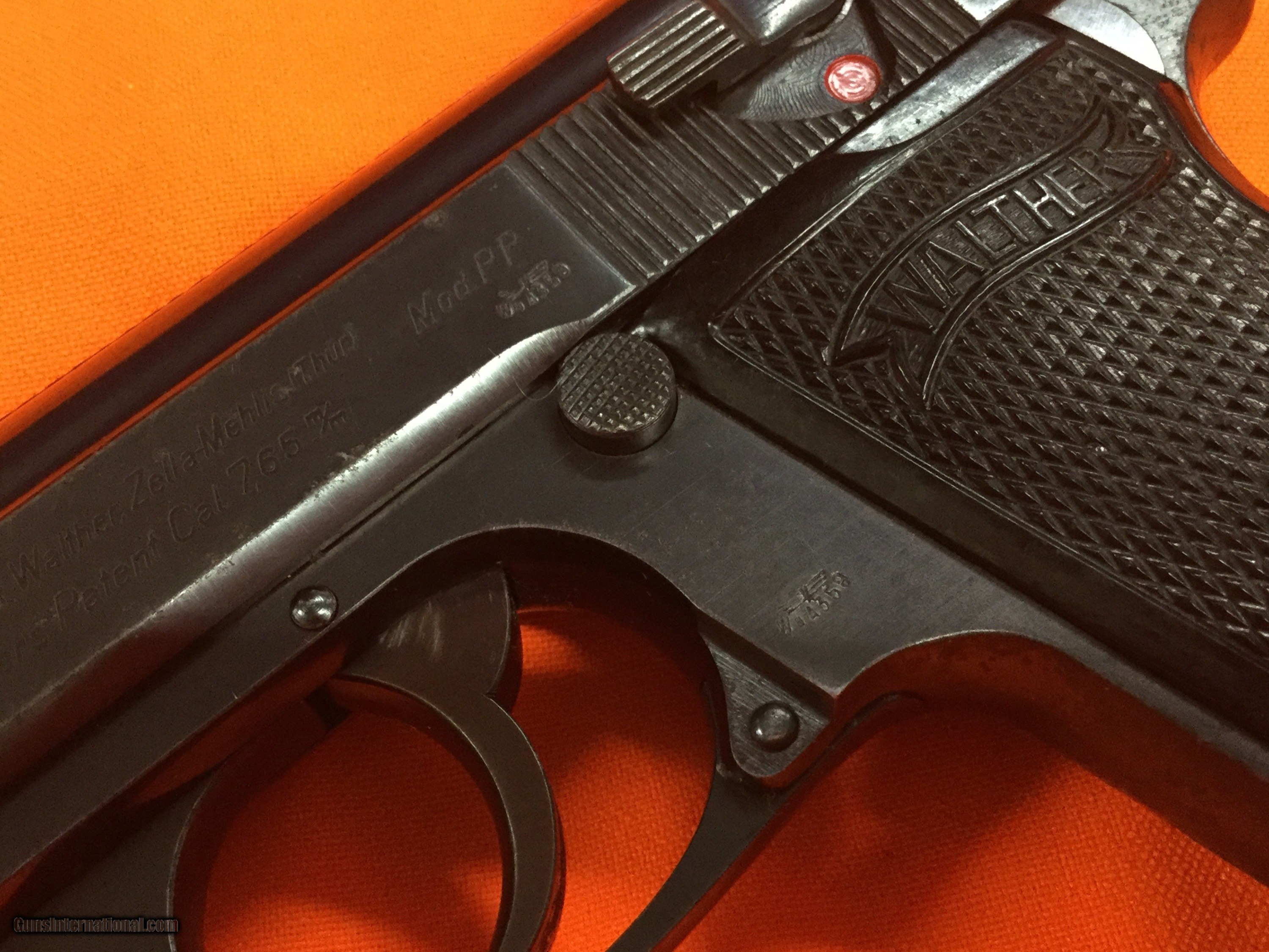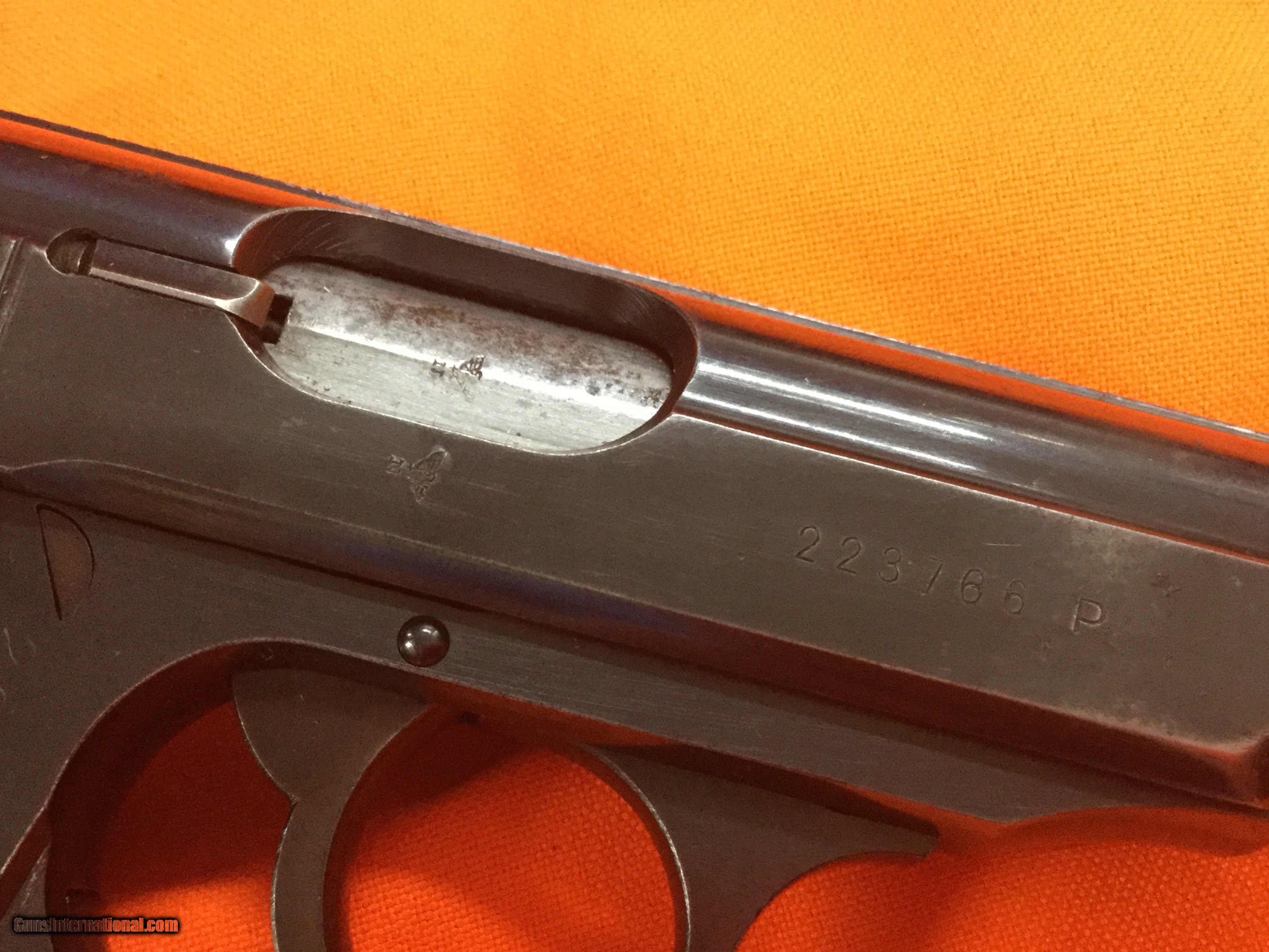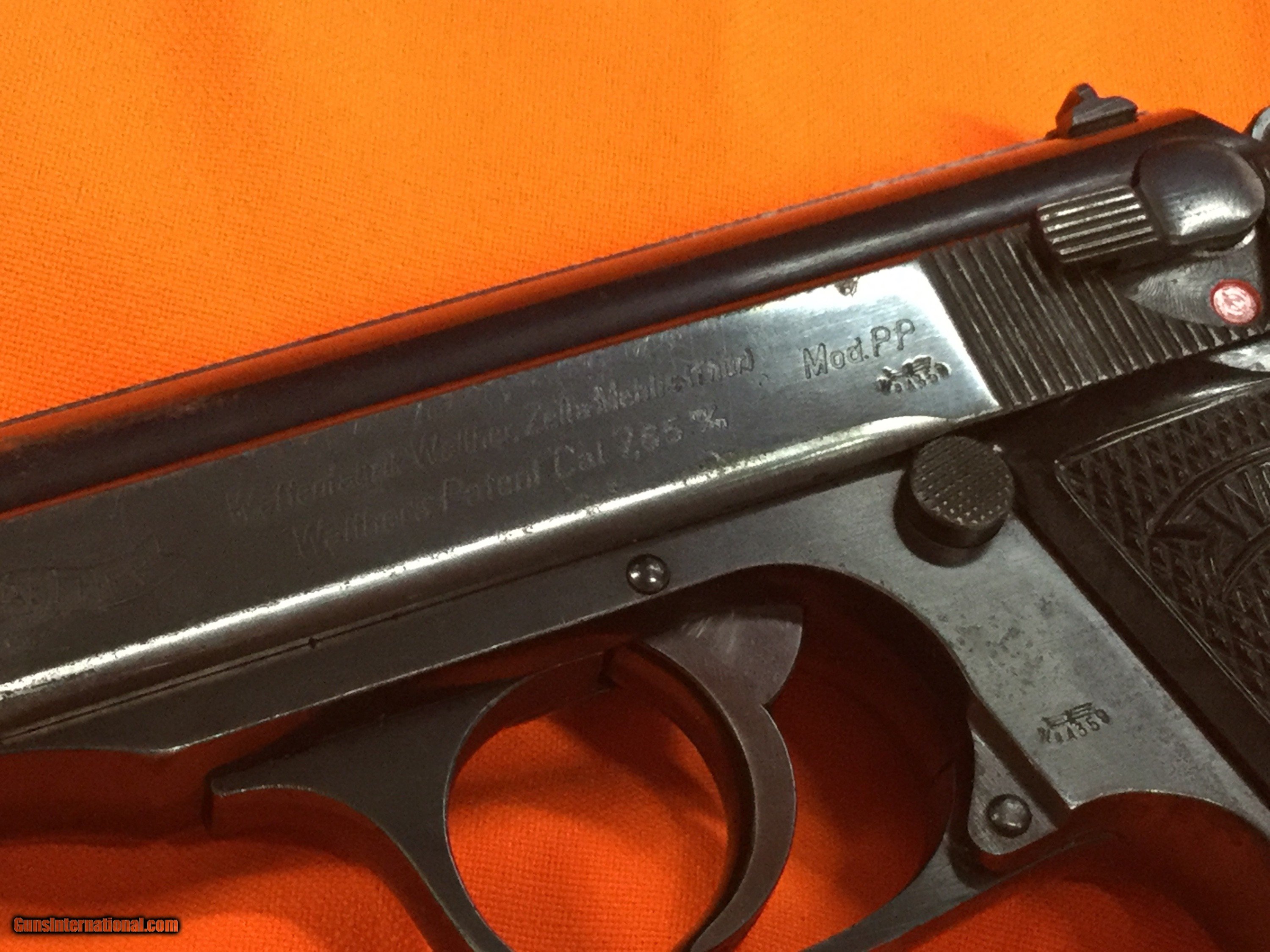 Description: On consignment we have a Walther PP WW-II Luftwaffe Contract pistol that has military WaA359 proofs markings on slide and frame, with serial number on slide, frame and 2 serial numbered matching magazines. Also has a period correct holster. $3500.00 Card payments add 3%, to avoid additional fee we accept personal checks, postal money orders and cashiers checks, please allow 10 business days to clear from date of receipt. Price includes shipping and insurance SOLD |