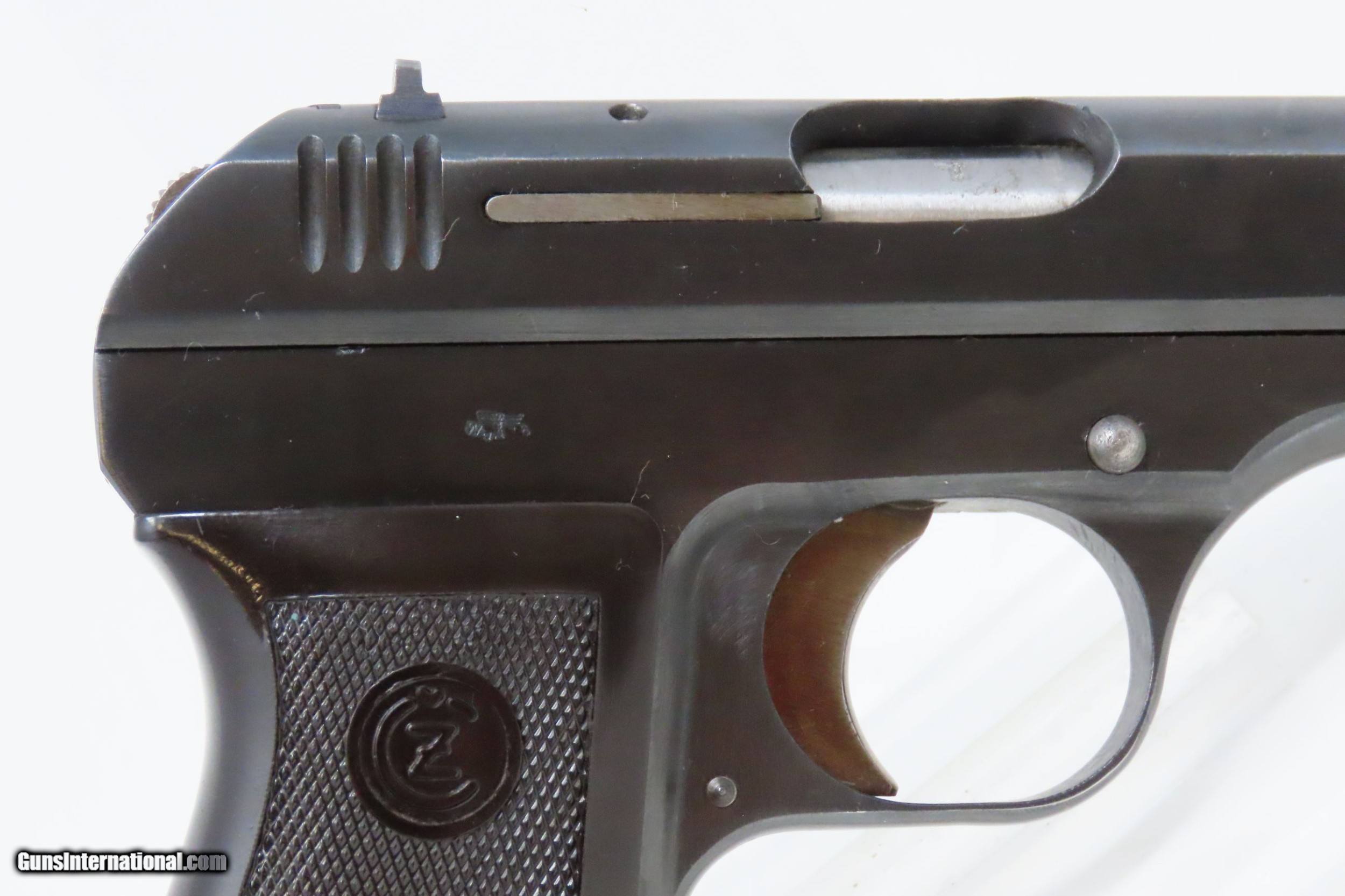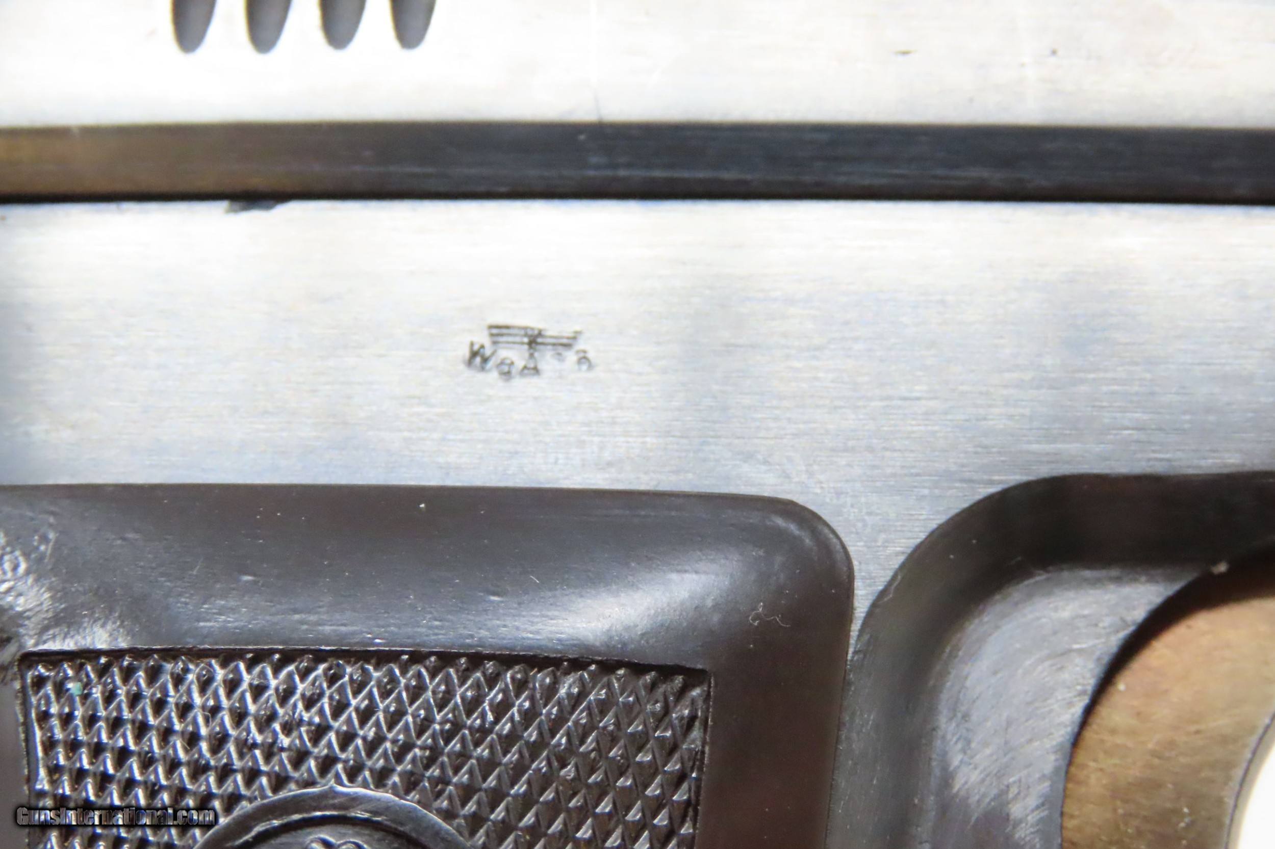 Description: WORLD WAR II NAZI German OCCUPIED CZECH Semi-Auto CZ Model 27 Pistol C&R Blue Finished, Nazi Occupied Czechoslovakia Here we present a C&R German/Czech CZ 27 Pistol, made circa 1942 in Occupied Czechoslovakia. The Model 27 was adopted by the Third Reich upon their seizure of ?eská zbrojovka after their invasion and occupation in 1939. Many of these semi-automatic, .32 ACP/7.65mm blowback pistols were manufactured until the end of the war, becoming somewhat less finished toward the end in an attempt to save on cost, time and resources. The machining marks grew more visible and the blue applied to the earlier guns was changed to a phosphate finish. Many of these were put in the hands of officers and police during World War II. This specimen is marked “Pistole Modell 27/Kal.7,65” on the left side of the slide and the “WaA76” Nazi German acceptance mark. The overall condition is fine. Nice blued finish. The action is excellent. The bore is in fine shape. A very nice specimen for the WWII or CZ collector! This firearm is classified as a Curio & Relic. Barrel is 3-7/8 inches. Caliber: .32 ACP (7.65mm Browning) Overall condition as seen in photos. Very Fast. Very Safe. FREE SHIPPING. Will need to be sent to your local FFL or C&R licensee. This firearm is classified as a Curio & Relic. Guaranteed AUTHENTIC & Includes CERTIFICATE OF AUTHENTICITY. ancestryguns $1545 #217554 SOLD Curio/Relic: Yes |