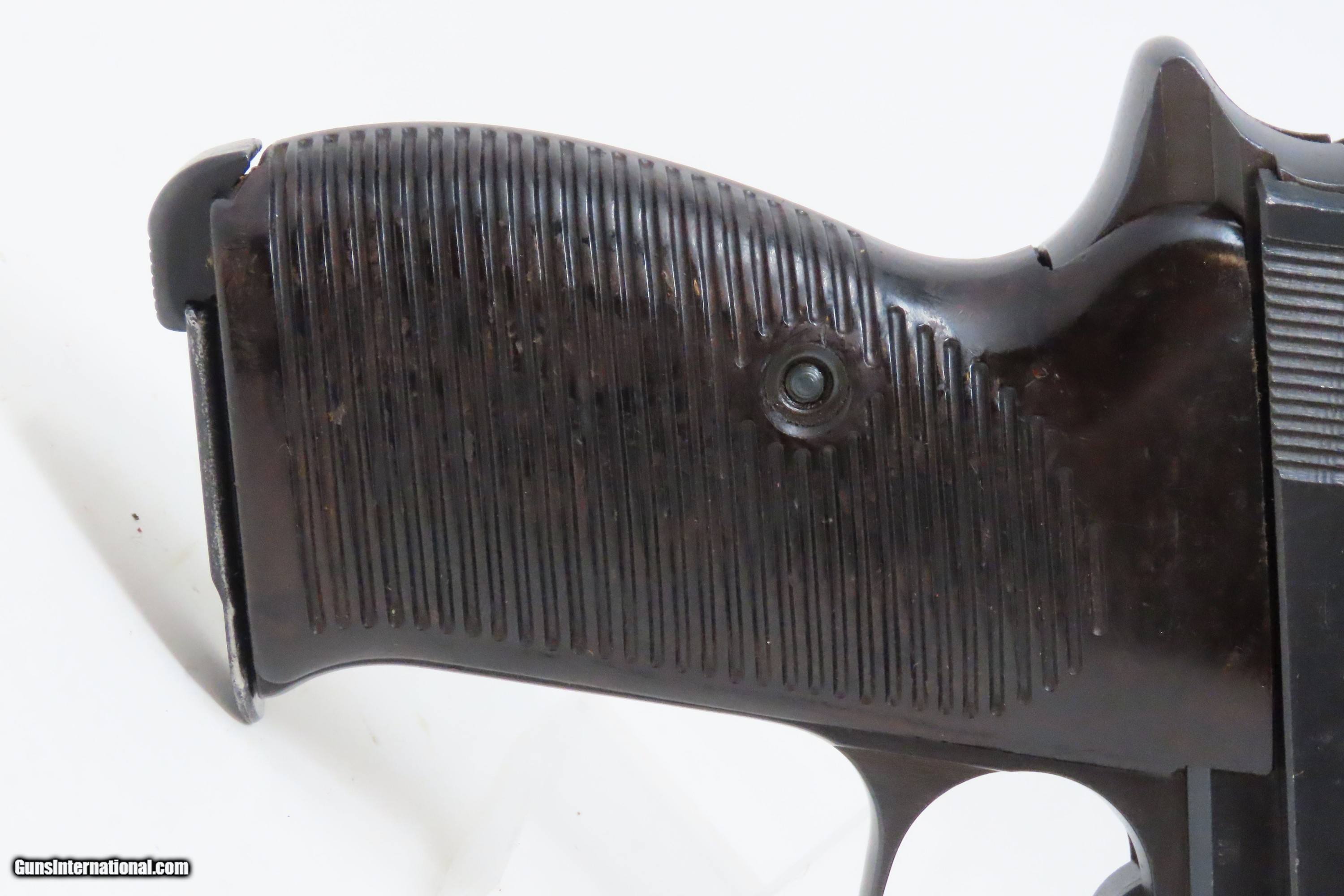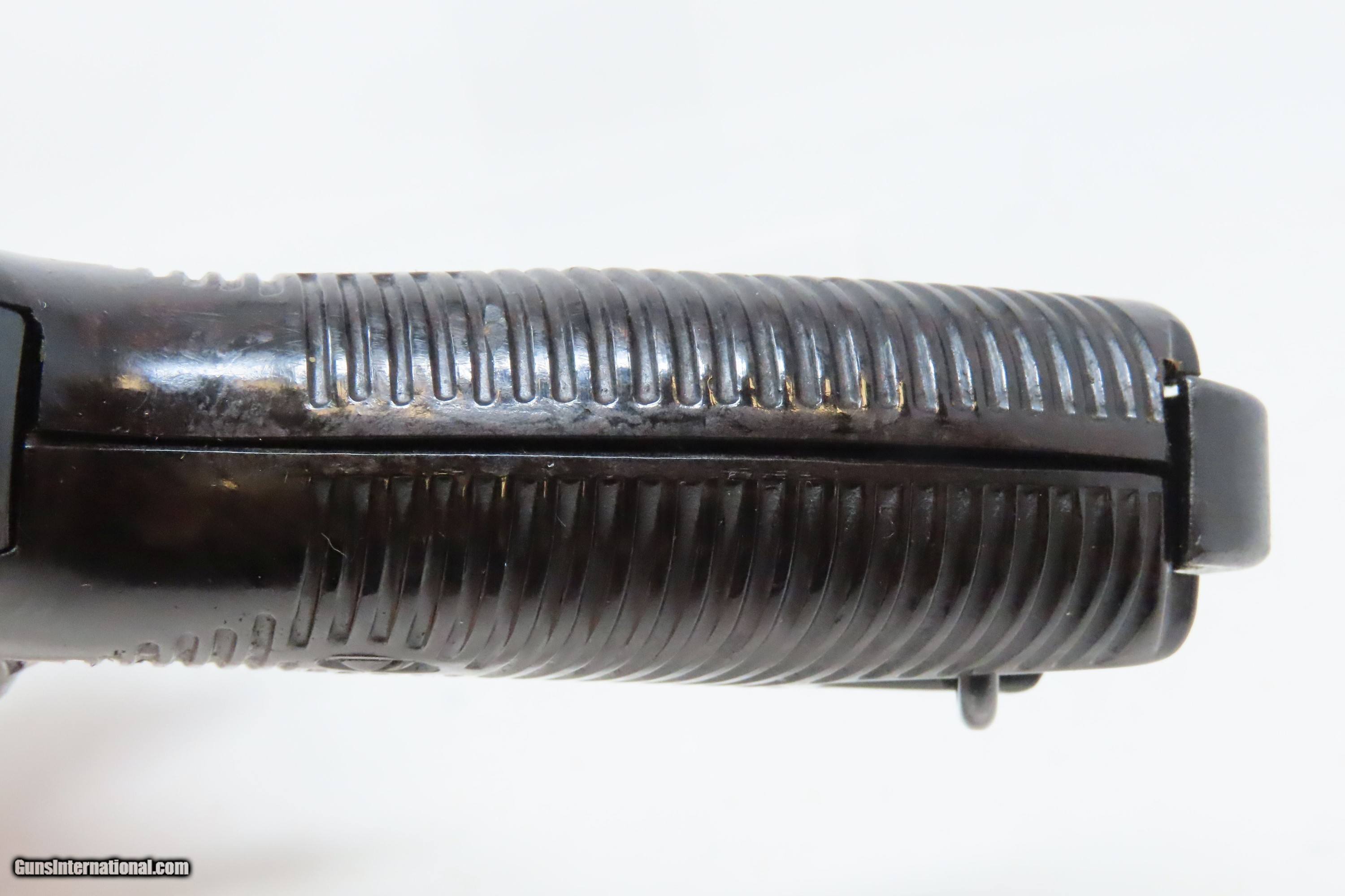 Description: WW II THIRD REICH German SPREEWERKE “cyq” Code P.38 Pistol C&R World War 2 9mm Sidearm w/HOLSTER & EXTRA MAGAZINE Here we present a C&R German Third Reich Spreewerke “cyq” code P.38 Pistol, made circa the early to middle of World War II in Spreewerke, Czechoslovakia. It is estimated that some 284,500 P.38s were manufactured at Spreewerke with the serial numbers running from 501 to 10,000z. The P.38 was designed by Walther to replace the Luger P.08 as the standard service weapon for the Third Reich’s Wehrmacht. The Luger was a ground-breaking design, but quite expensive to produce. The P.38 was the first locking breech pistol to feature the double/single action firing mechanism with a decocking safety lever, a prelude to many modern pistols to come. It also features a loaded chamber indicator that is both visible and tactile, extending out of the top rear of the slide, just above the hammer. The falling block locking mechanism was also carried into future pistol designs. Many of these design features are found in the Beretta 92 or U.S. M9 pistols. The Wehrmacht, which was the unified armed forces of Germany from 1935 to 1945, was the primary buyer of these pistols, but the German police also used about 6,800 P.38s. The left side of the slide is marked “P.38” and “cyq”, the code for Spreewerke. The gun bears the acceptance marks “Eagle/88”, “Eagle/358” and “Eagle/Swastika”. The overall condition is very good. Armory refinished and force matched. Import marked. The action is excellent. The bore is bright with sharp rifling. The grips are solid. The holster is dated 1941 and the interior has a German name written inside the flap with another crossed out. The holster also has a strap sewn on to make it amendable to carrying on the shoulder—appears original to the period. This firearm is classified as a Curio & Relic. Barrel is 5 inches. Caliber: 9x19mm Luger (Parabellum) Overall condition as seen in photos. Very Fast. Very Safe. FREE SHIPPING. Will need to be sent to your local FFL or C&R licensee. This firearm is classified as a Curio & Relic. Guaranteed AUTHENTIC & Includes CERTIFICATE OF AUTHENTICITY. ancestryguns $1700 #230201 SOLD Curio/Relic: Yes |
