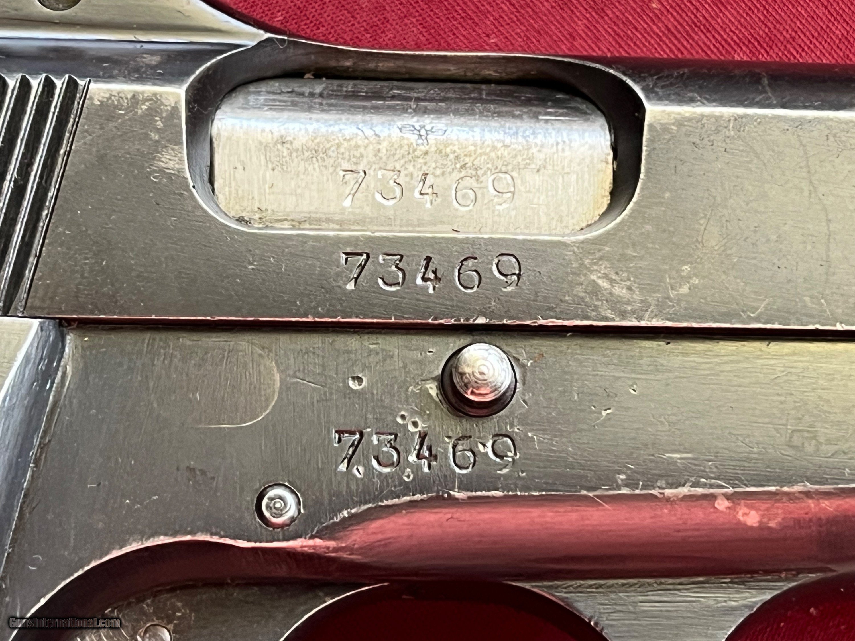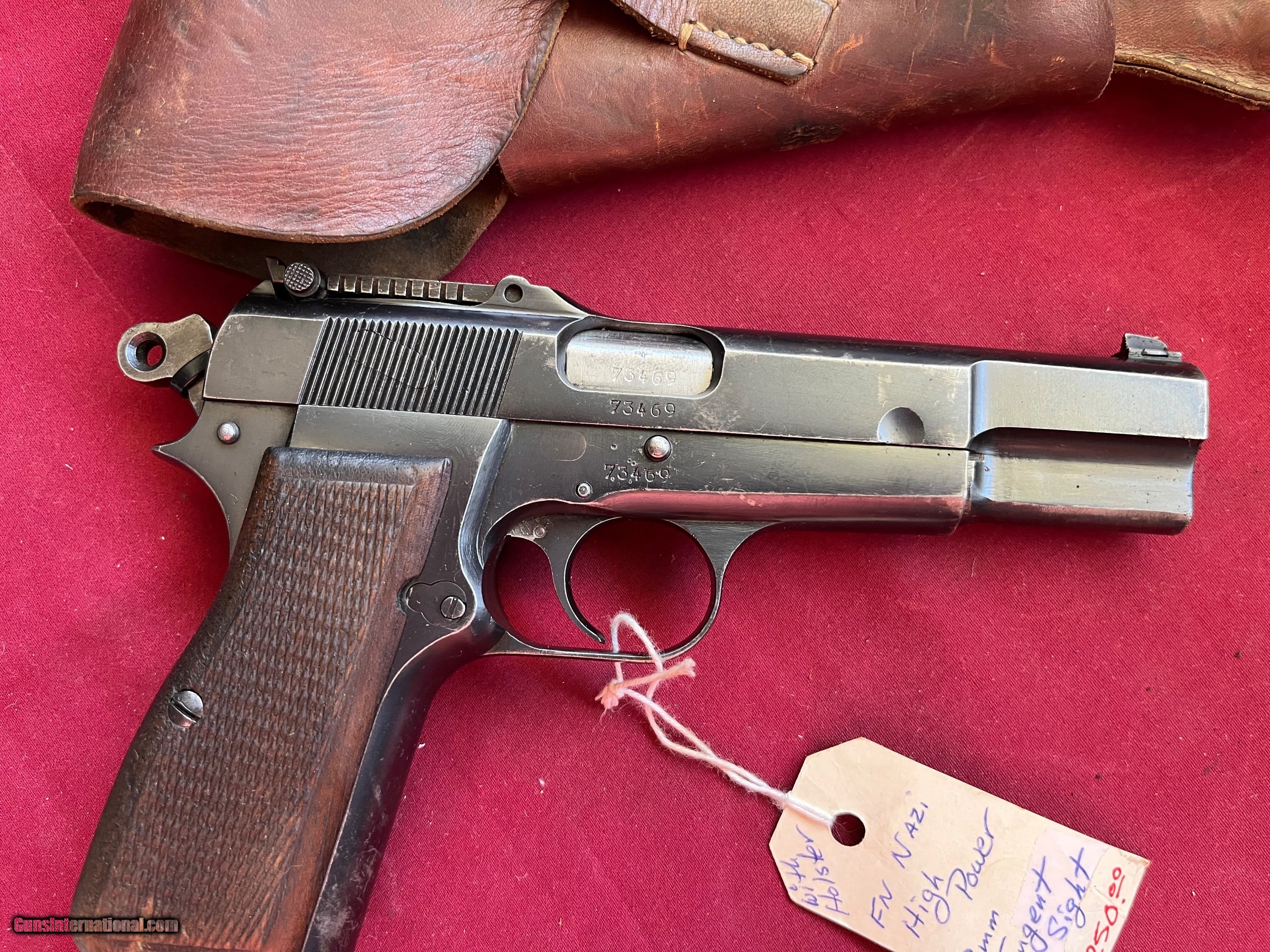Description: WWII GERMAN NAZI WWII PISTOL. BELGIUM MADE BROWNING HI POWER SEMI AUTO PISTOL, EARLIER GUN SER# 73469 WITH MATCHING NUMBERS, CALIBER 9MM. BRIGHT BORE. TIGHT ACTION THAT FUNCTIONS FINE. ORIGINAL BLUE FINISH . WAFFANTE WaA 103. VERY NICE SOLID GRIPS WITH NO CRACKS. COMES WITH A TWO MAGAZINES AND A HOLSTER WITH . HOLSTER IS IN VERY NICE CONDITION WITH bdt 43 WITH WAFFANTE WaA927 STAMPED ON IT . A NICE WWII RIG. EASTERN BRANCH FIREARMS ADD 40.00 SHIPPING – NEXT DAY AIR SHIPPING ADD 50.00 SHIPPING – LONG GUNS GROUND OPTIONAL INSURANCE IS AVAILABLE AT 1.25 PER 100.00 Questions e-mail or call Glen at Eastern Branch Firearms 207-215-5021 TERMS – PLEASE READ BEFORE I DO NOT HAVE A LAYAWAY OPTION ( WE ACCEPT CREDIT CARDS ) -- I GET ALOT OF REQUEST FOR TRADES, I WOULD PERFER NOT TO DO TRADES ON MY INTERNET LISTINGS PAYMENT OPTIONS- We accept money orders, cashier’s checks , bank checks. sorry no personal checks. We accept all major credit cards please add 3% to the ’s cash discount price.(Shipping within the state of Florida - Florida Residents must pay sales tax) .Handguns and long guns do need to be shipped separate. PLEASE do not send payment via FED EX . USPS & UPS are fine. Thank you. We include a signed copy of our FFL with each firearm shipped. SAFTY NOTICE- Buyer is solely responsible for determining that a used gun is safe to shoot. The firearms offered have not been test fired but have been given a visual inspection only for purposes. It is a requirement that every used firearm is inspected by a qualified gunsmith before firing. By , the buyer agrees to hold seller harmless against damages, injury, or death caused by defective merchandise. RETURN POLICY- All firearms come with a 3-day non firing , non messing with ( turning srews ,taking apart,removing parts, scoping. firing, cleaning or messing with in anyway) inspection/return privilege.Inspection is based on a visual review of the gun to confirm the gun is in the condition stated. In the case of a return, buyer pays all shipping charges & if paid for with a credit card buyer absorbs the 3% credit card charges . So please ask questions BEFORE you bid. Thanks for Looking and Good Luck!! U.S. sales only, no exports…this includes antiques. I will ship to third party for exporting SOLD Curio/Relic: Yes |