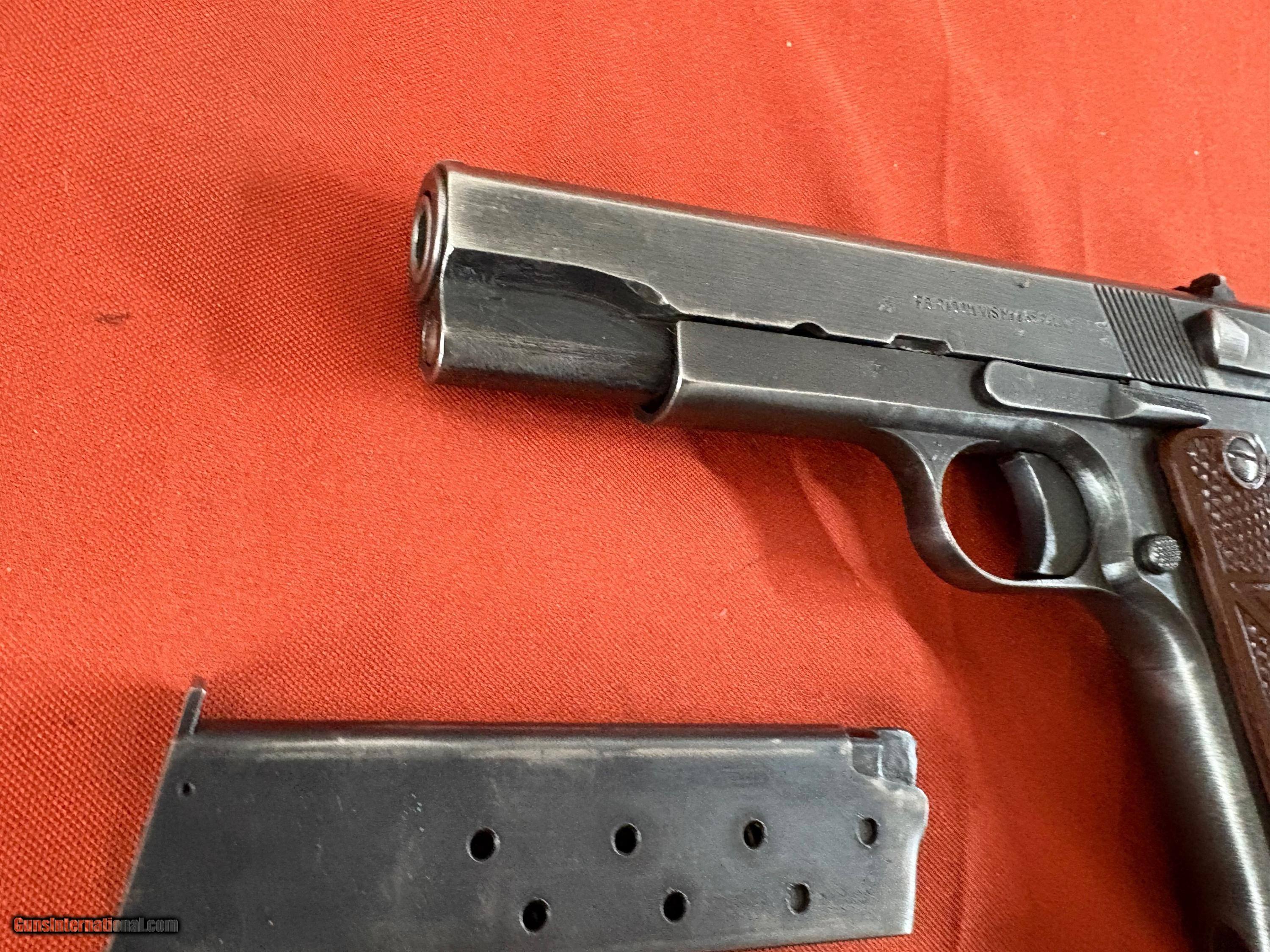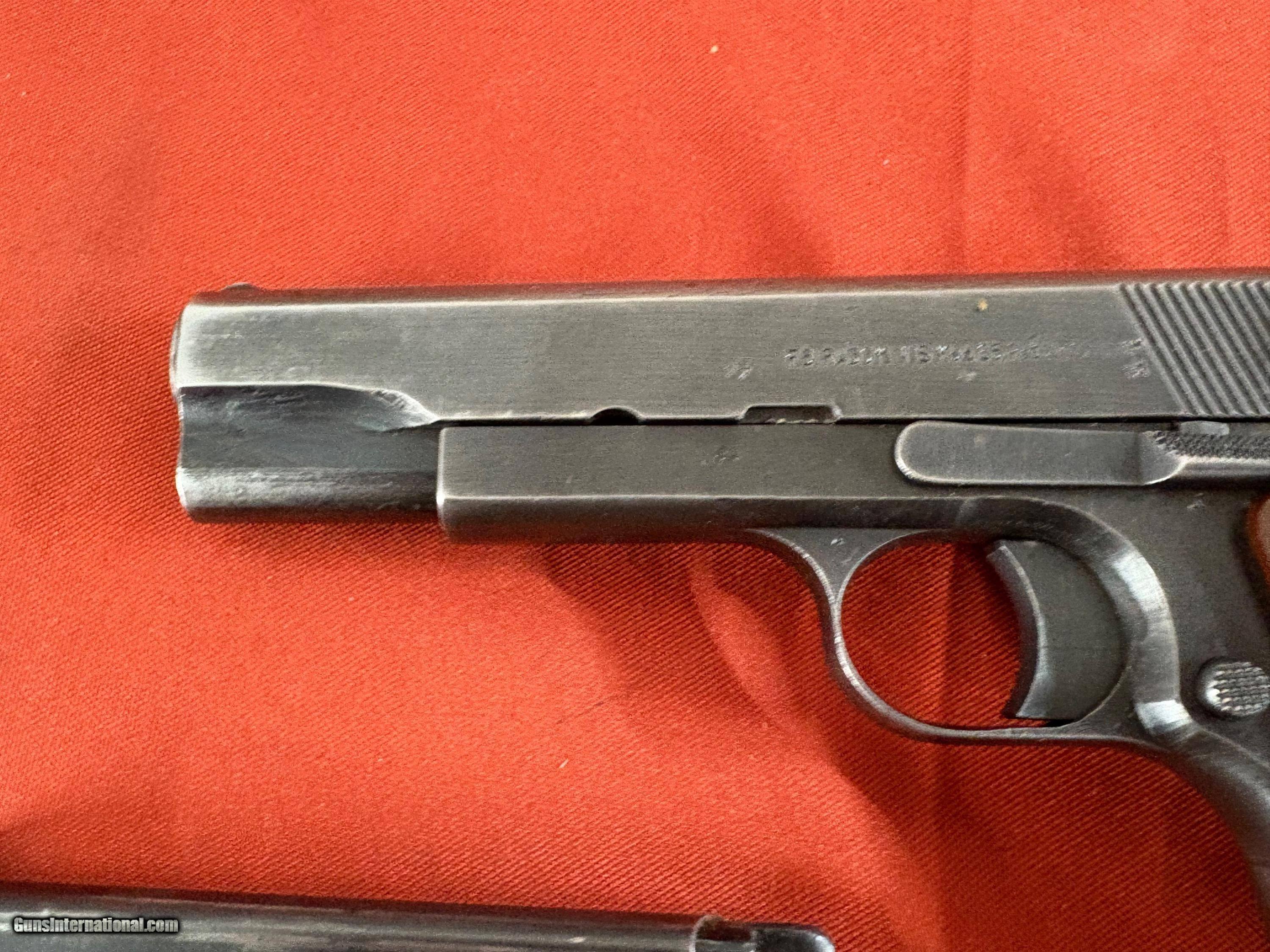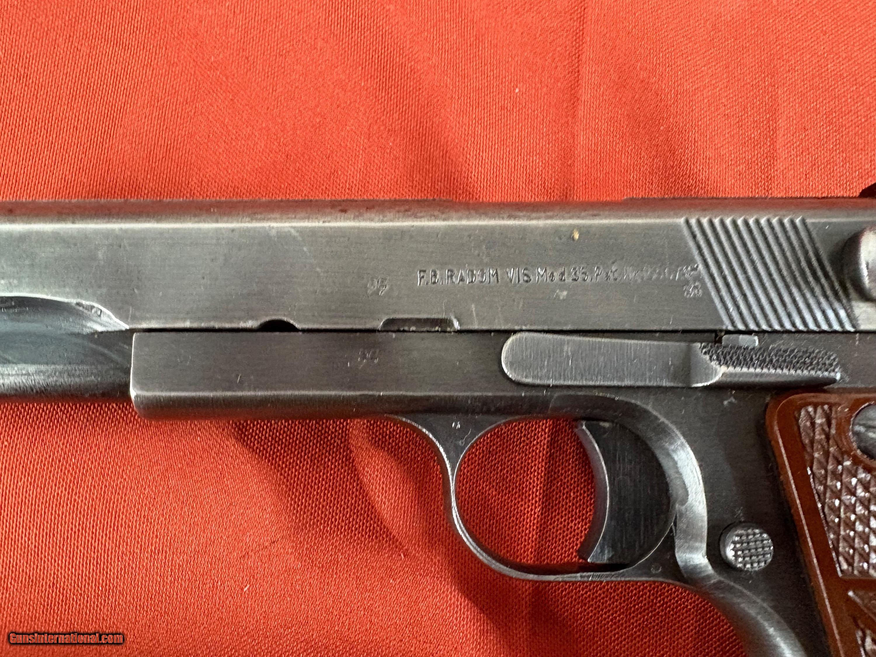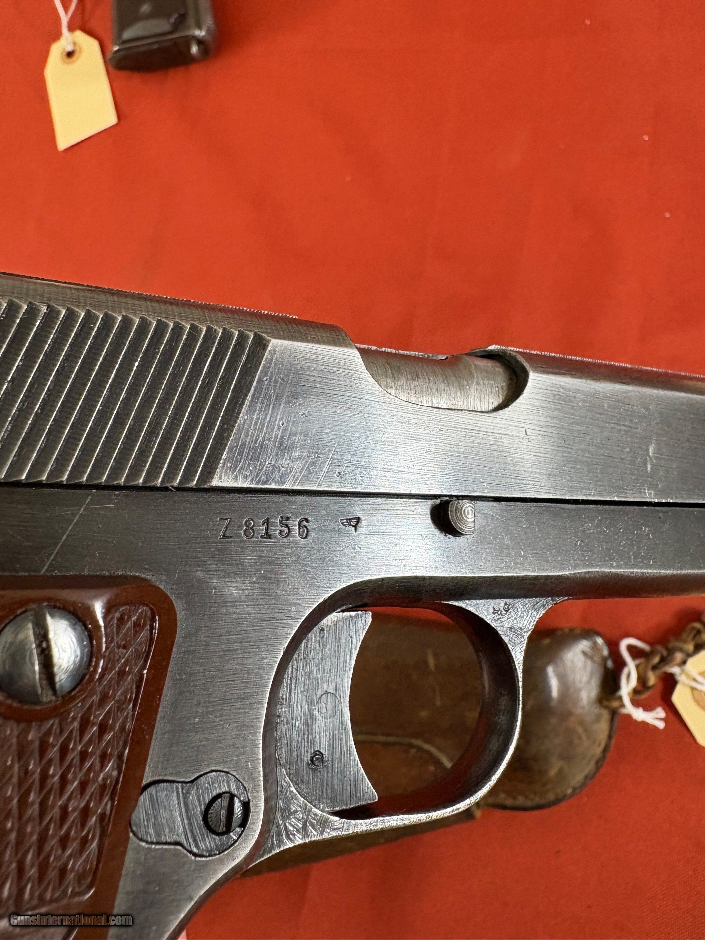 Description: WWll NAZI POLISH F.B. RADOM VIS. MOD35 SEMI AUTO PISTOL ~ COMPLETE RIG ~ SER# Z8156. ORIGINAL FINISH . BRIGHT BORE. ALL MATCHING NUMBERS INCLUDING THE BARREL . COMES WITH TWO MAGAZINES AND HOLSTER , EASTERN BRANCH FIREARMS ADD 50.00 SHIPPING – HANDGUNS SHIP NEXT DAY AIR ADD 50.00 SHIPPING – LONG GUNS SHIP GROUND OPTIONAL INSURANCE IS AVAILABLE AT 1.25 PER 100.00 Questions e-mail or call Glen at Eastern Branch Firearms 207-215-5021 TERMS – PLEASE READ BEFORE I DO NOT HAVE A LAYAWAY OPTION ( WE ACCEPT CREDIT CARDS ) -- I GET ALOT OF REQUEST FOR TRADES, I WOULD PERFER NOT TO DO TRADES ON MY INTERNET LISTINGS PAYMENT OPTIONS- We accept money orders, cashier’s checks , bank checks. personal checks ( with personal check - shipping hold for 10 days from check being deposited - no exceptions) . We accept all major credit cards please add 3% to the ’s cash discount price.(Shipping within the state of Florida - Florida Residents must pay sales tax) .Handguns and long guns do need to be shipped separate. PLEASE do not send payment via FED EX . USPS & UPS are fine. Thank you. We include a signed copy of our FFL with each firearm shipped. SAFTY NOTICE- Buyer is solely responsible for determining that a used gun is safe to shoot. The firearms offered have not been test fired but have been given a visual inspection only for purposes. It is a requirement that every used firearm is inspected by a qualified gunsmith before firing. By , the buyer agrees to hold seller harmless against damages, injury, or death caused by defective merchandise. RETURN POLICY- All firearms come with a 3-day non firing , non messing with ( turning srews ,taking apart,removing parts, scoping. firing, cleaning or messing with in anyway) inspection/return privilege.Inspection is based on a visual review of the gun to confirm the gun is in the condition stated. In the case of a return, buyer pays all shipping charges & if paid for with a credit card buyer absorbs the 3% credit card charges . So please ask questions BEFORE you bid. Thanks for Looking and Good Luck!! Curio/Relic: Yes Price: $1,795.00 Shipping: $50.00 Contact Seller |