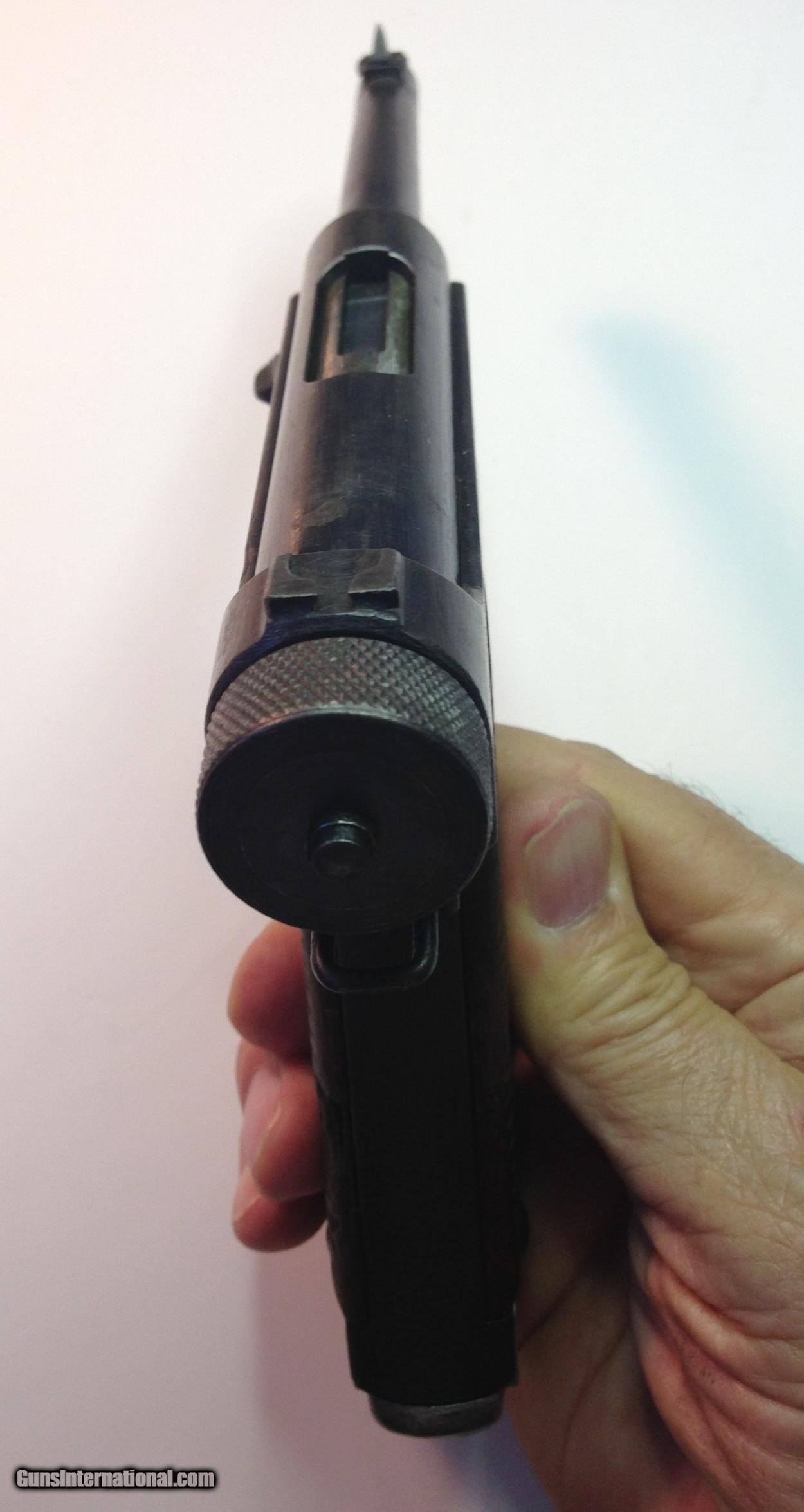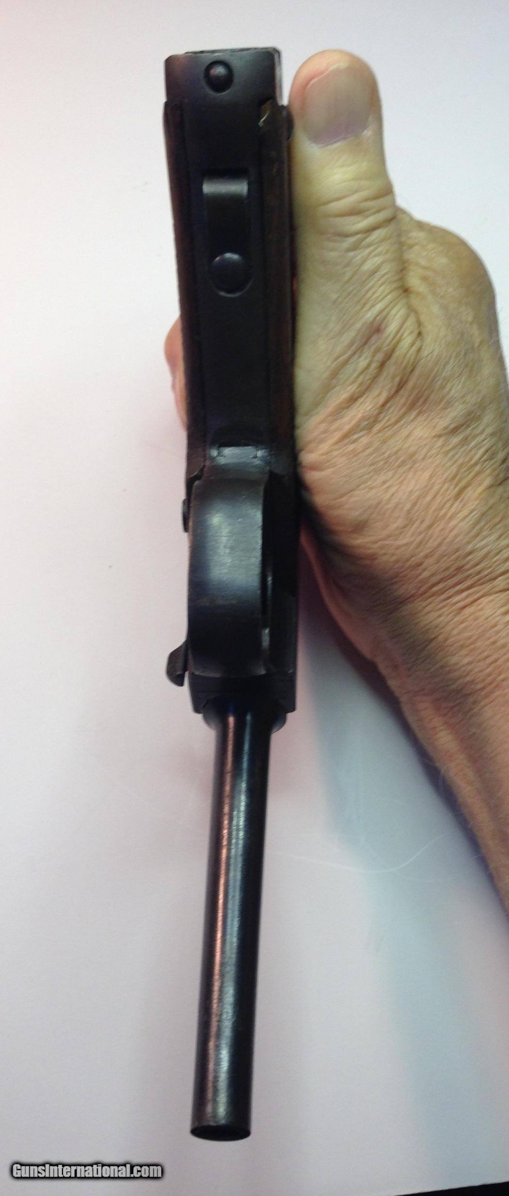 Description: This Japanese Nambu 8mm pistol was made in January 1944 at the Nagoya Arsenal, and later a Pacific Island WWII battlefield pickup by a USMC veteran (now deceased) who gave me this very nice Nambu and its holster. He simply said he "found it"with no more comment (?). The clip's serial number matches the pistol, so I think it was carried by a "one owner" Jap officer or senior NCO. Its blueing is amazingly nice, with some wear of course. Has a shiny, crisp bore (see pic). This is truly an excellent and historical enemy weapon from the Pacific War, piocked up by a G.I. who fought the good fight there. SOLD Curio/Relic: Yes |