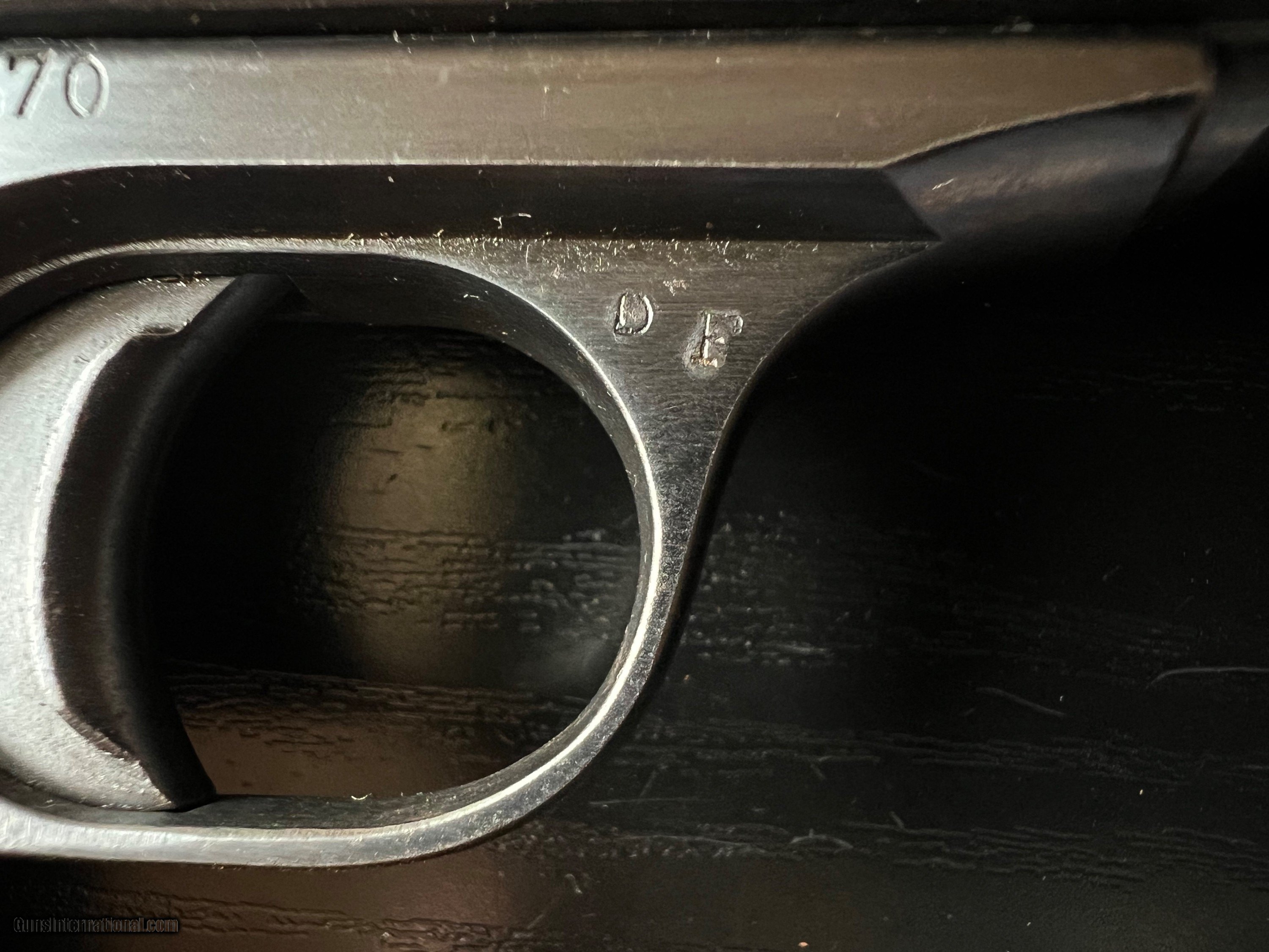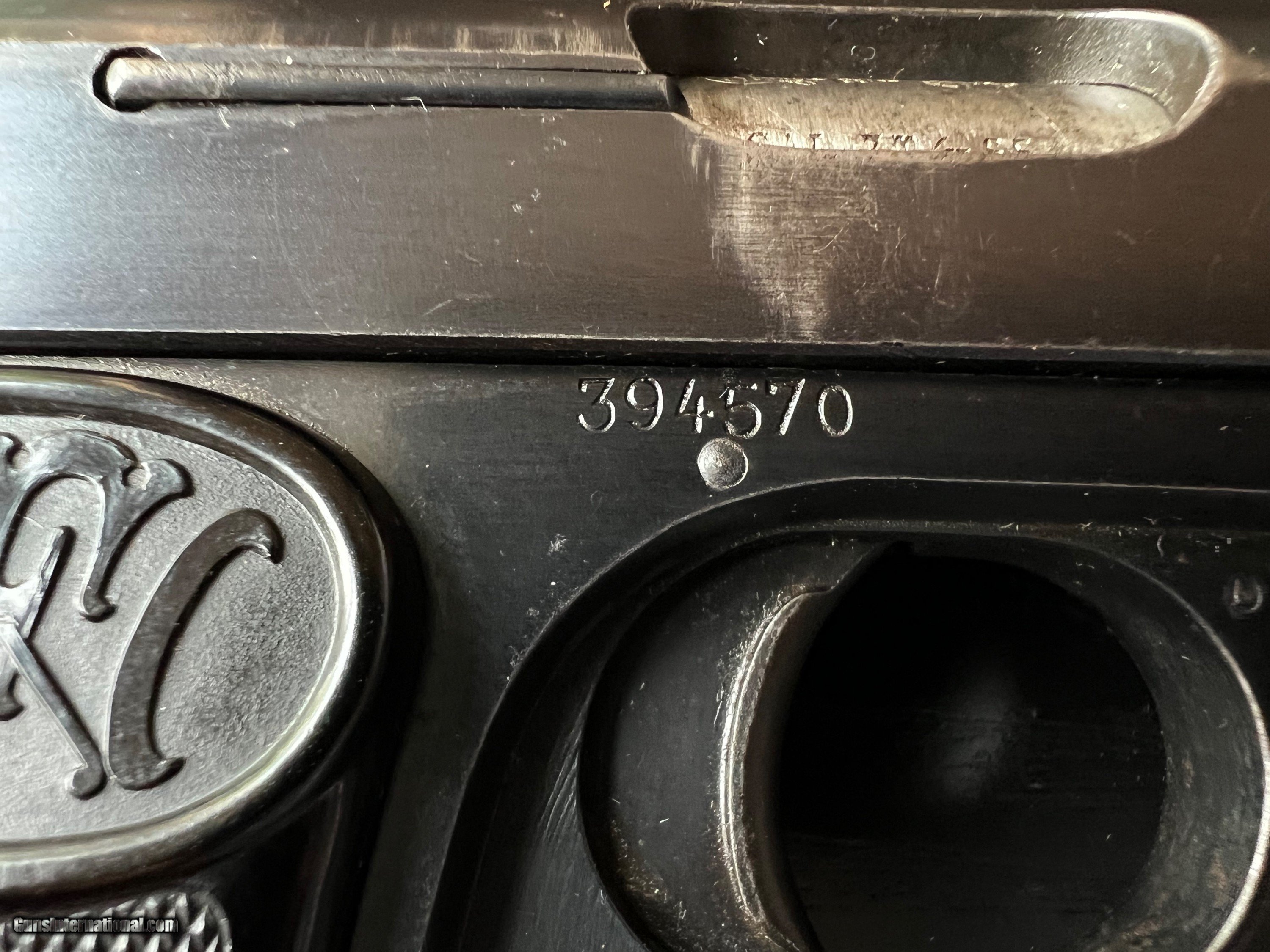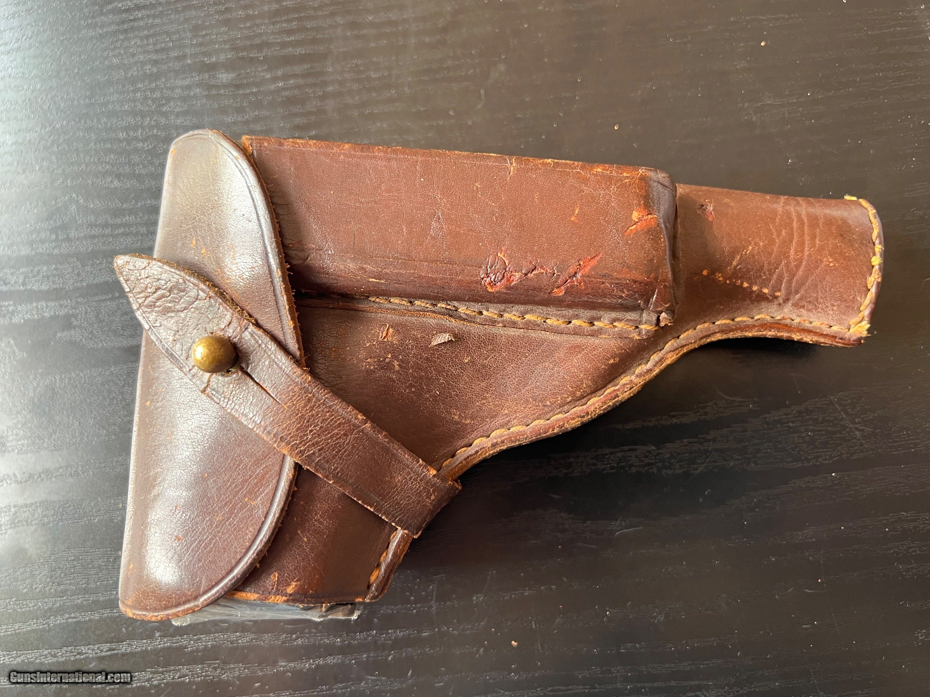 Description: SOlD!This is a scarce Japanese officer purchase FN 1910 rig with its original Japanese made holster. The gun falls in the correct serial range for Japanese purchases and it s in excellent original condition with minor spotting and holster wear on the slide, retaining about 97% of its original blue. The holster is in excellent shape as well and has the officer's name OSHIMA written inside the flap in kanji. This is a vet bring back and comes with both original magazines. Japanese procured Brownings are highly collectible and sought after. 3-day inspection. FFL or C&R where allowed. $50 insured shipping in CONUS. SOLD Curio/Relic: Yes |