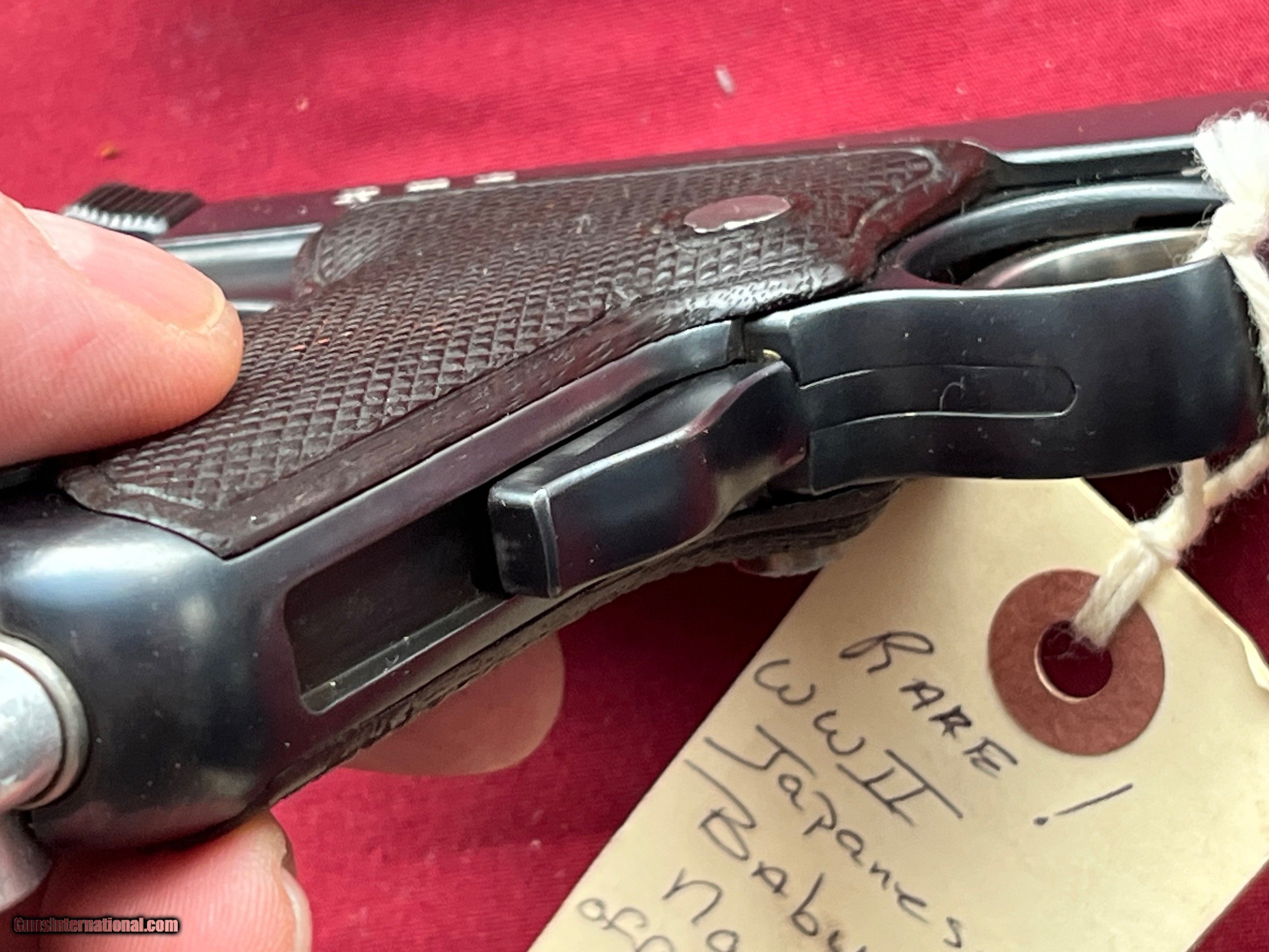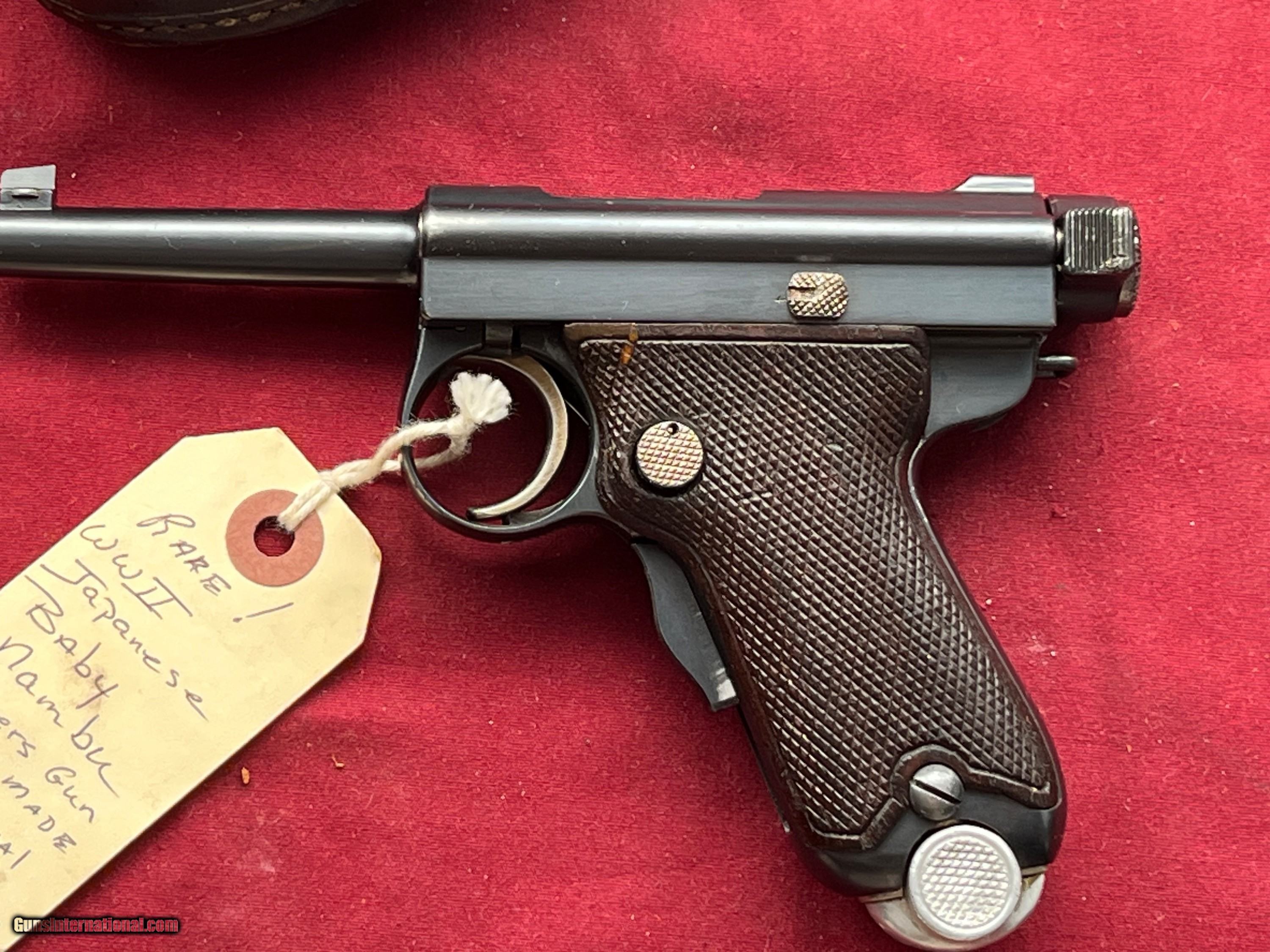 Description: RARE - MILITARY JAPANESE BABY NAMBU SEMI AUTO PISTOL. HIGH CONDITION INVESTMENT GRADE GUN .CORRECT MATCHING NUMBERS GUN. SER#5116 WITH MATCHING NUMBERS MAGAZINE. EXCELLENT ORIGINAL BLUE FINISH EXCELLENT SOLID GRIP PANELS. EXCELLENT BRIGHT BORE. LEFT GRIP PANEL SHOWS A MINOR REPAIR AT THE TOP CORNER. COMES WITH A VERY RARE BABY NAMBU HOLSTER. EASTERN BRANCH FIREARMS ADD 40.00 SHIPPING – NEXT DAY AIR SHIPPING ADD 50.00 SHIPPING – LONG GUNS GROUND OPTIONAL INSURANCE IS AVAILABLE AT 1.25 PER 100.00 Questions e-mail or call Glen at Eastern Branch Firearms 207-215-5021 TERMS – PLEASE READ BEFORE I DO NOT HAVE A LAYAWAY OPTION ( WE ACCEPT CREDIT CARDS ) -- I GET ALOT OF REQUEST FOR TRADES, I WOULD PERFER NOT TO DO TRADES ON MY INTERNET LISTINGS PAYMENT OPTIONS- We accept money orders, cashier’s checks , bank checks. sorry no personal checks. We accept all major credit cards please add 3% to the ’s cash discount price.(Shipping within the state of Florida - Florida Residents must pay sales tax) .Handguns and long guns do need to be shipped separate. PLEASE do not send payment via FED EX . USPS & UPS are fine. Thank you. We include a signed copy of our FFL with each firearm shipped. SAFTY NOTICE- Buyer is solely responsible for determining that a used gun is safe to shoot. The firearms offered have not been test fired but have been given a visual inspection only for purposes. It is a requirement that every used firearm is inspected by a qualified gunsmith before firing. By , the buyer agrees to hold seller harmless against damages, injury, or death caused by defective merchandise. RETURN POLICY- All firearms come with a 3-day non firing , non messing with ( turning srews ,taking apart,removing parts, scoping. firing, cleaning or messing with in anyway) inspection/return privilege.Inspection is based on a visual review of the gun to confirm the gun is in the condition stated. In the case of a return, buyer pays all shipping charges & if paid for with a credit card buyer absorbs the 3% credit card charges . So please ask questions BEFORE you bid. Thanks for Looking and Good Luck!! U.S. sales only, no exports…this includes antiques. I will ship to third party for exporting SOLD Curio/Relic: Yes |