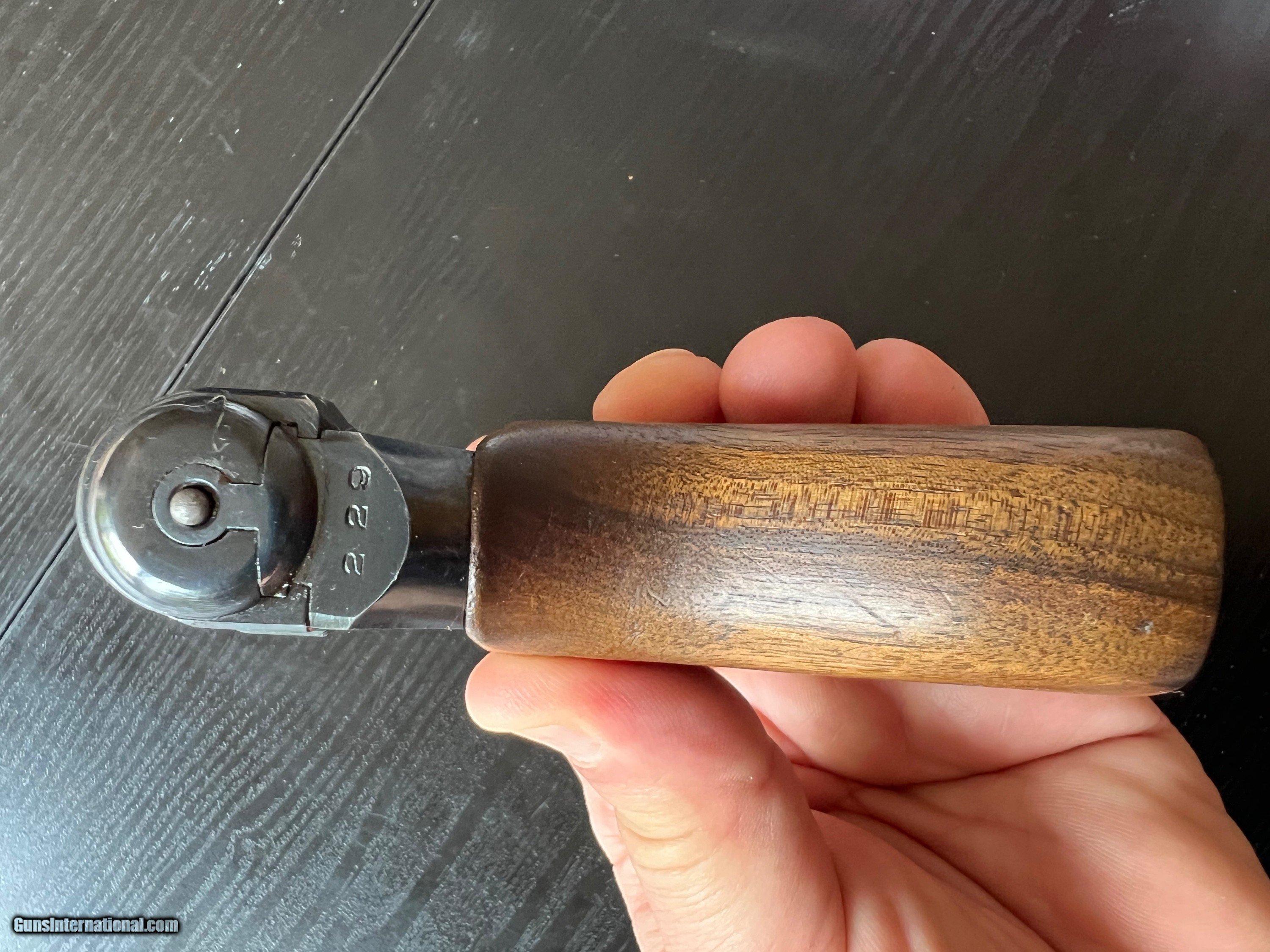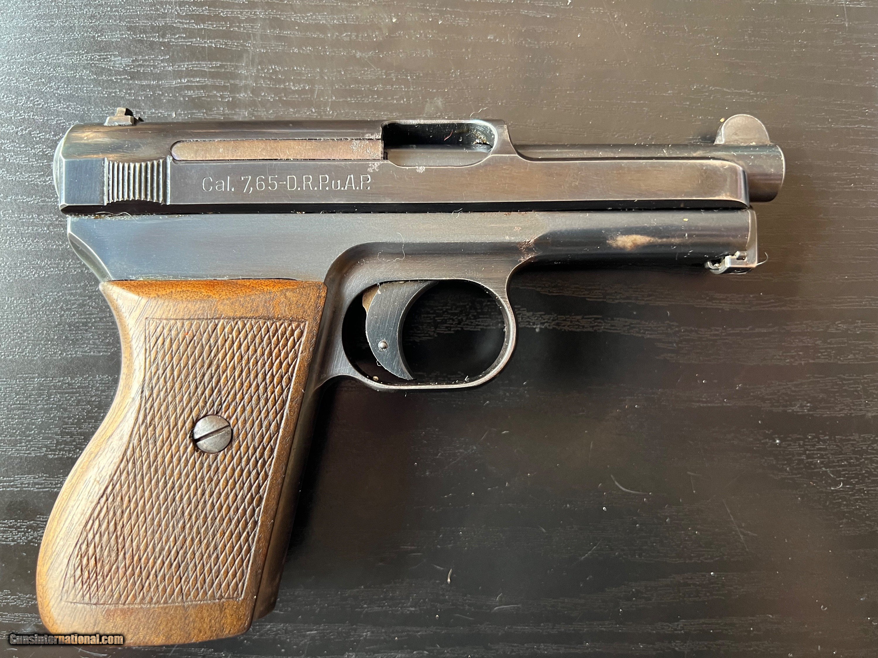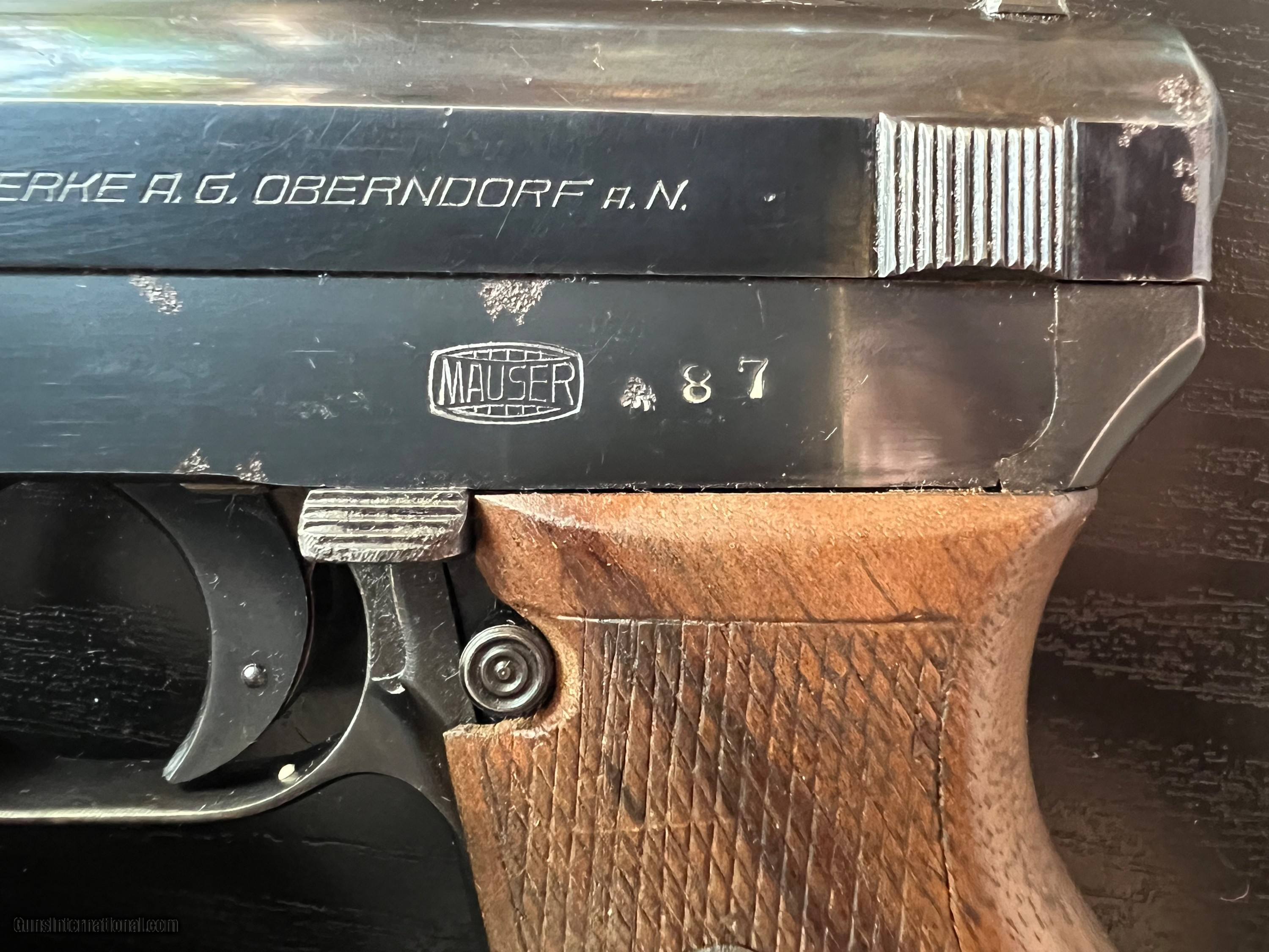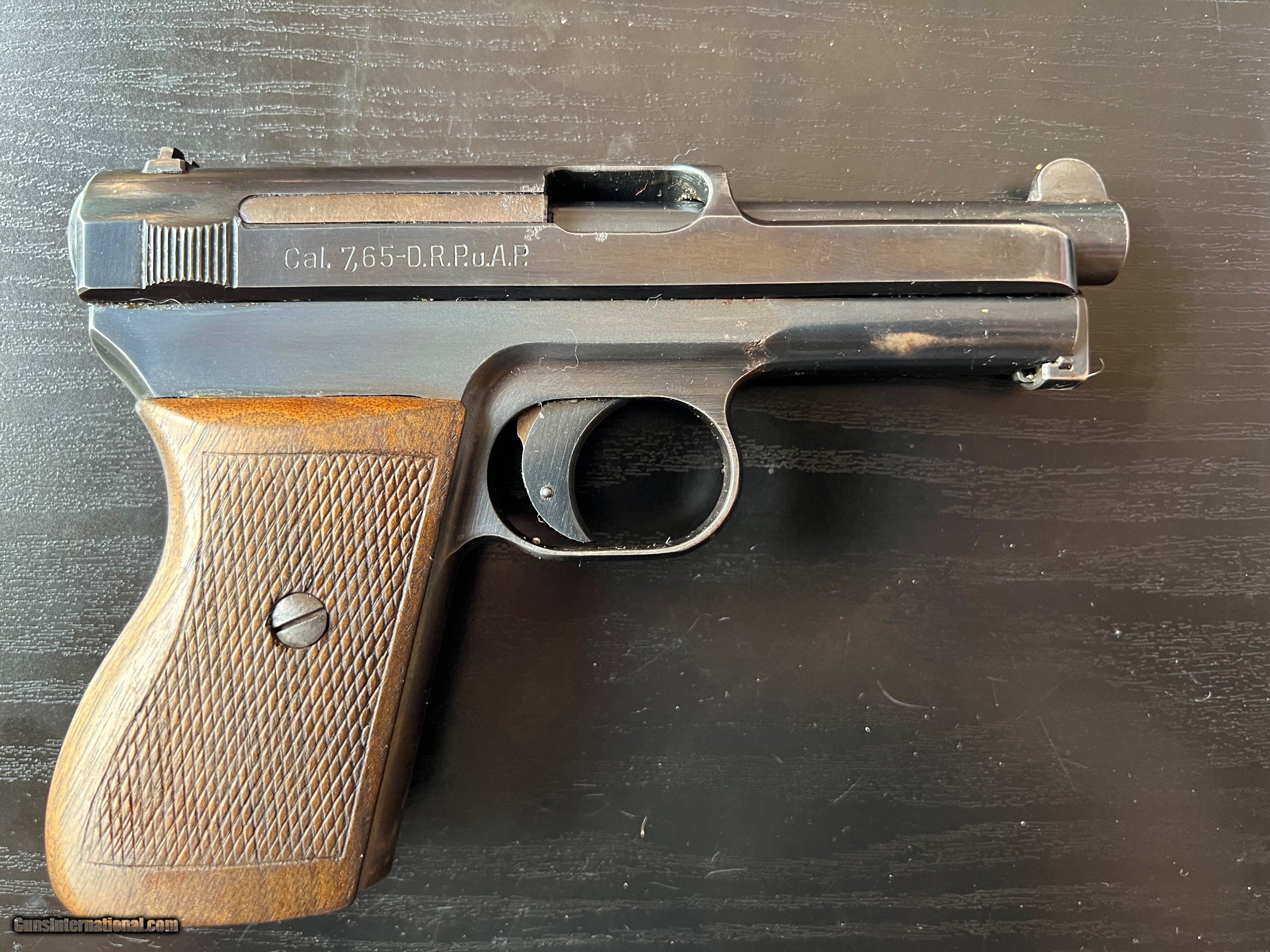 Description: This is a scarce Japanese procurement Mauser 1934 rig inn.32ACP, with its original Japanese made holster. the gun is in about 96-97% original condition with minor holster wear and a couple of spots of peppering on the left side of the slide. This is a pre-war Crown/U proofed gun. These were often purchased by the Japanese army and police officers before WWII. This one has a kanji mark and a rack number on the left side. Holster is in great condition as well and has no defects. A highly sought after Japanese purchase Mauser 1934 with Kanji marking! 3-day inspection FFL or C&R(where legal) $50 insured shipping in CONUS Layaway available. SOLD Curio/Relic: Yes |