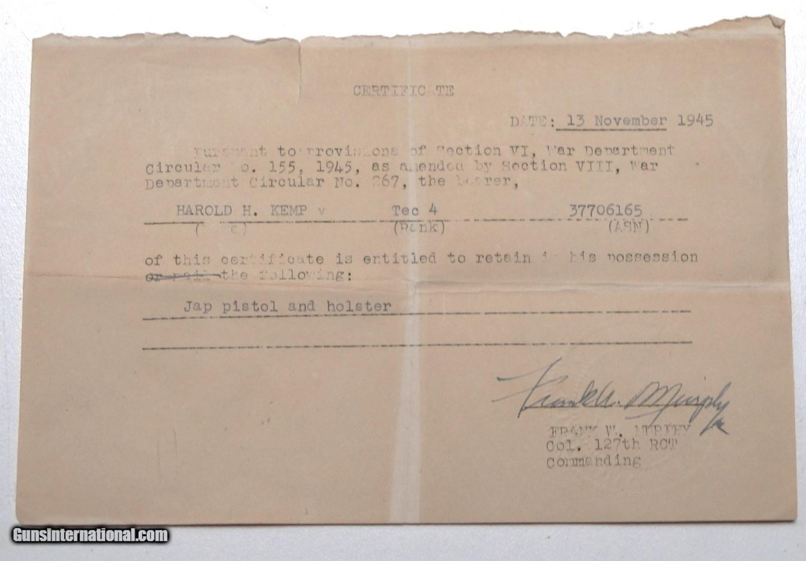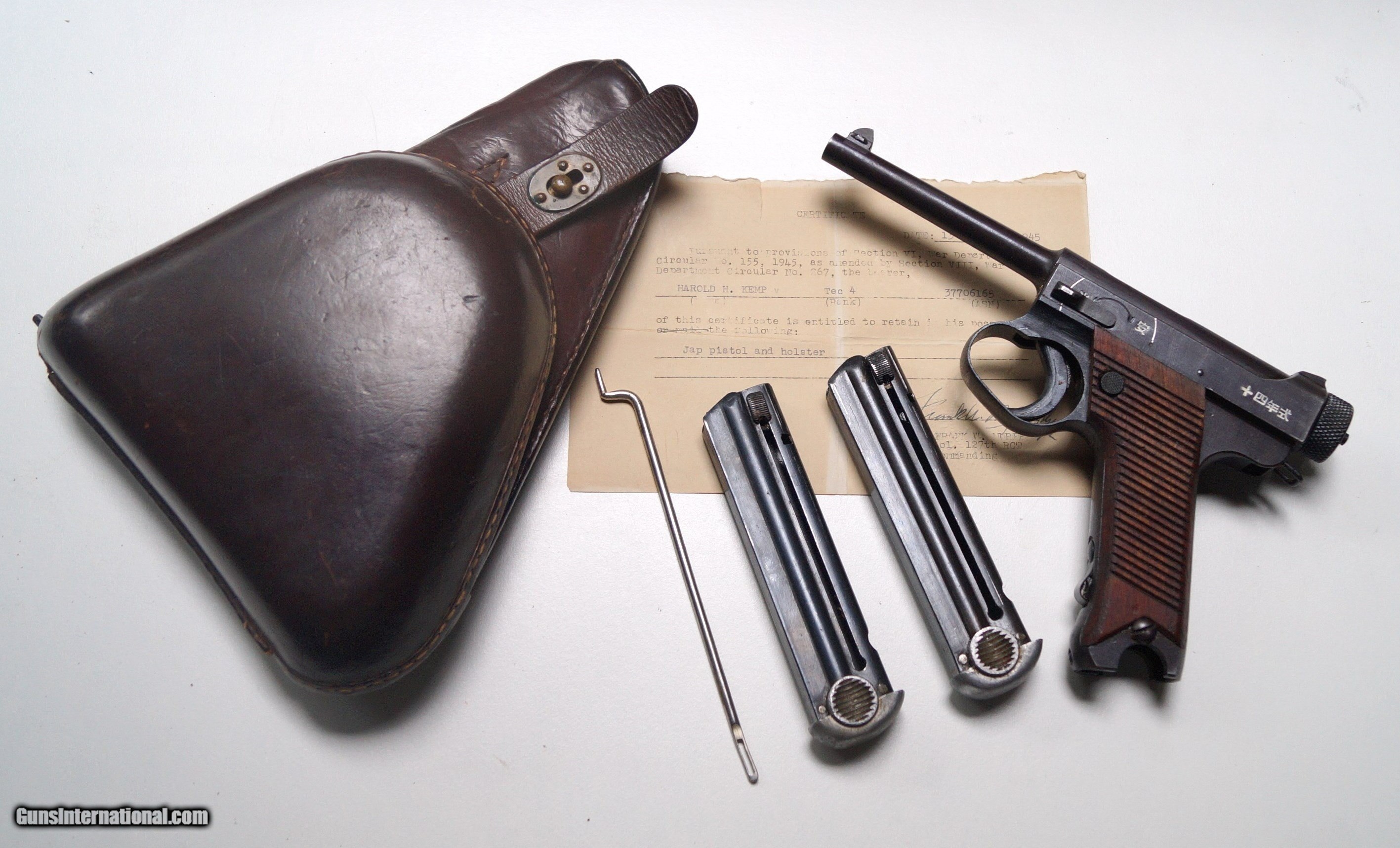 WWII JAPANESE T-14 NAMBU RIG WITH BRING BACK PAPERS