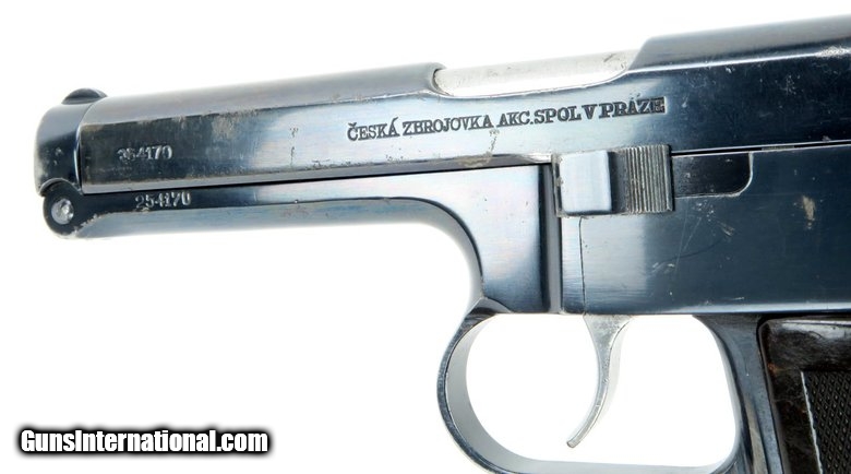 Description: CZ 38 .380 ACP caliber pistol. Produced in 1939 for the Czech military. Germany took over the production and issued it to their troops. Bore is excellent. Refinished at some point. Good overall condition.