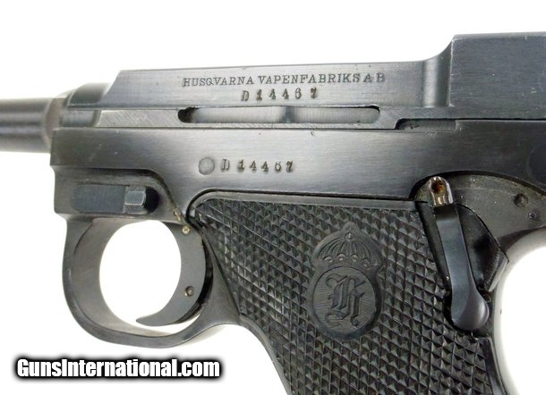 Husqvarna Lahti 9mm caliber pistol. Produced during WWII for the Swedish Military and police. Matching serial numbers. Excellent condition bore and original grips and magazine. About 99% finish. Has been import marked. Excellent condition.