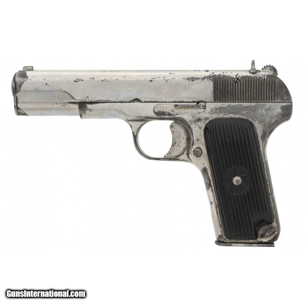 Description: " SN: 13018691. Chinese military pistol dated 1966, probably a Vietnam war bring back. Bore is surprisingly excellent. Has been chrome plated and shows wear. SOLD |