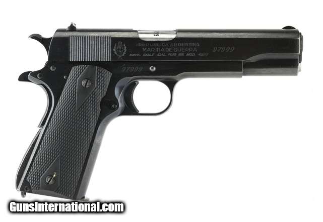 Description: " D.G.F.M 1927 .45 ACP Caliber pistol. Argentine Marina de Guerra (Navy) Model 1927 Sistema Colt. Pistol has the National Seal of Argentina on slide. Numbers match except magazine. Pistol is excellent to near new with 99% blue. These Argentine 1927 models were made in Argentina on license by Colt on Colt equipment. Initially supervised by Colt, these are excellent quality .45 ACP pistols. Bore is like new. Action is tight and works perfectly, Argentina issued these 1927 model to the National Police and the military. The pistols issued to the Navy were not many as compared to other services. Beautiful condition.