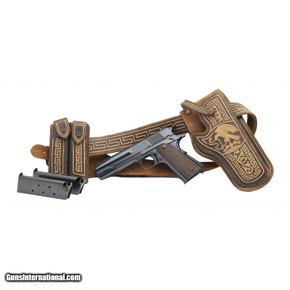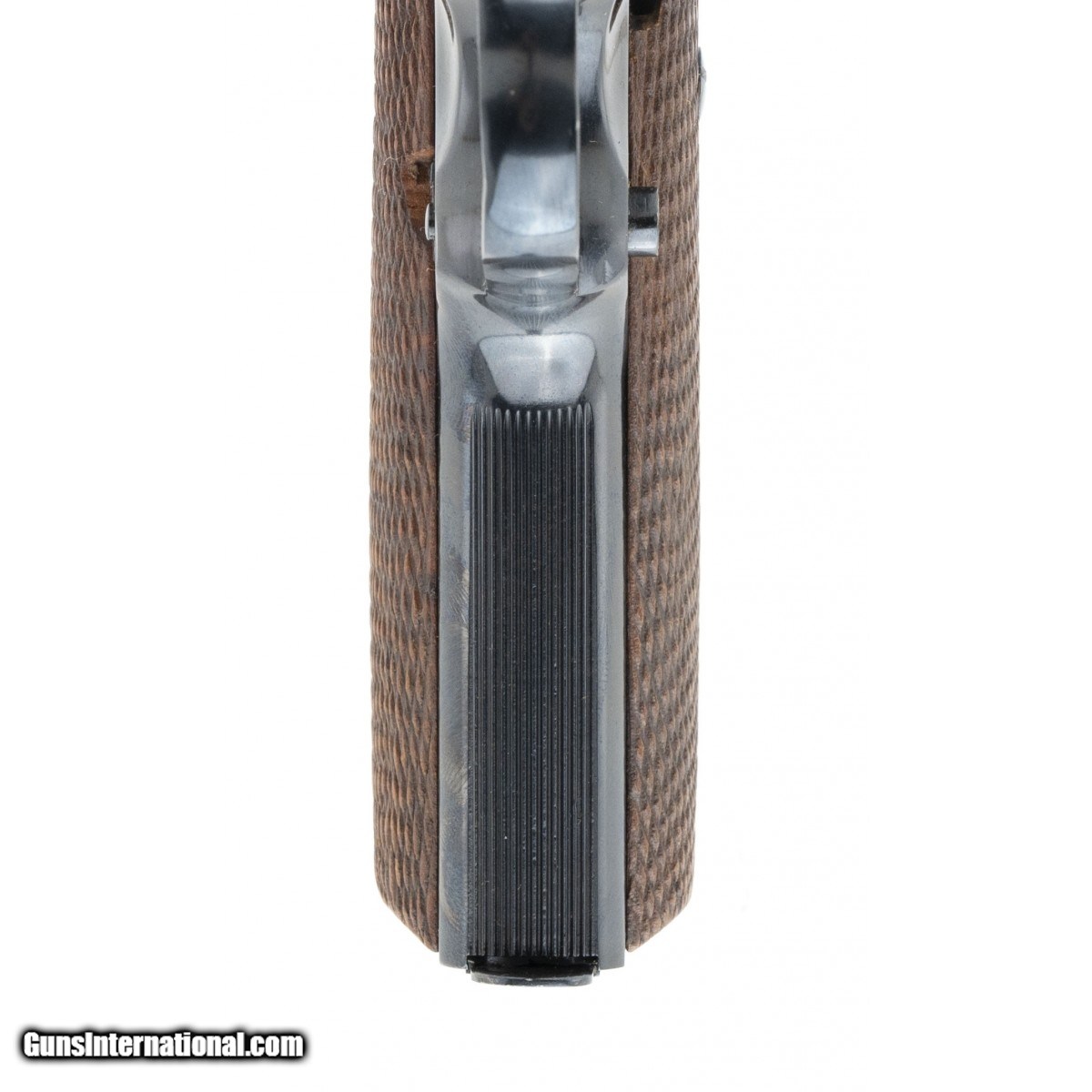 Description: " Rare Mexican military pistol. The Obregon is named after its inventor in Mexico. Manufactured by Fabrica de Armas in Mexico City in the mid to late 1930's. The bore has worn rifling and is dark in the grooves. This rare Obregon has been professionally refinished and looks great. Pistol is chambered for .45ACP (11.43mm). Comes with two additional magazines and an embroidered Mexican Piteado leather holster on belt. A very rare Mexican military pistol. SOLD Curio/Relic: Yes |
