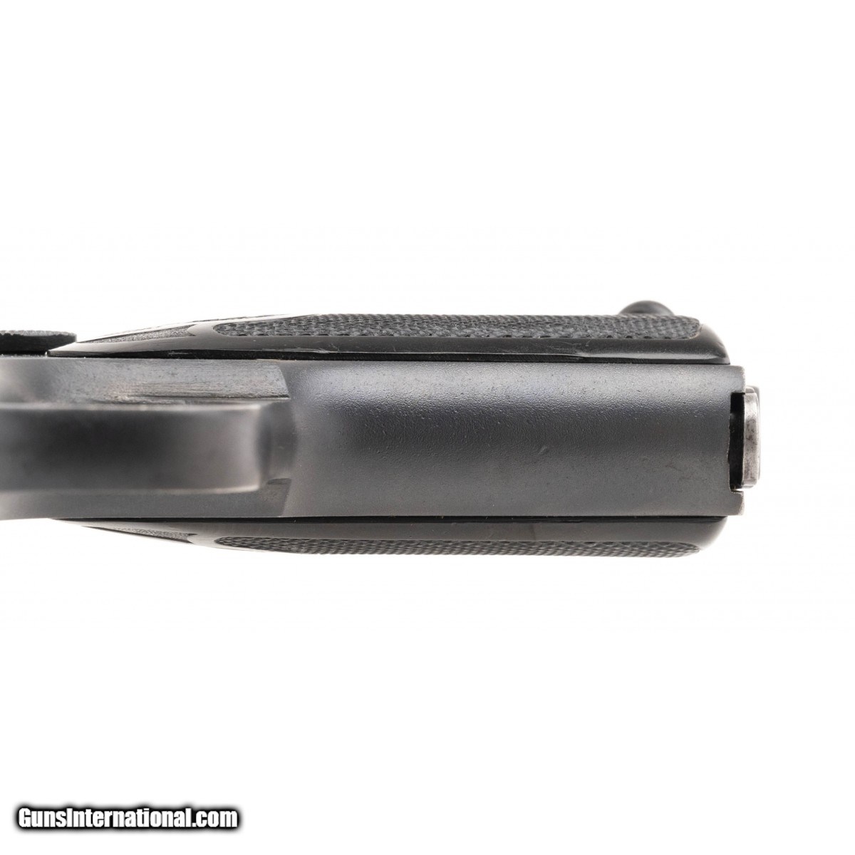 Description: " The Swedish Army Model 1907 pistol is a copy of the Browning Model 1903. It was used by the Swedish Army from 1907 to 1940. Originally chanbered for the 9mm long (9X20 Browning or 9mm Largo) many, like this one, were converted to 380 ACP when they were imported into the U.S. The 5"" barrel has an excellent bore with bright, strong rifling. The gun has approx. 96% of its military dull blue finish. The left side of the slide is maked HUSQVARNA VAPENFABRIKS AKTIEBOLAG. The left side of the frame has CSL 380 above the trigger and unit markings of 19 No 1361 to the rear. There is a crown over GB at the rear of the frame. The checkered hard rubber grips, wiht a crown over H logo at the top, are excellent with no cracks or chips. The action functions correctly. This is a great example of the Swedish Model 1907 Army pistol in a shootable caliber. SOLD Curio/Relic: Yes |