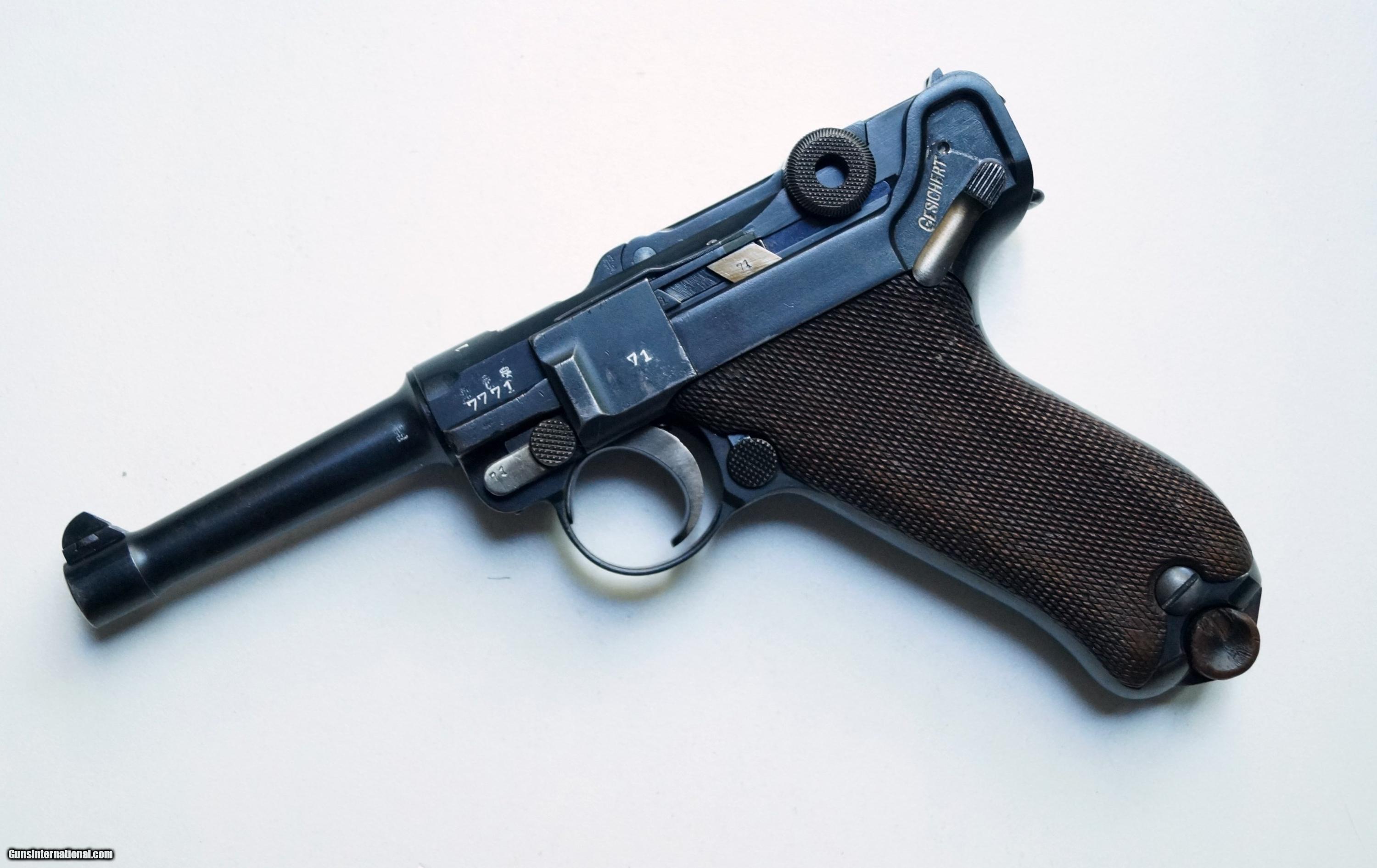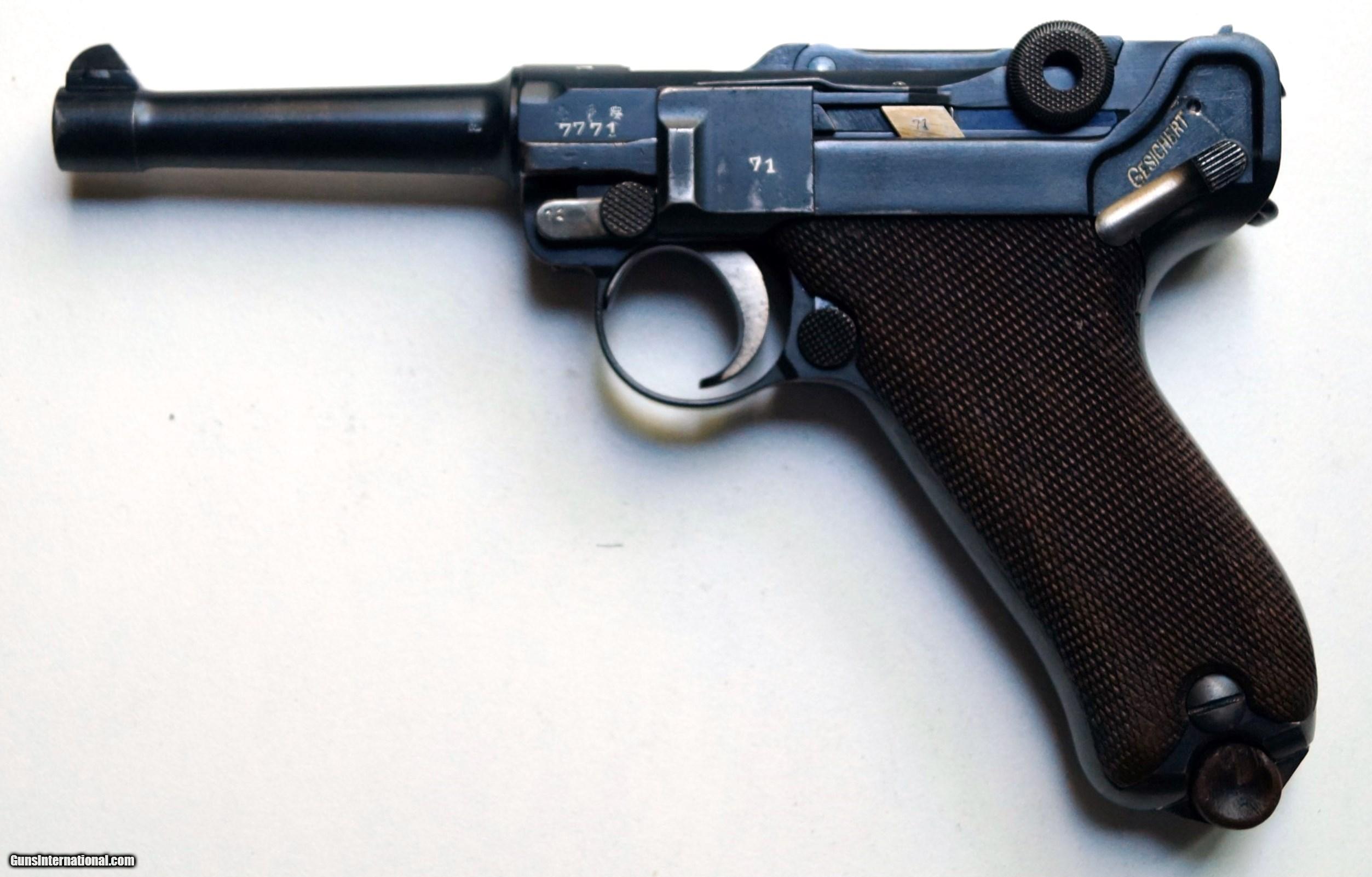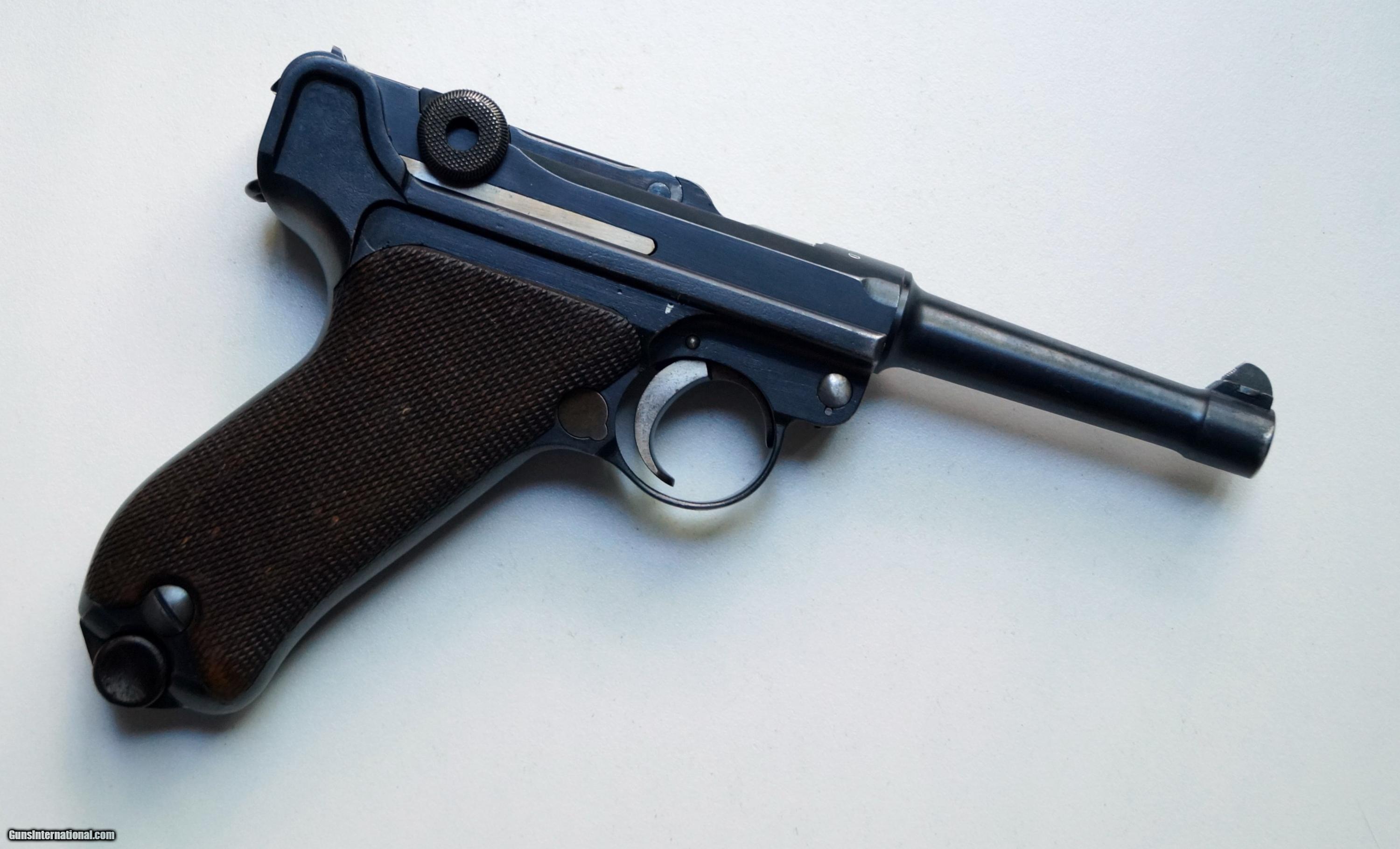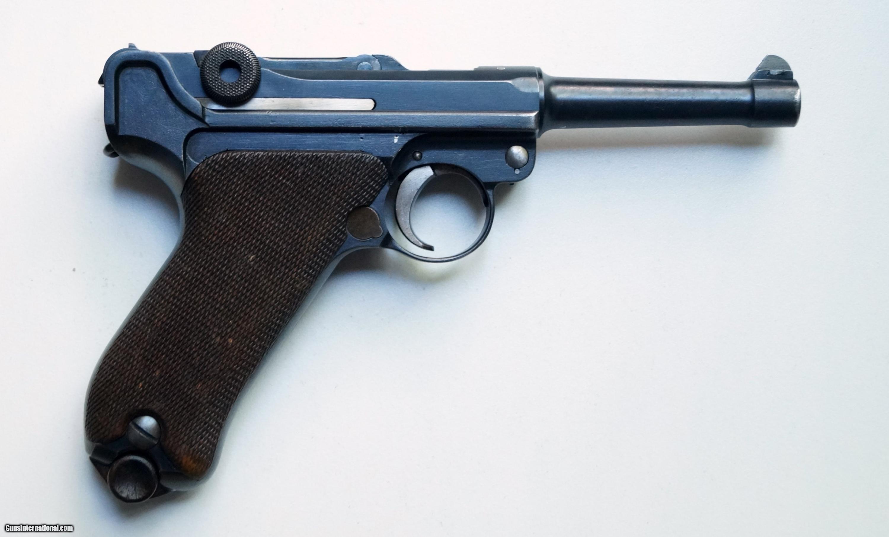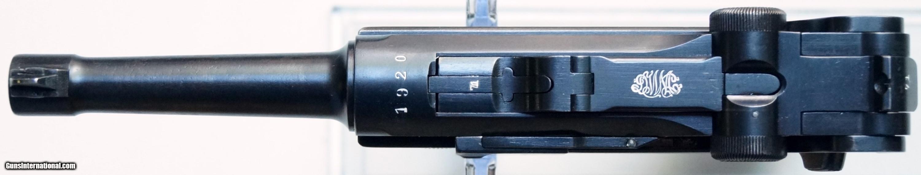 Description: THIS IS A 1908 /1920 DWM MILITARY/POLICE GERMAN LUGER, 9MM. THE LUGER IS IN VERY GOOD CONDITION. ALL ORIGINAL, NUMBER MATCHING, VERY GOOD BORE AND GRIPS, MECHANICALLY CORRECT AND TIGHT. A RARER HARD TO FIND 1908 MILITARY GERMAN LUGER. NOTE: THIS LUGER IS ONE OF THE FIRST MILITARY GERMAN LUGERS ACCEPTED BY WWI GERMAN ARMY. WHAT SETS THIS ONE APART FROM LATER LUGERS IS THAT THE MARKINGS ARE LOCATED IN DIFFERENT AREAS AND THE LUGER WAS ORIGINALY MADE WITHOUT A STOCK LUG AND HOLD OPEN DEVISE (THIS WAS ADDED LATER AND HAS THE PROOF MARK TO SHOW IT). THE HISTORY OF THIS GUN STARTED IN WWI AS A MILITARY GUN, THEN WAS ASSIGNED TO THE POLICE (SEAR SAFETY WAS ADDED AT THAT TIME) AFTER THE WAR AND LATER WAS USED DURING WWII WHERE IT WAS CAPTURED. SOLD Curio/Relic: Yes |
