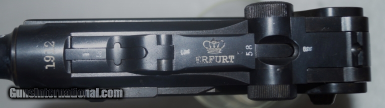 Description: THIS IS A 1912 ERFURT MILITARY GERMAN LUGER, 9MM. THE LUGER IS IN VERY GOOD CONDITION,ALL ORIGINAL,NUMBER MATCHING ( INCLUDES GRIPS AND MATCHING # TO THE GUN MAGAZINE),VERY GOOD BORE AND GRIPS,MECHANICALLY CORRECT AND TIGHT.A NICE WW1 ALL ORIGINAL GERMAN LUGER. NOTE: THE 1908 P08 WAS THE ACCEPTED BY GERMAN MILITARY IN 1908.THE EARLY LUGERS LIKE THIS ONE ARE SPECIAL BECAUSE THEY WERE MADE WITHOUT STOCK LUGS AND HOLD OPENS.HOLD OPENS WERE ADDED LATTER. SOLD Curio/Relic: Yes |