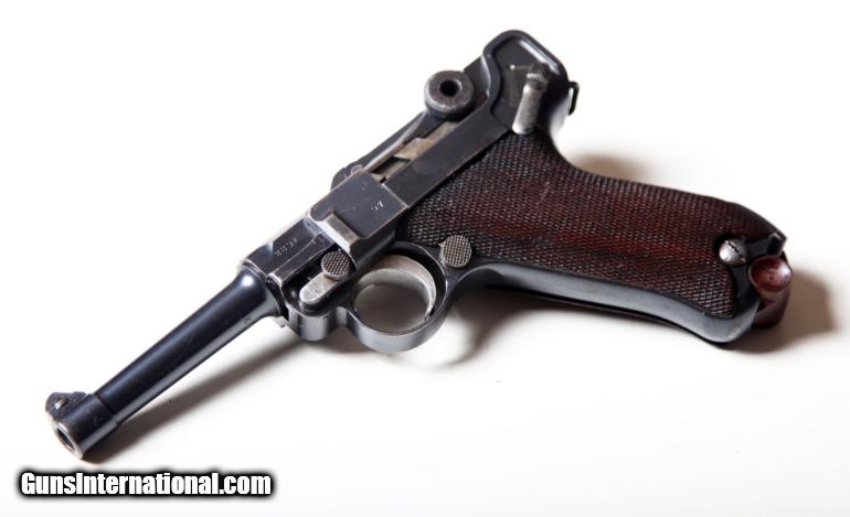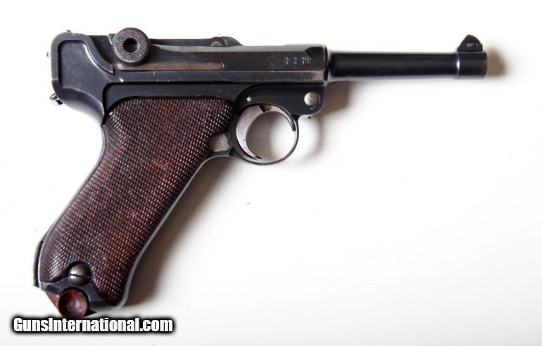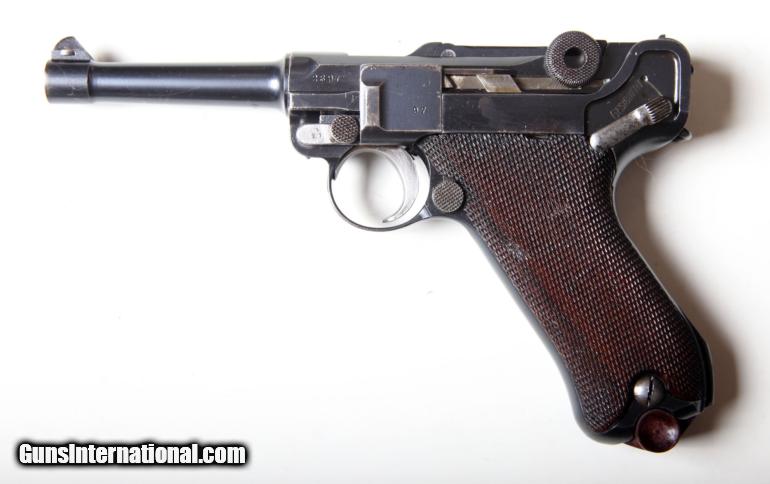 Description: THIS IS A 1915 DWM MILITARY GERMAN LUGER RIG.THE LUGER HAS AGED WELL.IT IS ALL ORIGINAL,NUMBER MATCHING INSIDE AND OUT INCLUDING THE GRIPS,VERY GOOD BORE AND GRIPS,MECHANICALLY CORRECT AND TIGHT.THE RIG CONSISTS OF THE LUGER,2 ORIGINAL WOOD BOTTOM MAGAZINES (NOT NUMBERED TO THE GUN),1 ORIGINAL 1917 DATED HOLSTER AND A LOADING TOOL.A VERY NICE WWI GERMAN LUGER RIG. SOLD Curio/Relic: Yes |