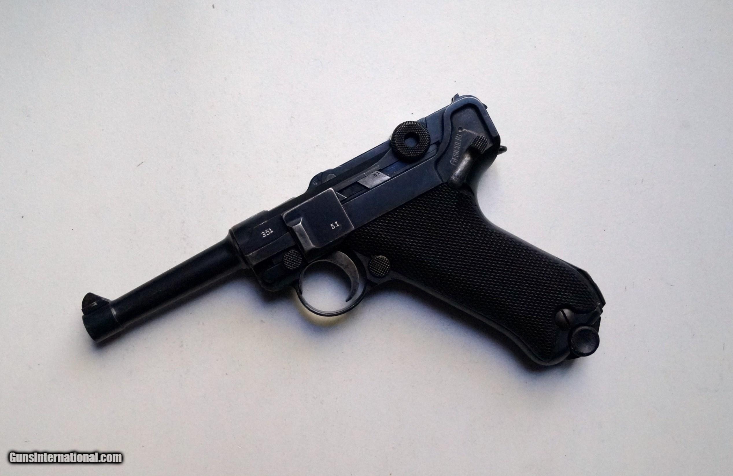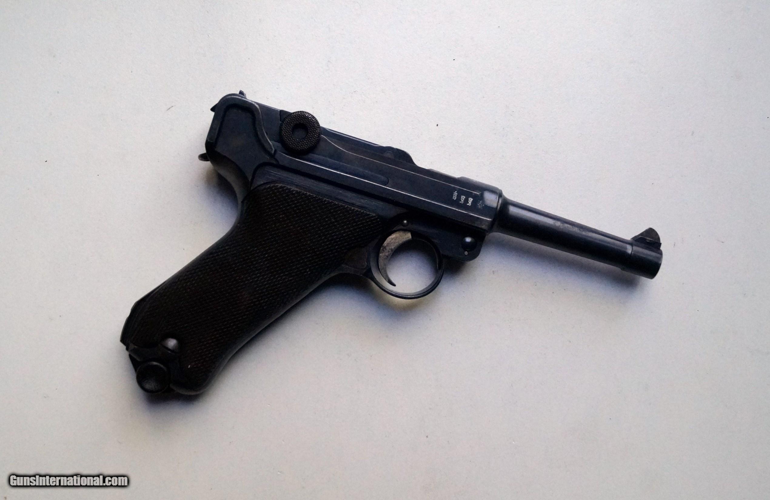 Description: THIS IS A 1916 DWM MILITARY GERMAN LUGER, 9MM. THE LUGER IS IN GOOD CONDITION. ALL ORIGINAL, NUMBER MATCHING (THIS INCLUDES THE ORIGINAL MAGAZINE), VERY GOOD BORE AND GRIPS (GRIPS ARE NUMBERED TO THE GUN), MECHANICALLY CORRECT AND TIGHT. A VERY NICE WWI ORIGINAL MILITARY GERMAN LUGER. NOTE: THE GRIP STRAP IS GERMAN UNIT MARKED. SOLD Curio/Relic: Yes |