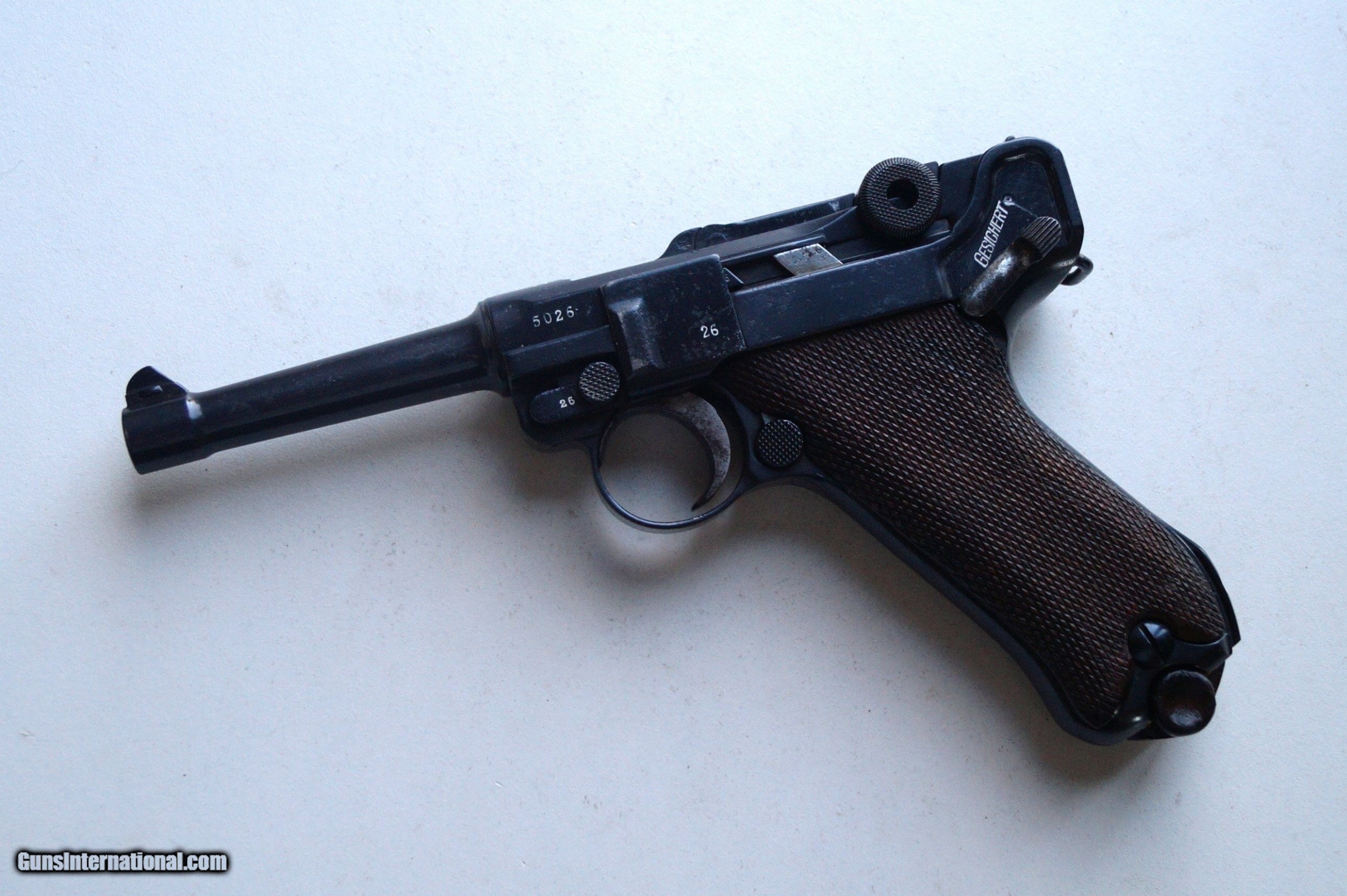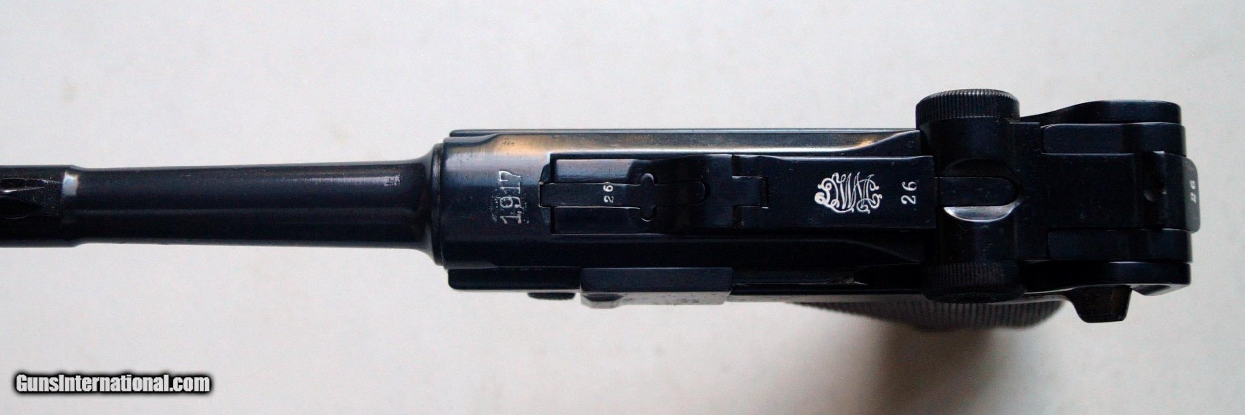 Description: THIS IS A 1917 DWM MILITARY GERMAN LUGER, 9MM. THE LUGER IS IN GOOD CONDITION. NUMBER MATCHING INSIDE AND OUT, VERY GOOD BORE AND GRIPS, MECHANICALLY CORRECT AND TIGHT. A VERY NICE WWI MILITARY GERMAN LUGER. SOLD |