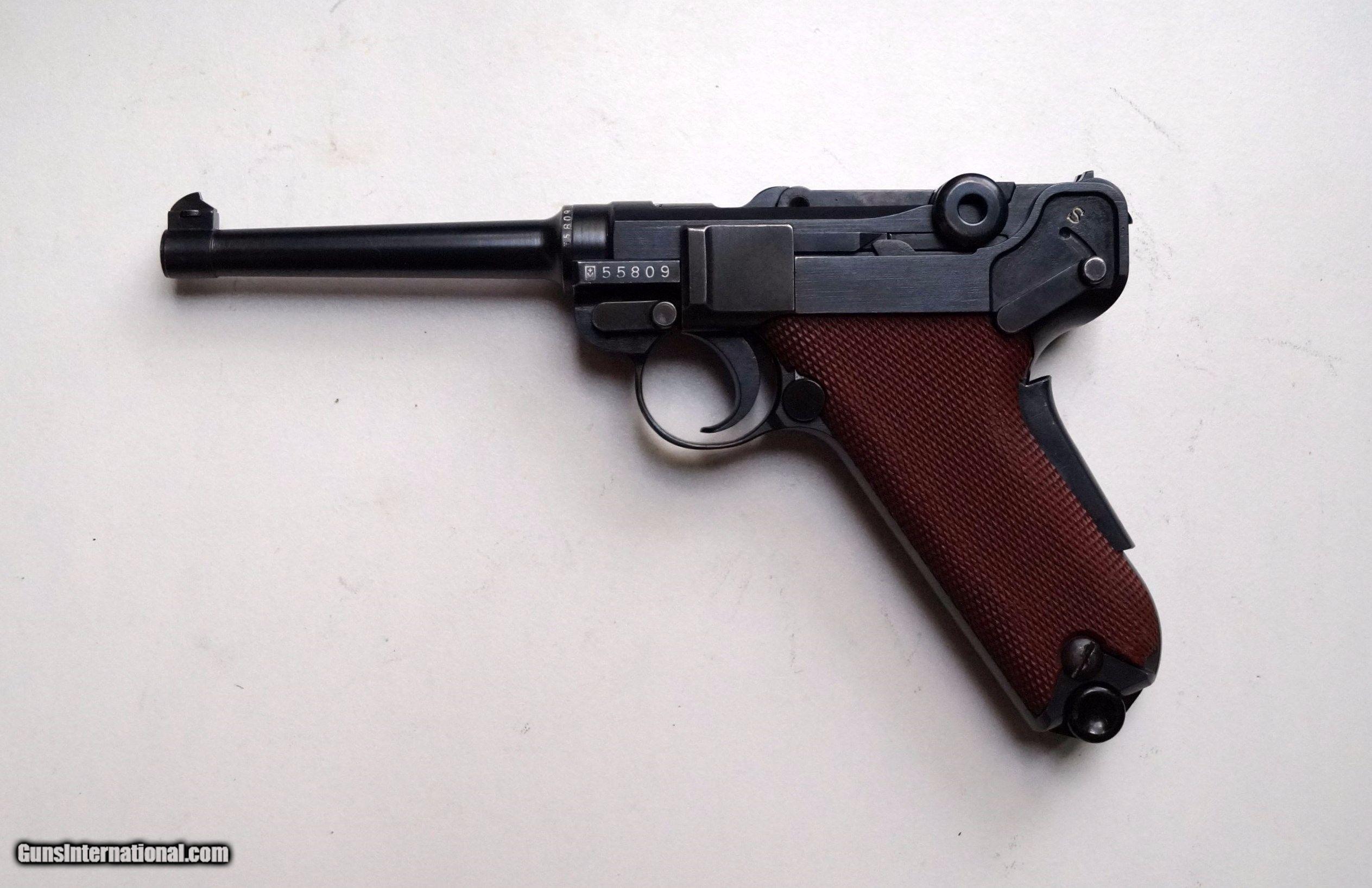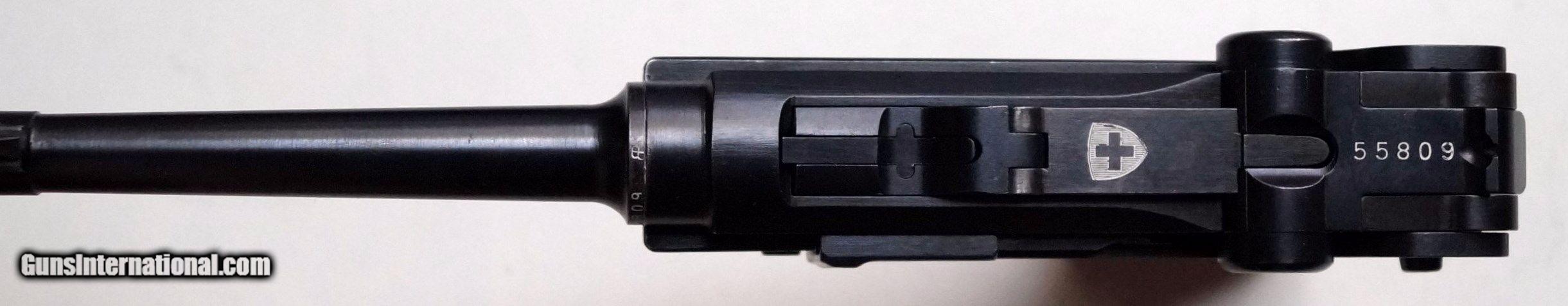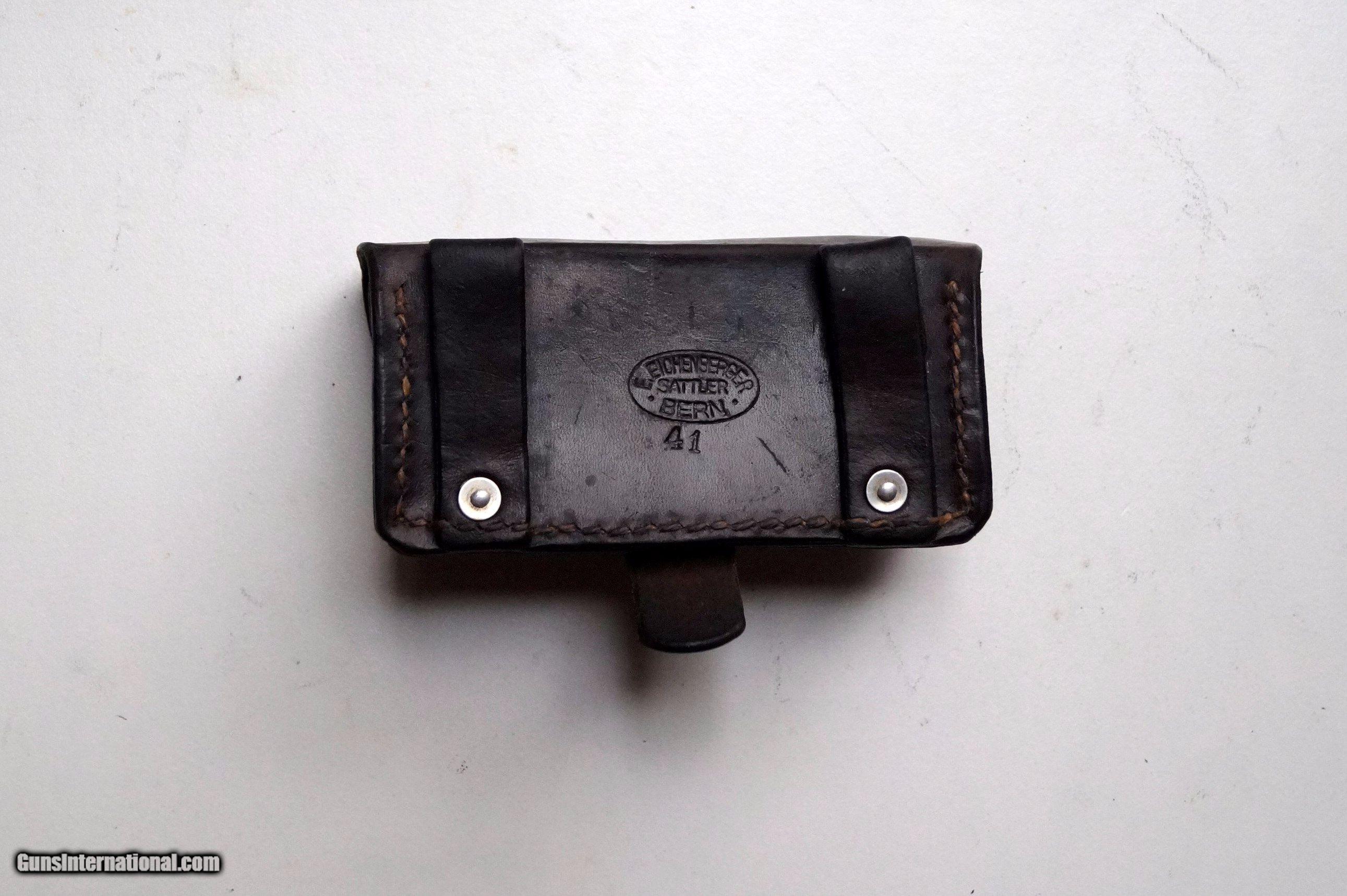 Description: THIS IS A 1929 SWISS BERN MILITARY LUGER RIG, 7.65MM. THE LUGER IS IN VERY GOOD CONDITION. ALL ORIGINAL, NUMBER MATCHING, VERY GOOD BORE AND GRIPS (GRIPS ARE THE RARER RED), MECHANICALLY CORRECT AND TIGHT. THE RIG CONSISTS OF THE LUGER, 2 MAGAZINES, 1 ORIGINAL SWISS HOLSTER WITH CARRY STRAP, AN ORIGINAL SWISS TOOL POUCH THAT CONTAINS LUBRICATING GREASE AND A SWISS BRASS CLEANING TOOL CONTAINER. A VERY NICE COMPLETE 1929 SWISS BERN RIG. SOLD Curio/Relic: Yes |