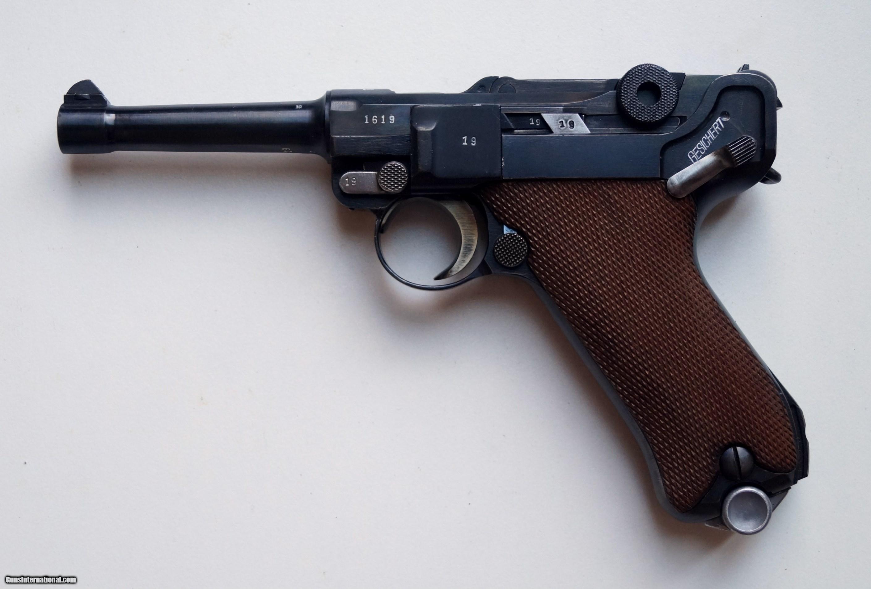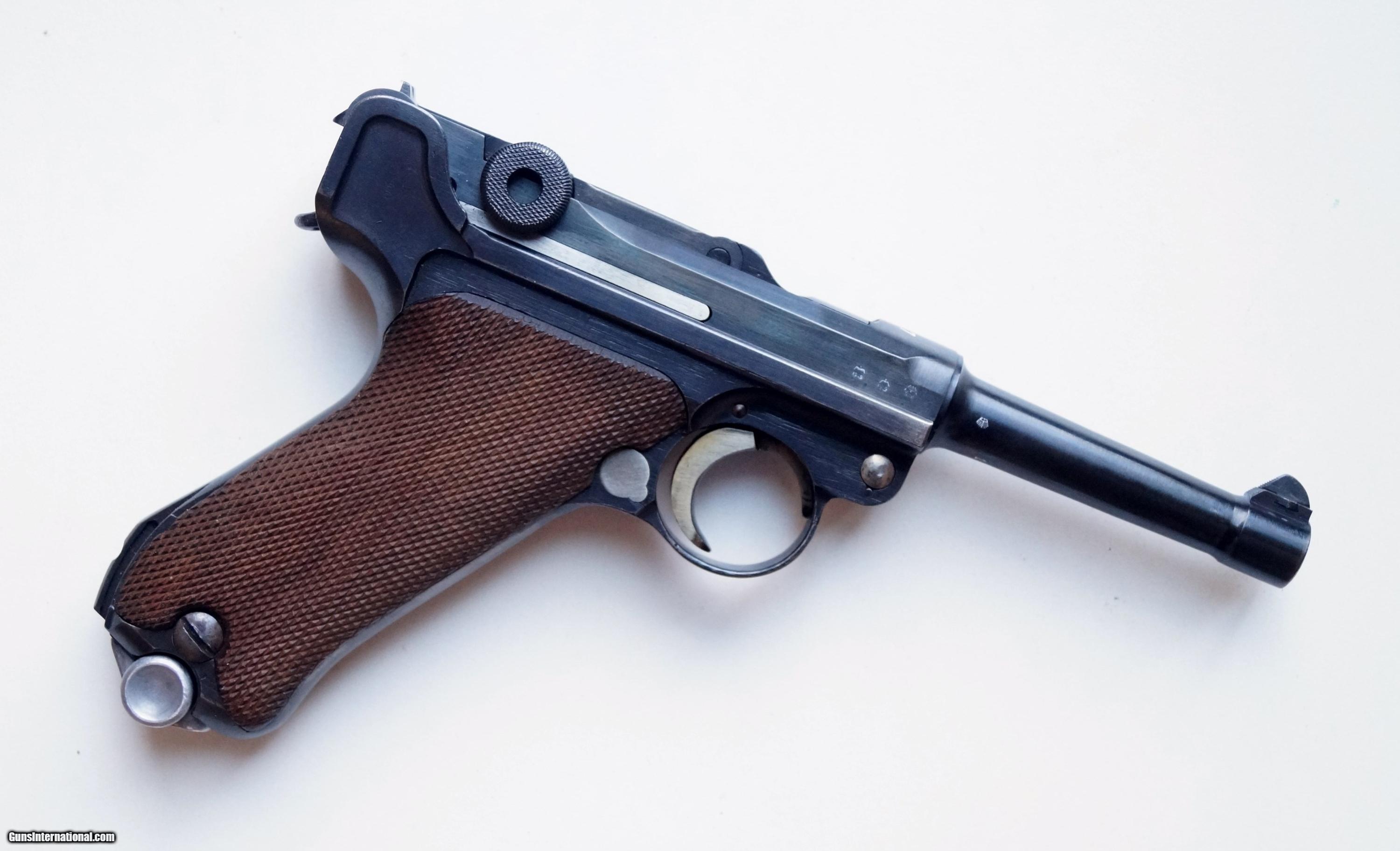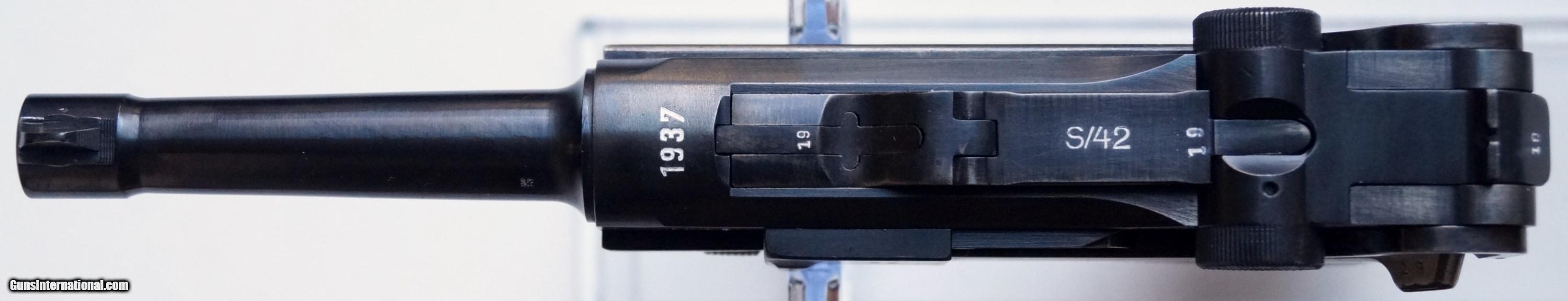 Description: THIS IS A 1937 S/42 (MAUSER) NAZI GERMAN LUGER RIG, 9MM. THE LUGER IS IN VERY GOOD CONDITION, ALL ORIGINAL, NUMBER MATCHING, VERY GOOD BORE AND GRIPS, MECHANICALLY CORRECT AND TIGHT. THE RIG CONSISTS OF THE LUGER, 2 ORIGINAL NAZI MARKED MAGAZINES (BOTH ARE NUMBERED TO THE GUN), 1 ORIGINAL NAZI MARKED HOLSTER AND A LOADING TOOL. A VERY NICE WWII NAZI GERMAN LUGER RIG. SOLD Curio/Relic: Yes |