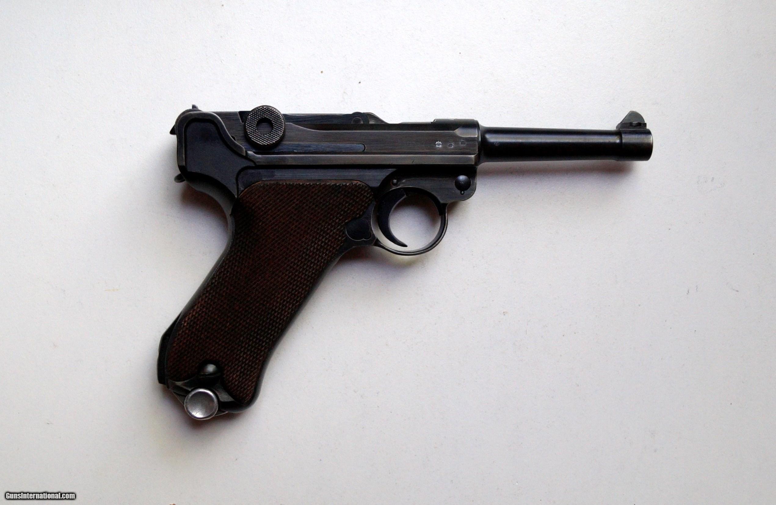 Description: THIS IS A 1937 S/42 (MAUSER) NAZI GERMAN LUGER RIG, 9MM. THE LUGER IS IN VERY GOOD CONDITION, NUMBER MATCHING, VERY GOOD BORE AND GRIPS, MECHANICALLY CORRECT AND TIGHT. THE RIG CONSISTS OF THE LUGER, 2 ORIGINIAL NAZI MARKED MAGAZINES (BOTH ARE NUMBERED TO THE GUN), 1 ORIGINAL NAZI MARKED HOLSTER AND I ORIGINAL NAZI MARKED LOADING TOOL. A VERY NICE WWII NAZI GERMAN LUGER RIG. SOLD Curio/Relic: Yes |