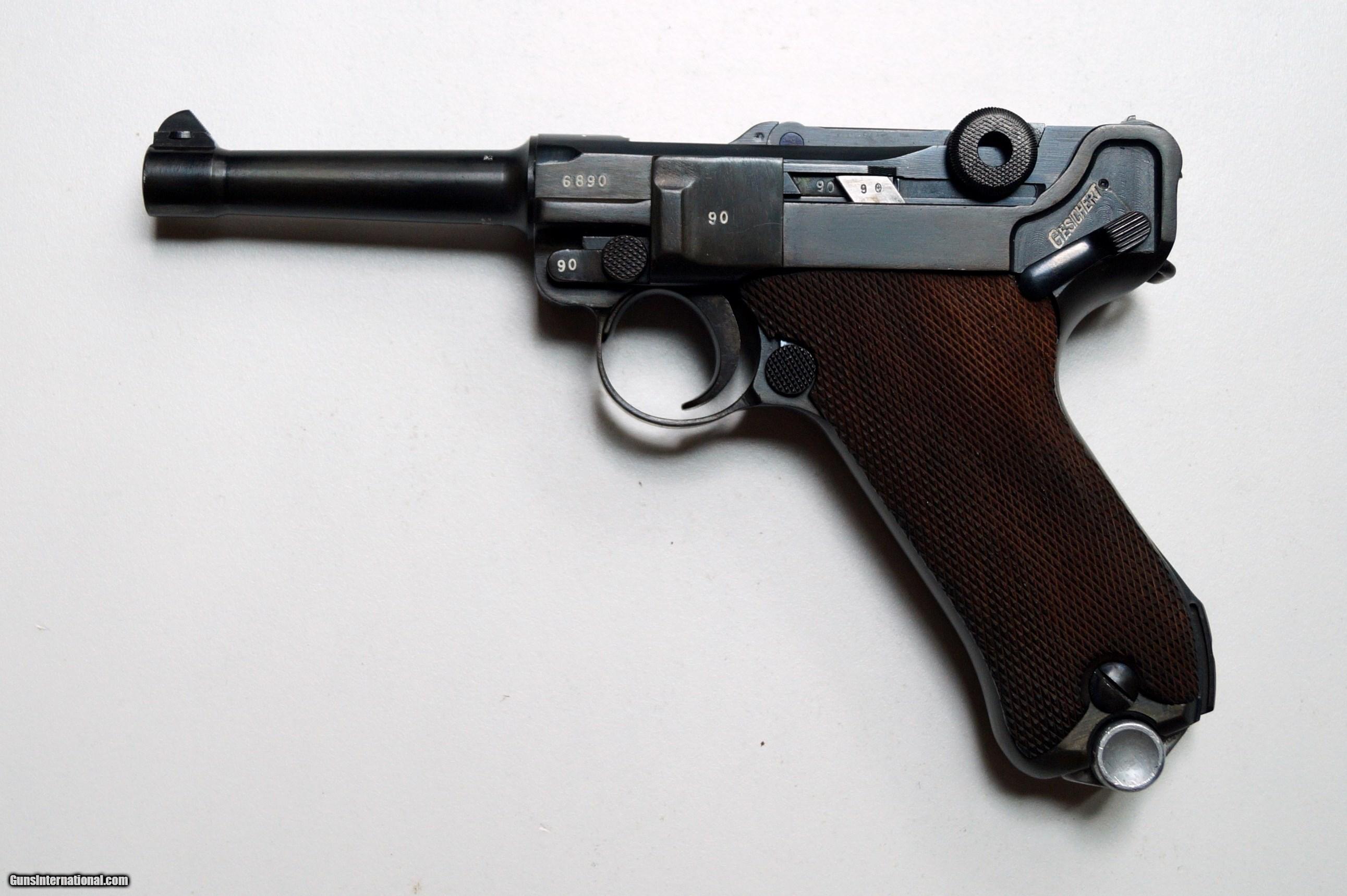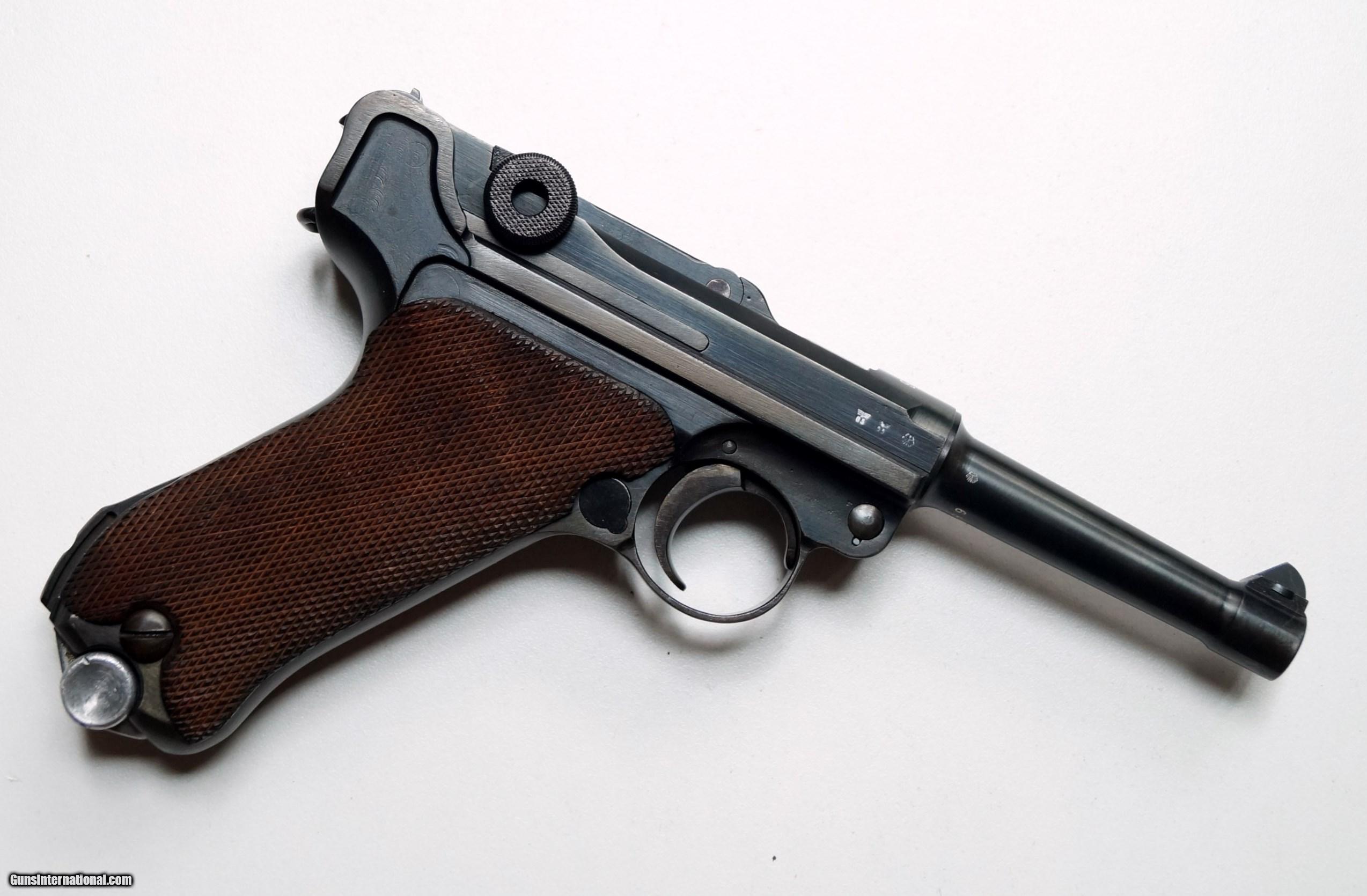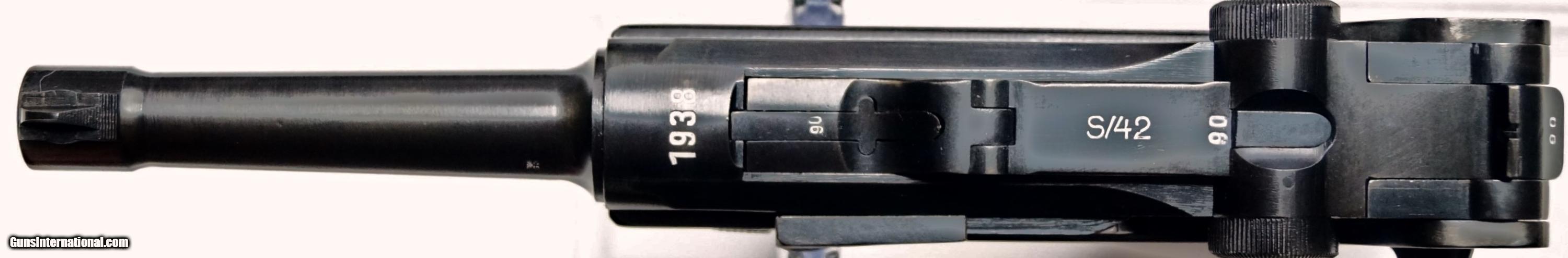 Description: THIS IS A 1938 S/42 (MAUSER) NAZI GERMAN LUGER RIG, 9MM. THE LUGER IS IN VERY GOOD CONDITION, ALL ORIGINAL, NUMBER MATCHING, VERY GOOD BORE AND GRIPS (ARE NUMBERED TO THE GUN), MECHANICALLY CORRECT AND TIGHT. THE RIG CONSISTS OF THE LUGER, 2 ORIGINAL NAZI MARKED MAGAZINES (BOTH ARE NUMBERED TO THE GUN), I ORIGINAL NAZI MARKED HOLSTER AND 1 NAZI MARKED LOADING TOOL. A VERY NICE ALL ORIGINAL WWII NAZI GERMAN LUGER RIG. SOLD Curio/Relic: Yes |