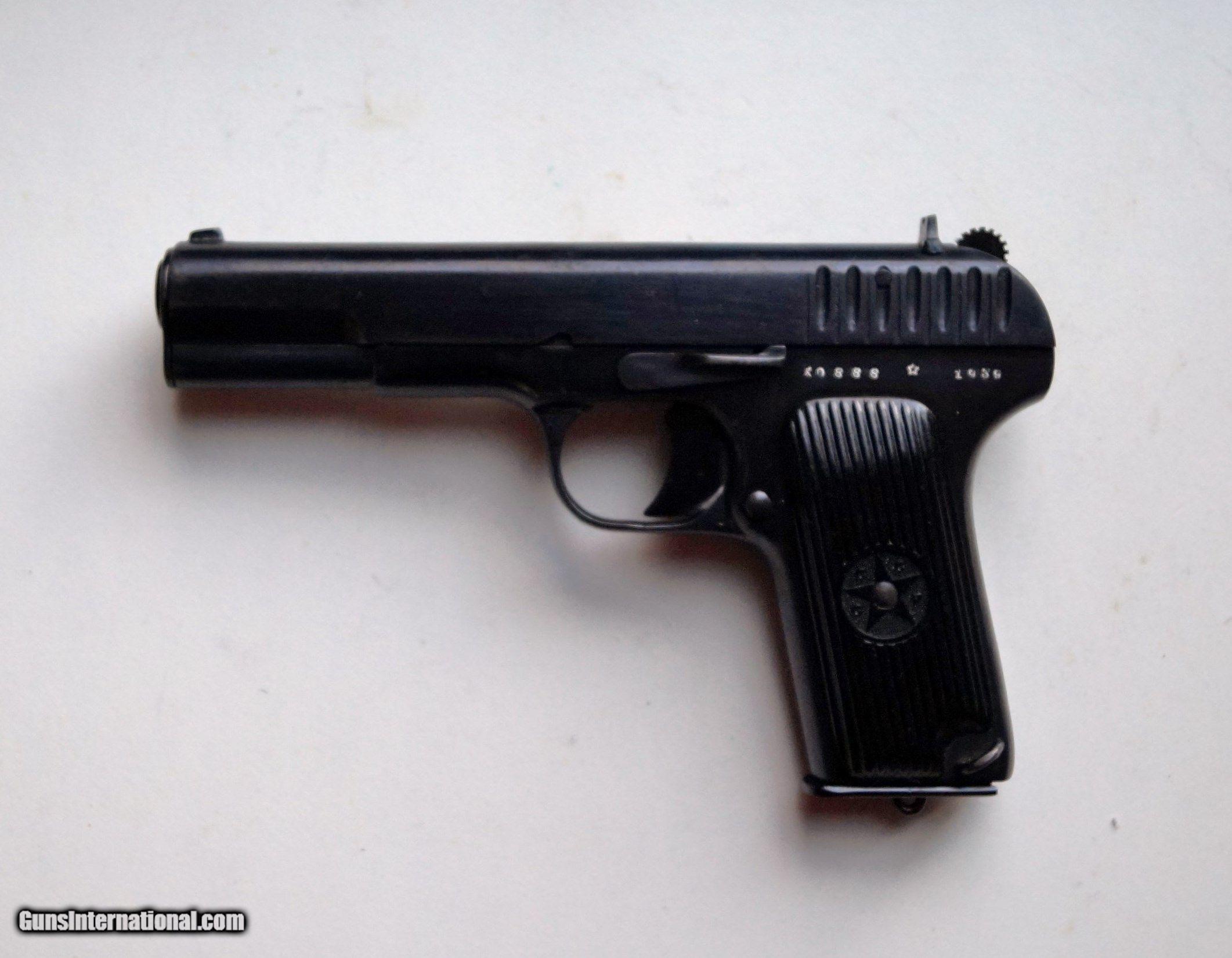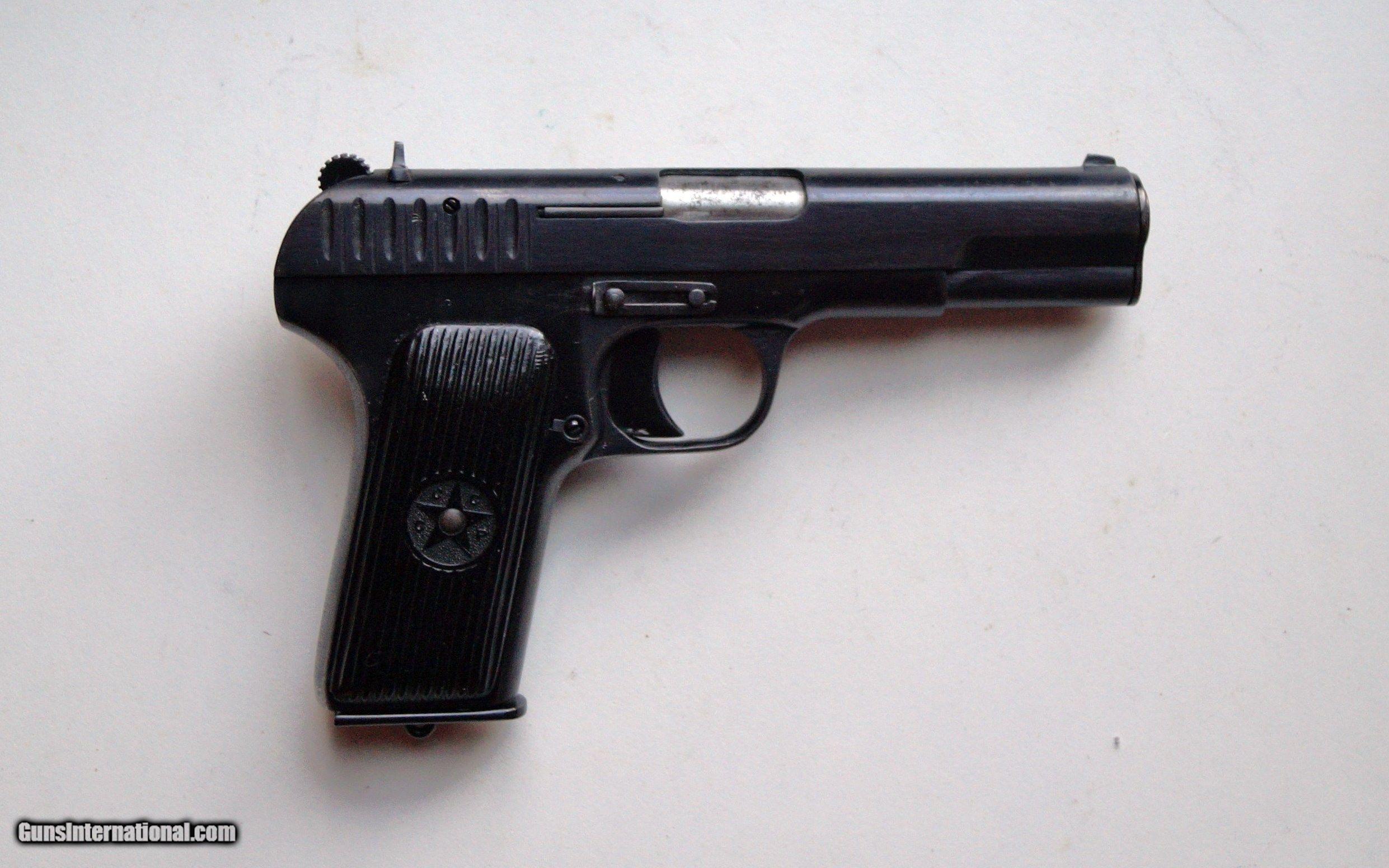 Description: THIS IS A RUSSIAN TOKAREV MODEL TT33 RIG, 7.62 X 25MM. THE PISTOL IS IN VERY GOOD CONDITION. NUMBER MATCHING, VERY GOOD BORE AND GRIPS, MECHANICALLY CORRECT AND TIGHT. THE RIG CONSISTS OF THE PISTOL, 2 ORIGINAL NUMBERED TO THE GUN MAGAZINES, 1 ORIGINAL RUSSIAN TOKAREV HOLSTER IN VERY GOOD CONDITION AND 1 ORIGINAL CLEANING TOOL. A VERY NICE RARE RUSSIAN TOKAREV TT33 RIG. NOTE: THE PISTOL COMES WITH AN ORIGINAL RUSSIAN MEDAL. SOLD Curio/Relic: Yes |