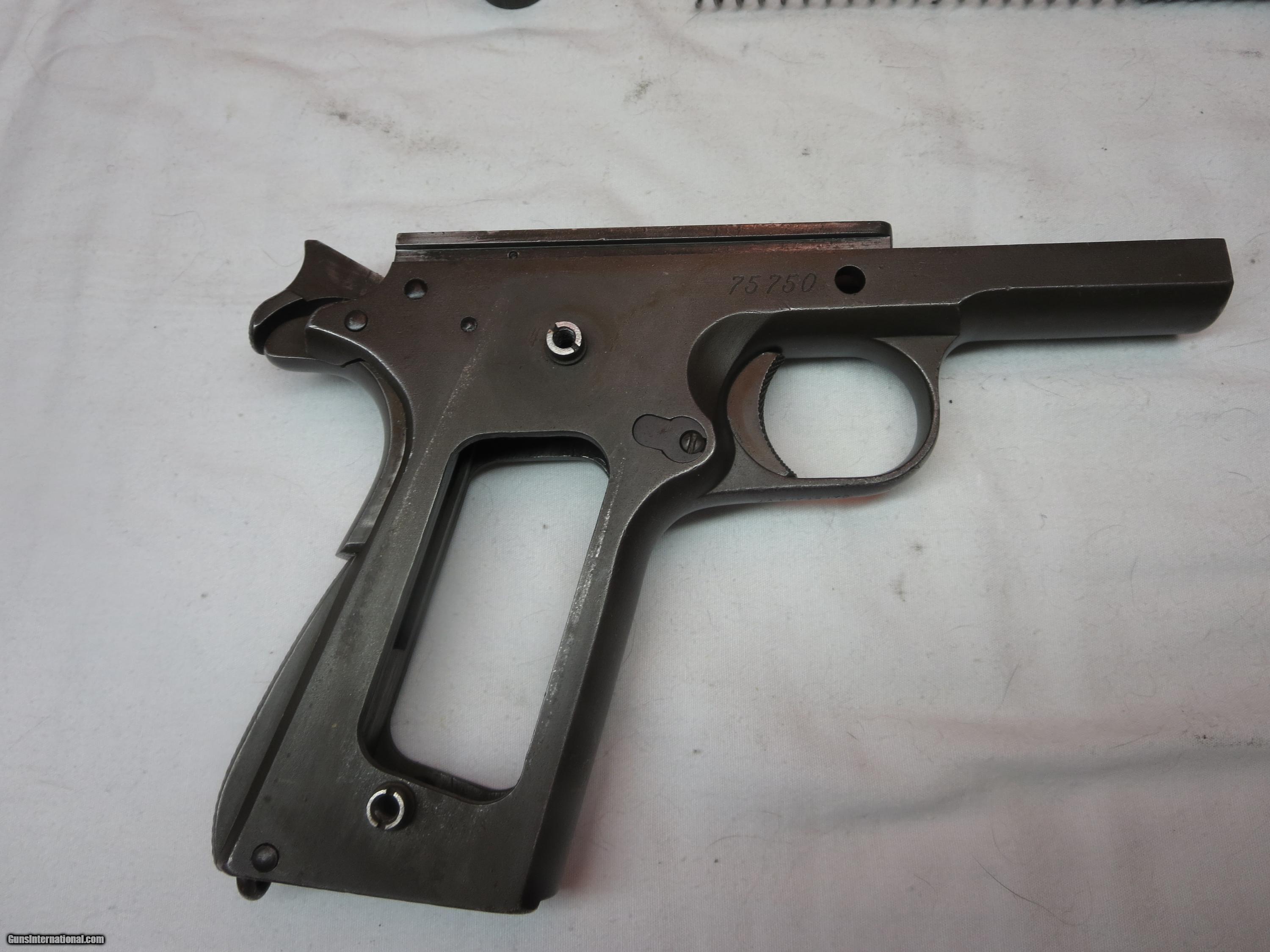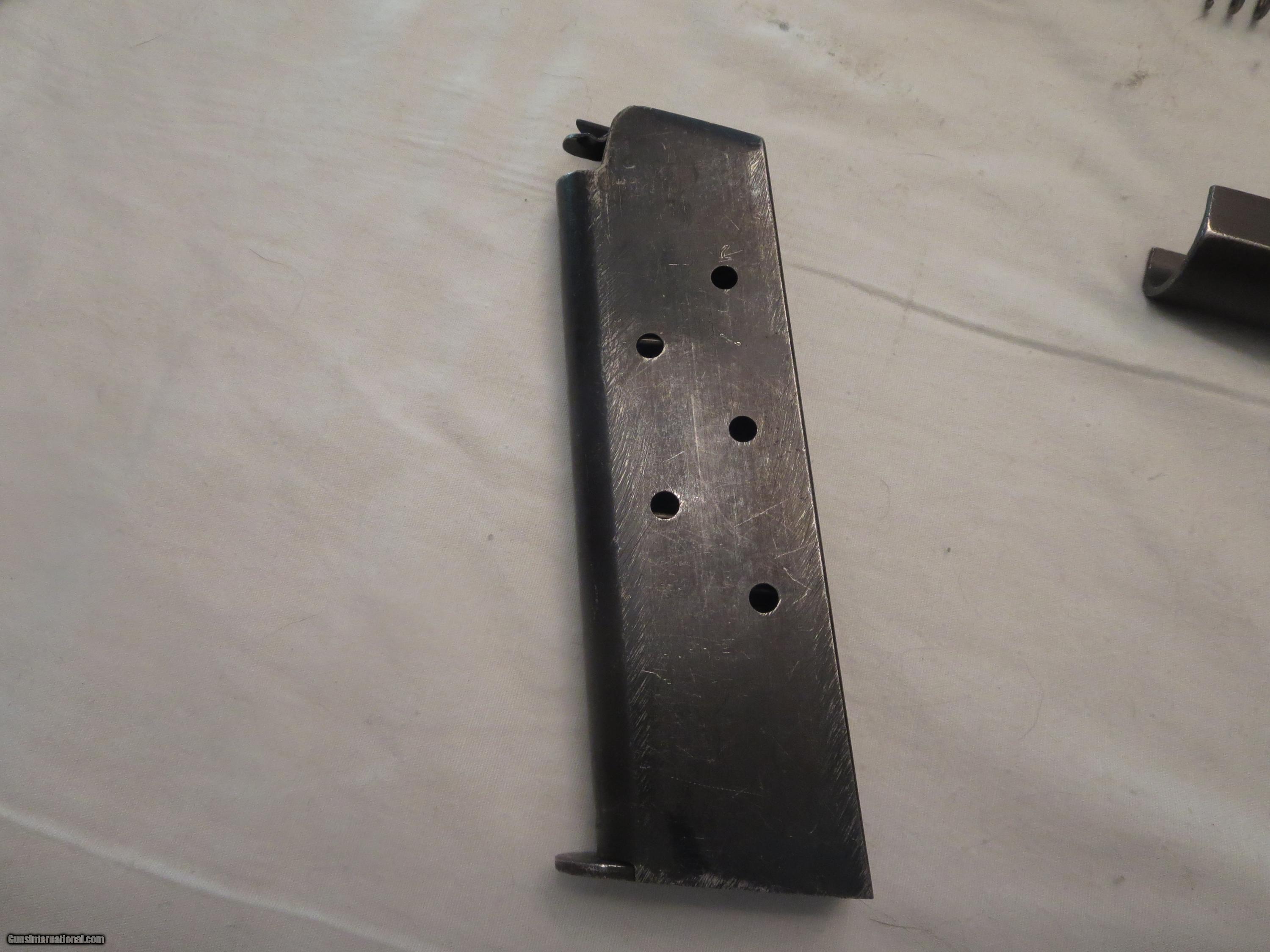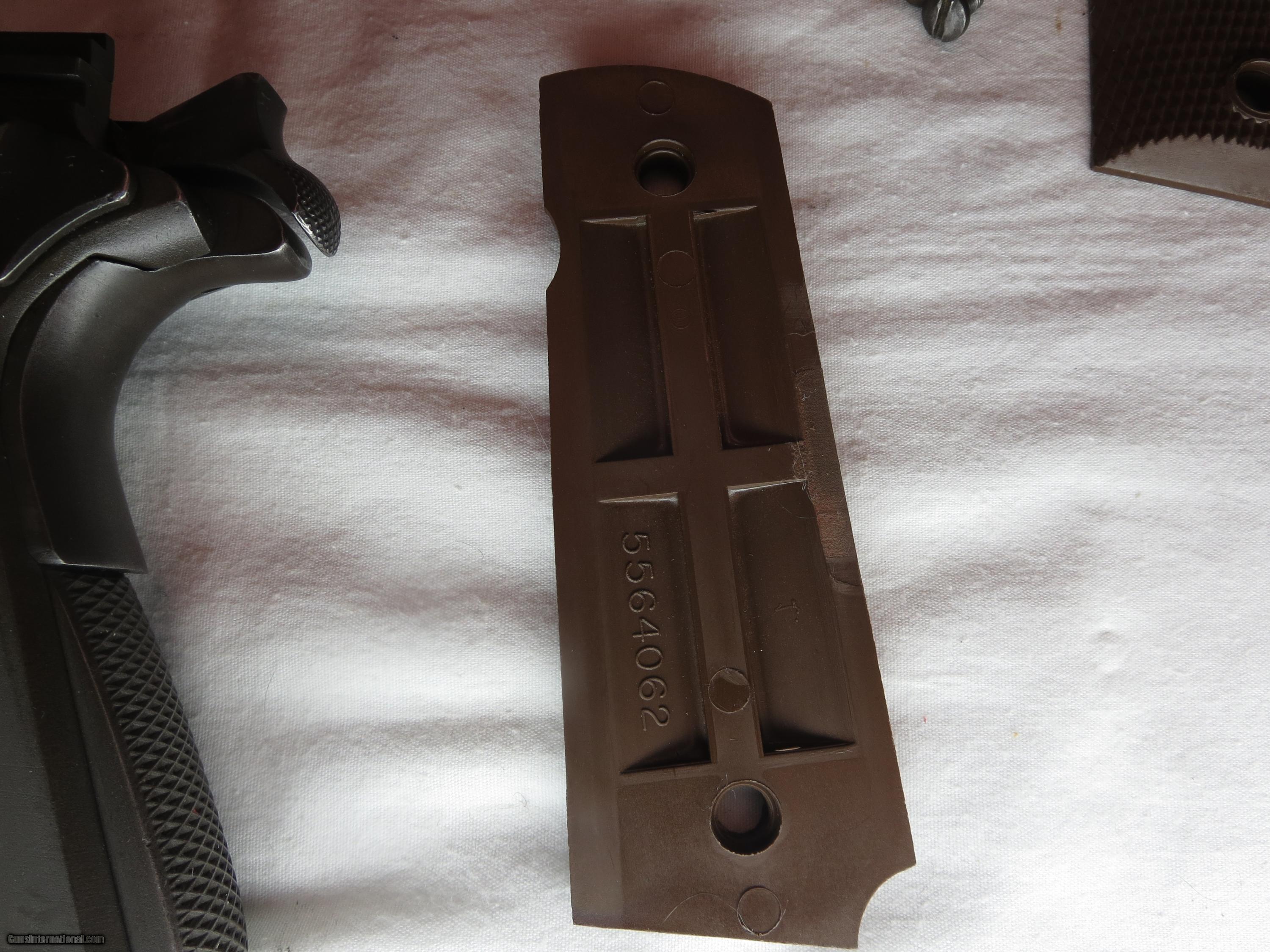 Description: SALE PENDING: For Sale or Layaway: Colt Argentine Sistema Model 1927 M1911A1 Semi-Auto Pistol. Argentina produced a licensed copy, the Colt Model 1927, from 1945 to 1966. This is a 1952 Army crested pistol with matching numbers on the frame, slide and barrel. The magazine is a WWII replacement unit. The grips are after-market WWII Keyes replacements. The barrel is shiny with sharp rifling. For a 75 yr old pistol, it is in very good condition. Its original black oxide finish has been removed via an arsenal rebuild during its life and replaced with typical military parkerization. I have test fired this pistol and it functions perfectly. This is an excellent example of Colt's iconic M1911A1 design at a very affordable price. It would make a perfect collector's piece, a high powered carry weapon and/or a very reliable shooter. Please contact me for any additional information or photos. Very simple layaway plans are available with copies to email upon request. SOLD Manufacturer: Argentine F.M.A.P Model: Sistema Modelo 1927 Serial Number: 75750 Caliber Info: 45 ACP Condition: Great Metal Condition: Great Bore Condition: Excellent Sights: Factory Manufacture Date: 1952 Item Location: West Virginia |