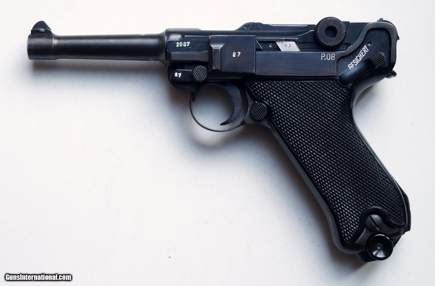 Description: THIS IS A 41 BYF (MAUSER) BLACK WIDOW RIG, 9MM. THE LUGER IS IN VERY GOOD CONDITION, ALL ORIGINAL, NUMBER MATCHING (INCLUDING ONE OF THE MAGAZINES), VERY GOOD BORE AND GRIPS, MECHANICALLLY CORRECT AND TIGHT. THE RIG CONSISTS OF THE LUGER, 2 NAZI MARKED FXO MAGAZINES, 1 ORIGINAL NAZI MARKED 1941 DATED HOLSTER AND A LOADING TOOL . THIS IS A VERY NICE ORIGINAL BLACK WIDOW RIG. SOLD Curio/Relic: Yes |