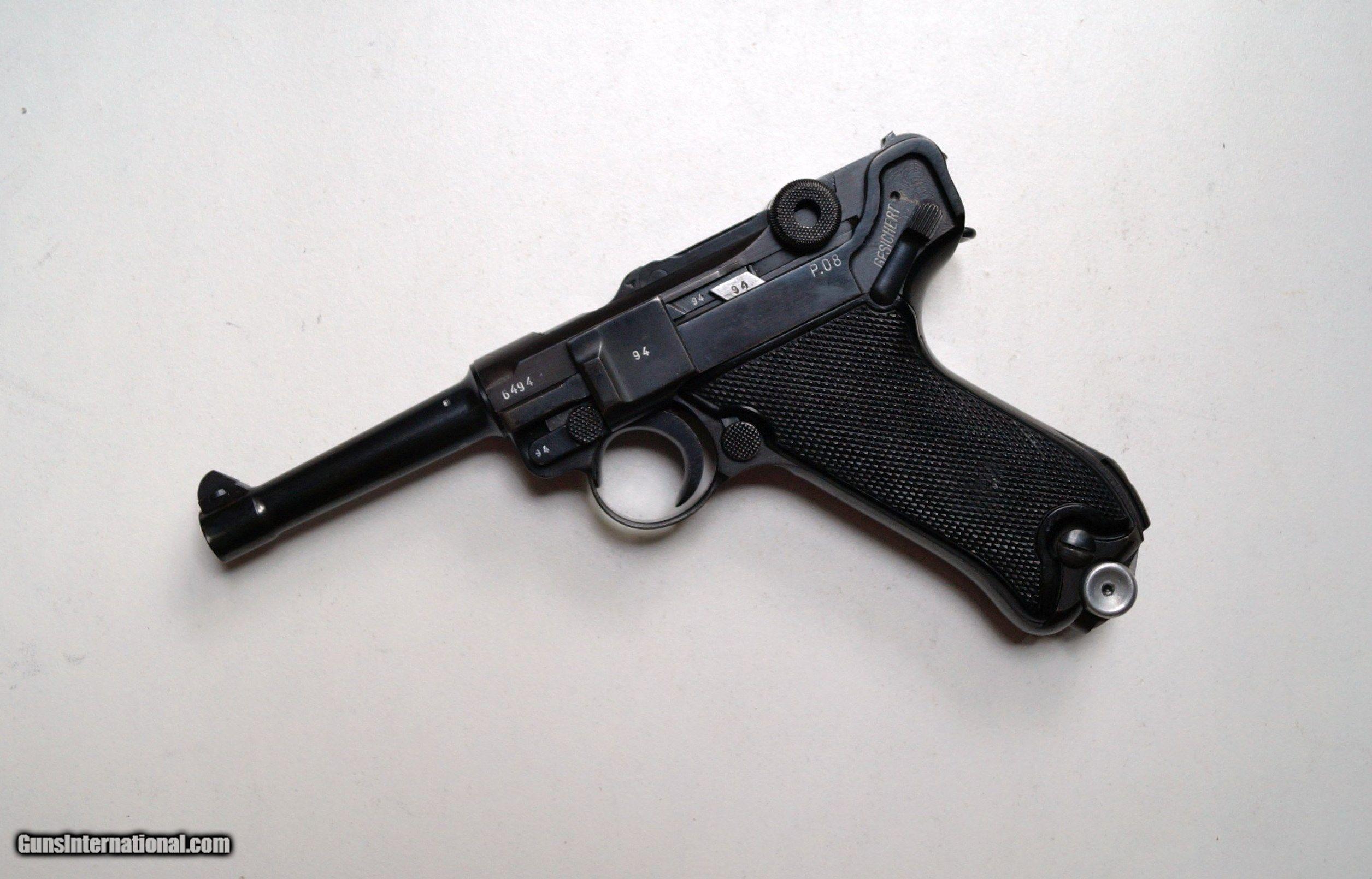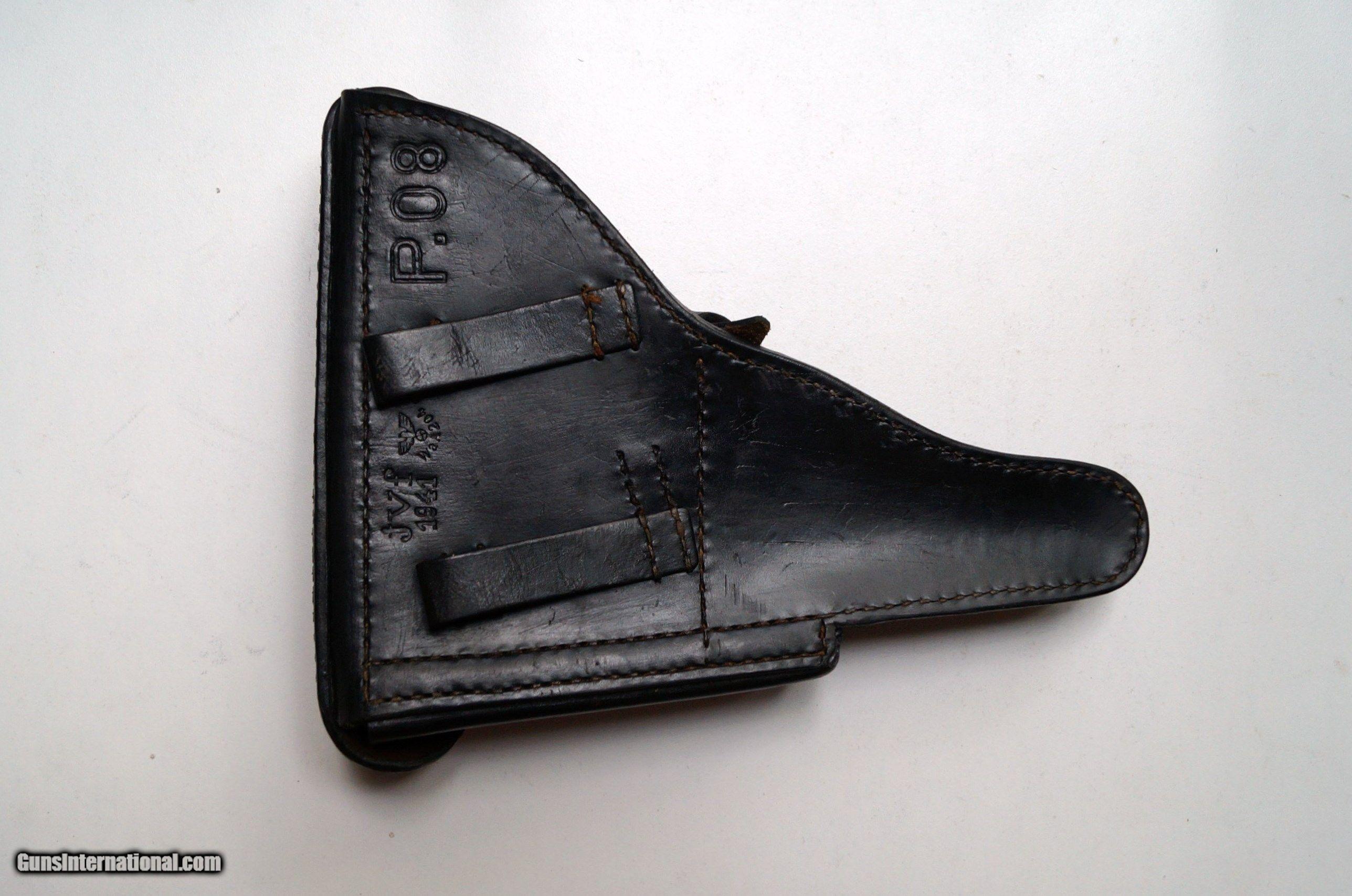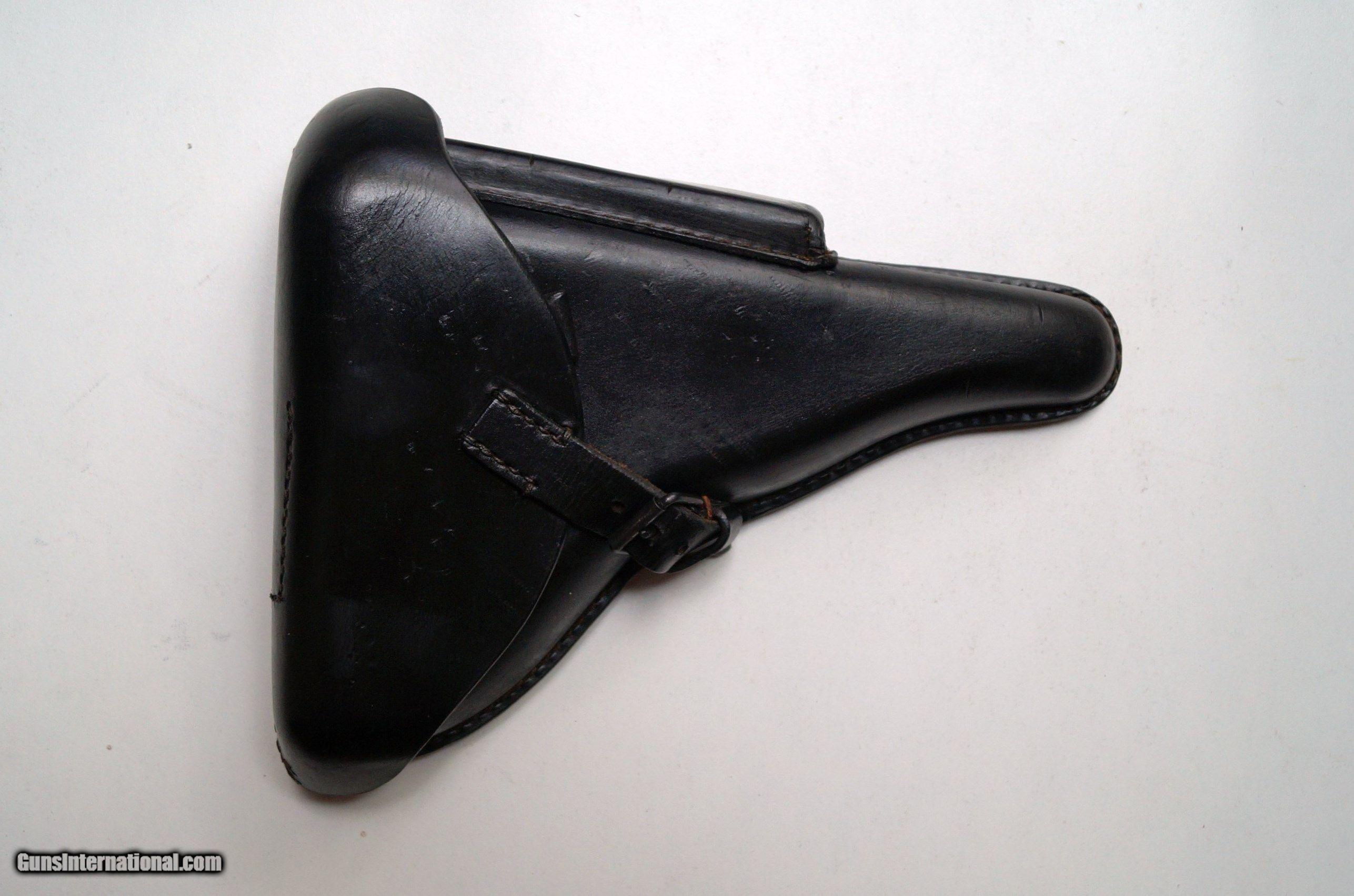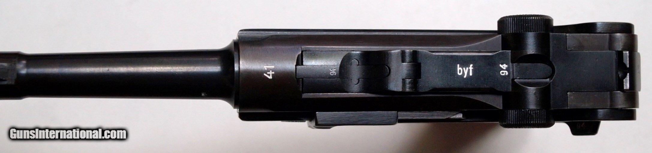 Description: THIS IS A 41 BYF (MAUSER) NAZI BLACK WIDOW GERMAN LUGER RIG, 9MM. THE LUGER IS IN VERY GOOD CONDITION, NUMBER MATCHING, VERY GOOD BORE AND GRIPS, MECHANICALLY CORRECT AND TIGHT, THE RIG CONSISTS OF THE LUGER, 2 ORIGINAL NAZI FXO MAGAZINES BOTH ARE NUMBERED TO THE GUN, 1 NAZI MARKED HOLSTER AND 1 NAZI MARKED LOADING TOOL. A VERY NICE WWII NAZI BLACK WIDOW RIG. NOTE: THIS IS AN EARLY 41 BYF. THIS CAN BE DISTINGUISHED BY THE 2 NUMBERED TO THE GUN MAGAZINES. DURING 1941 AND ALL OF 1942 THE MAGAZINES HAD BLACK BAKELITE BOTTOMS. NUMBERED BLACK WIDOW MAGAZINES ARE VERY RARE. SOLD Curio/Relic: Yes |