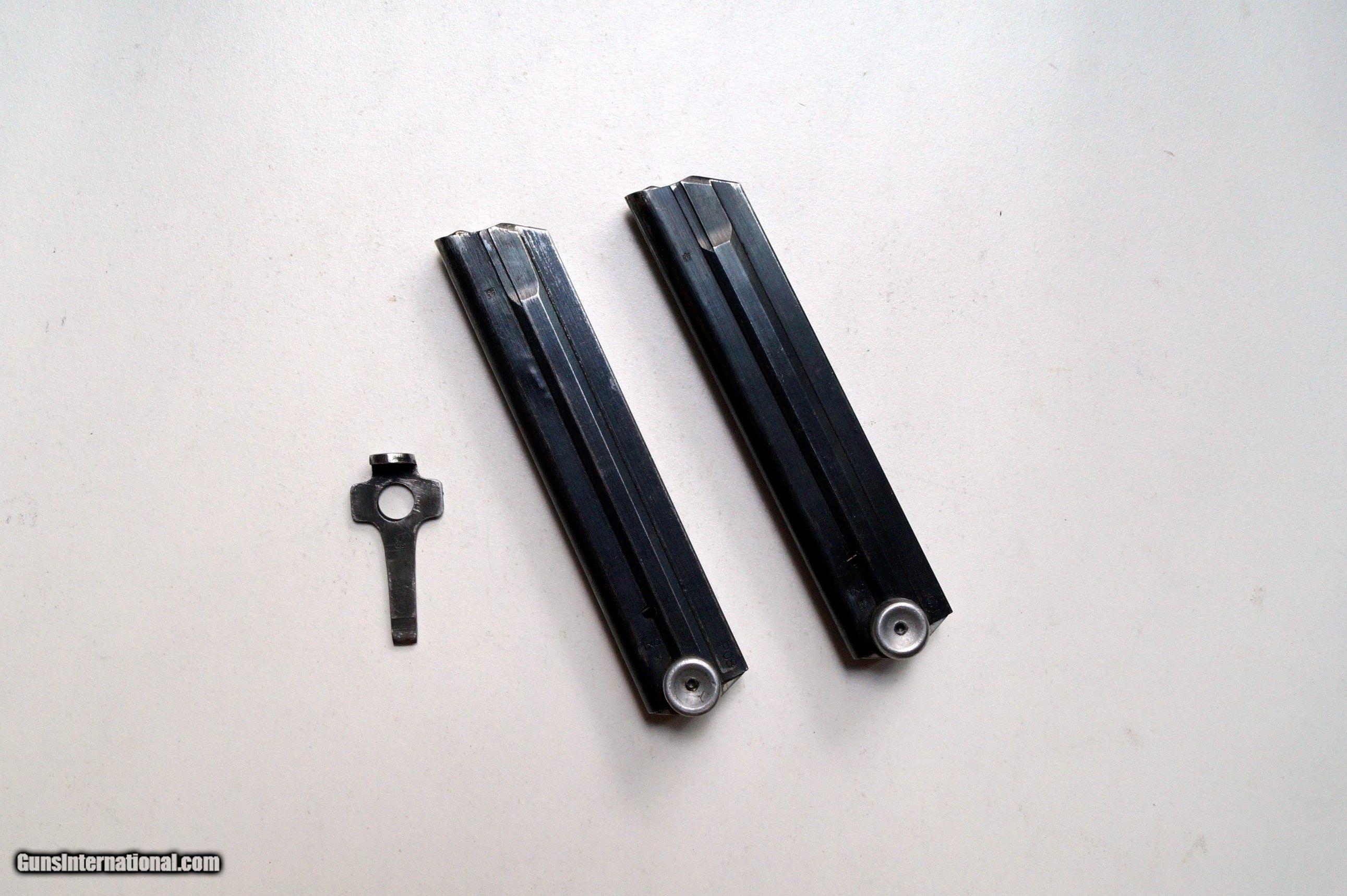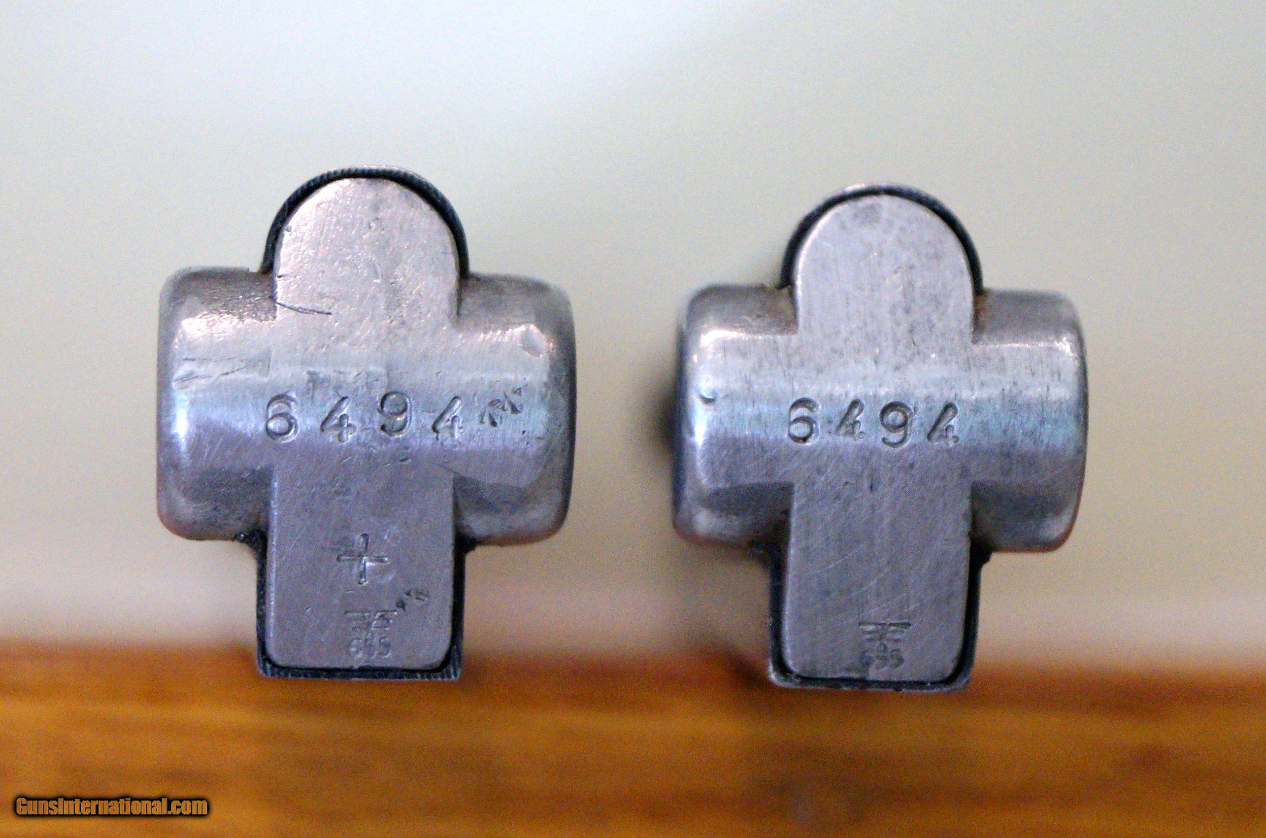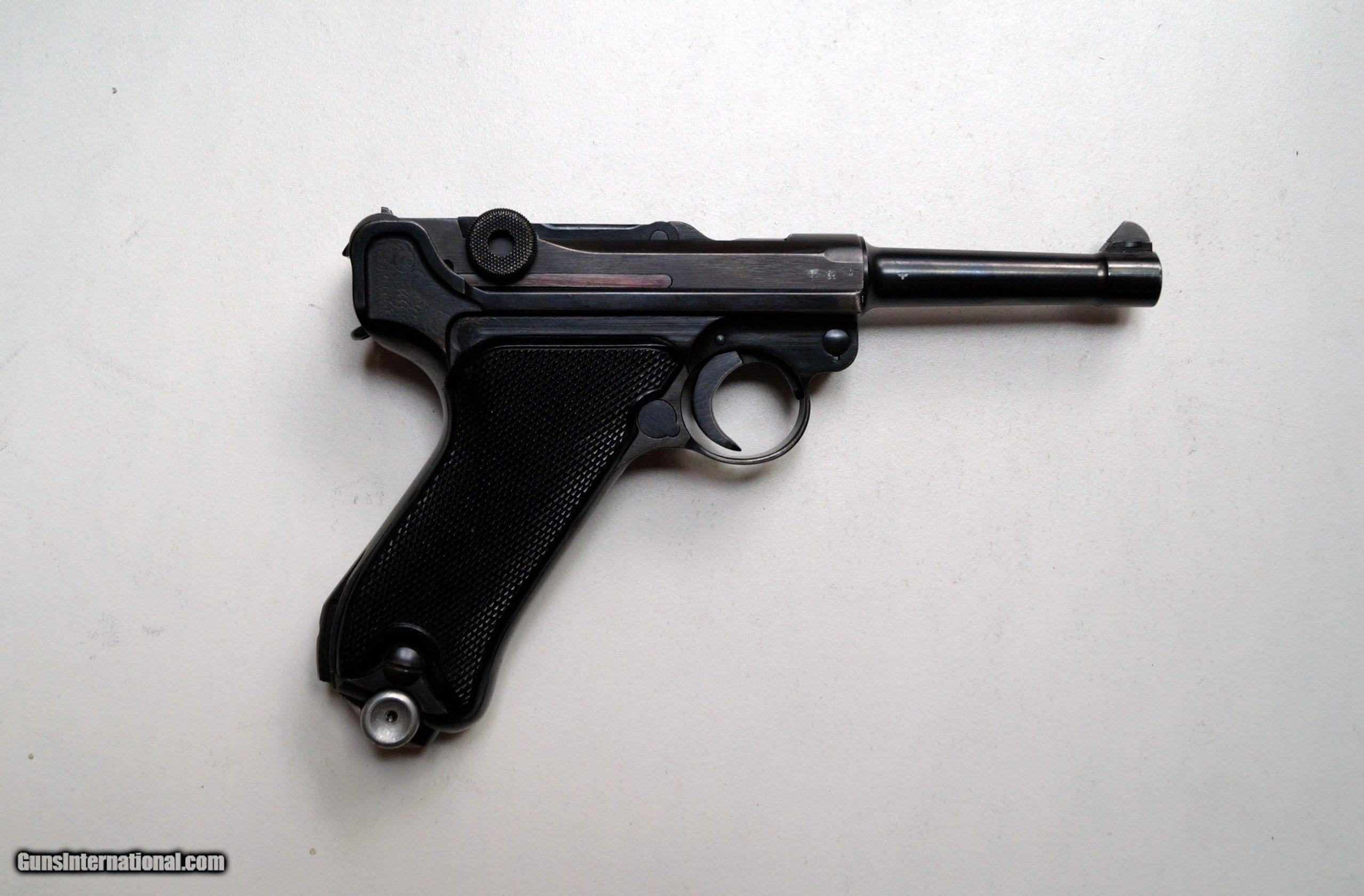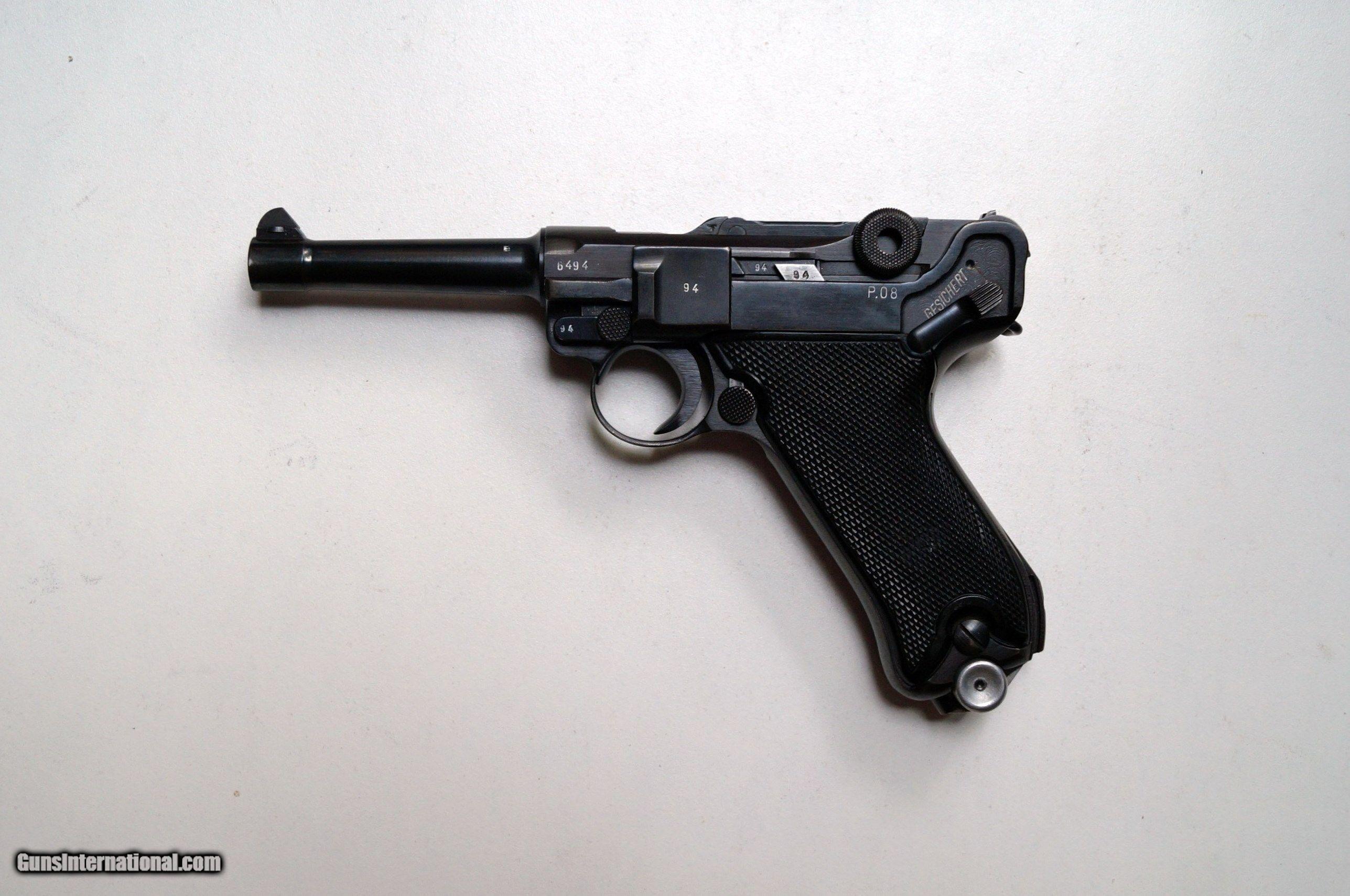 Description: THIS IS A 41 BYF (MAUSER) NAZI BLACK WIDOW GERMAN LUGER RIG, 9MM. THE LUGER IS IN VERY GOOD CONDITION, NUMBER MATCHING, VERY GOOD BORE AND GRIPS, MECHANICALLY CORRECT AND TIGHT, THE RIG CONSISTS OF THE LUGER, 2 ORIGINAL NAZI FXO MAGAZINES BOTH ARE NUMBERED TO THE GUN, 1 NAZI MARKED HOLSTER AND 1 NAZI MARKED LOADING TOOL. A VERY NICE WWII NAZI BLACK WIDOW RIG. NOTE: THIS IS AN EARLY 41 BYF. THIS CAN BE DISTINGUISHED BY THE 2 NUMBERED TO THE GUN MAGAZINES. DURING 1941 AND ALL OF 1942 THE MAGAZINES HAD BLACK BAKELITE BOTTOMS. NUMBERED BLACK WIDOW MAGAZINES ARE VERY RARE. SOLD Curio/Relic: Yes |
