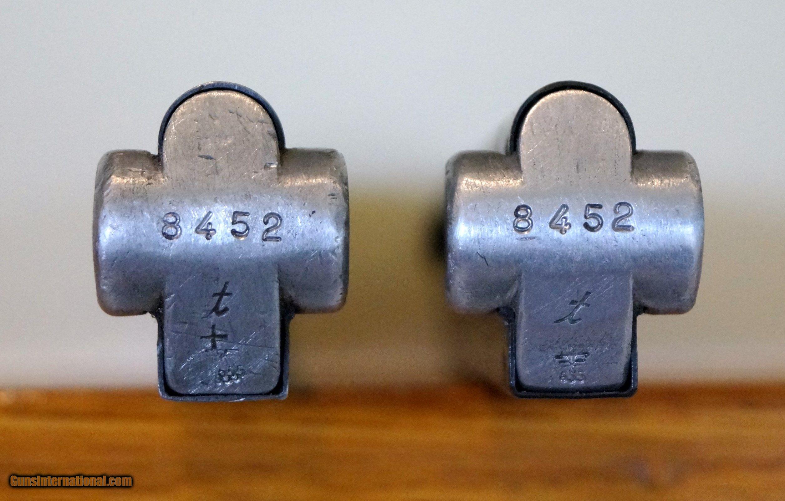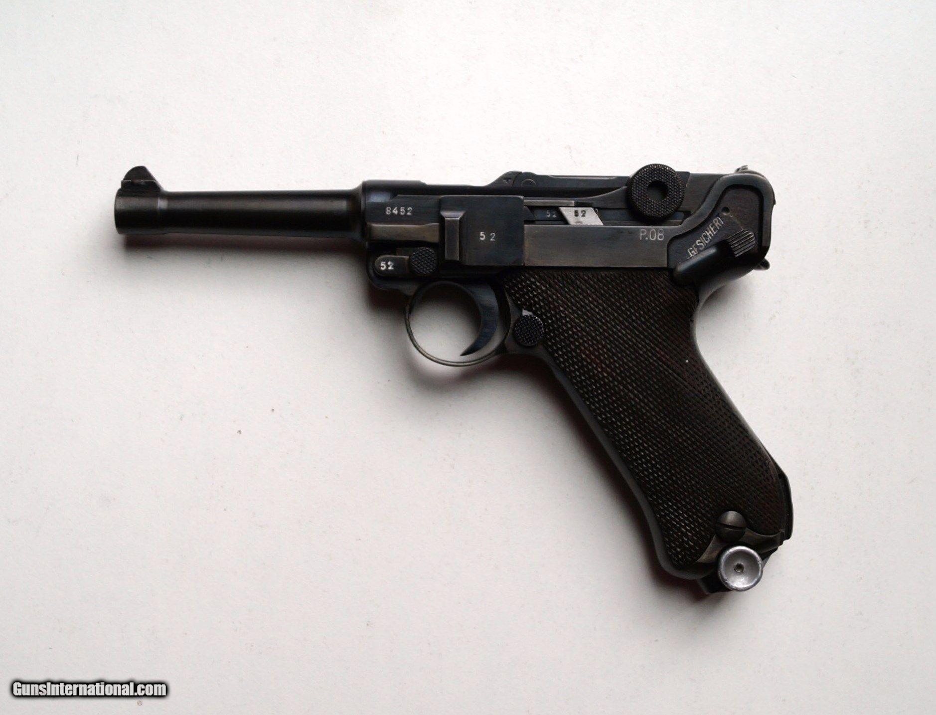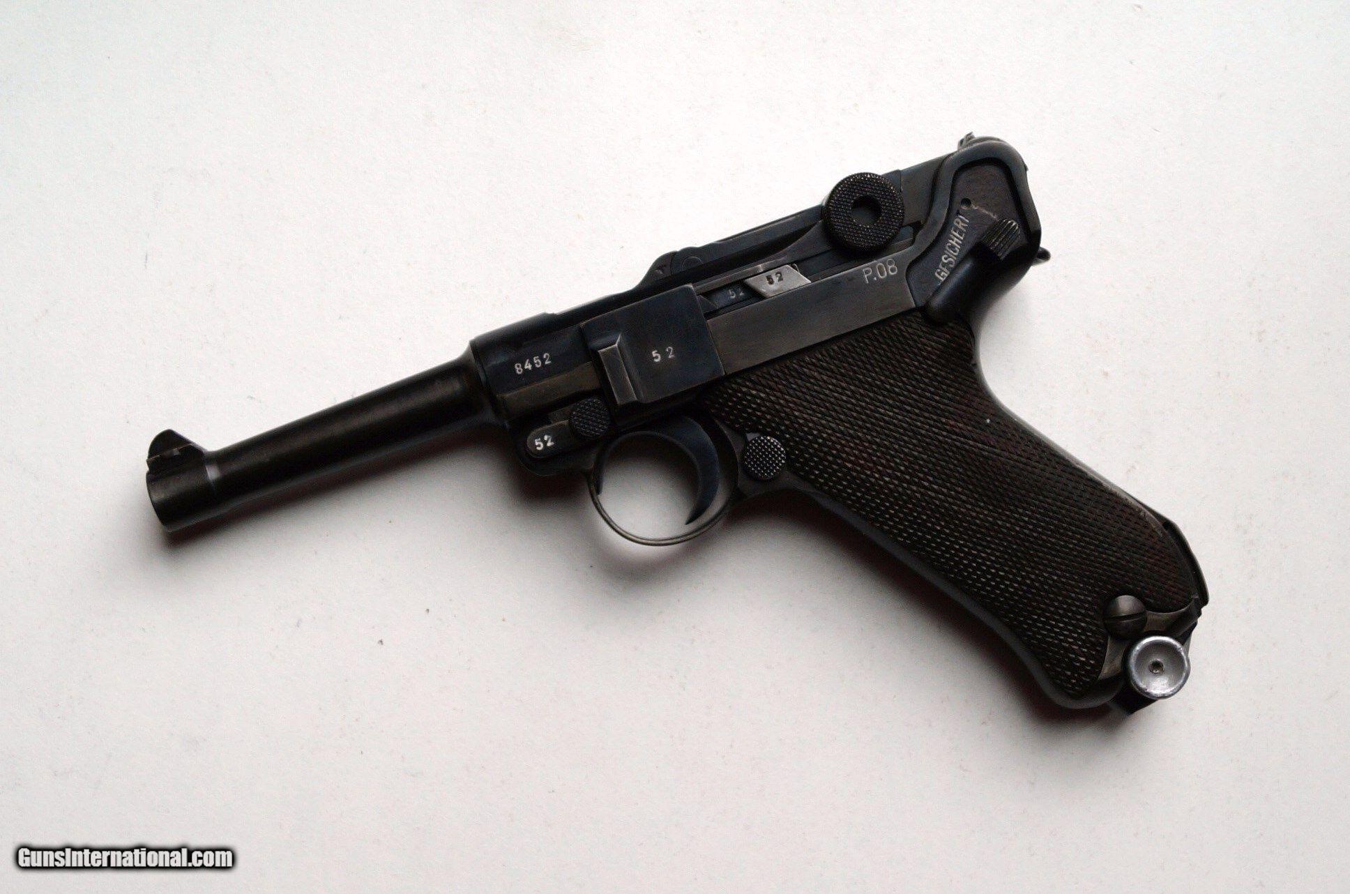 Description: THIS IS A 41 BYF (MAUSER) BLACK WIDOW NAZI GERMAN LUGER RIG, 9MM. THE LUGER IS IN VERY GOOD CONDITON, NUMBER MATCHING (THIS INCLUDES BOTH ORIGINAL MAGAZINES), VERY GOOD BORE AND GRIPS, MECHANICALLY CORRECT AND TIGHT. THE RIG CONSISTS OF THE LUGER, 2 ORIGINAL NAZI FXO MAGAZINES, 1 ORIGINAL 1941 DATED HOLSTER AND 1 ORIGINAL NAZI MARKED LOADING TOOL. A VERY NICE WWII NAZI BLACK WIDOW GERMAN LUGER RIG. NOTE: THE 2 NUMBERED TO THE GUN MAGAZINES ARE A RARITY. THEY CAN ONLY BE FOUND ON VERY EARLY 1941 GERMAN LUGERS. SOLD Curio/Relic: Yes |