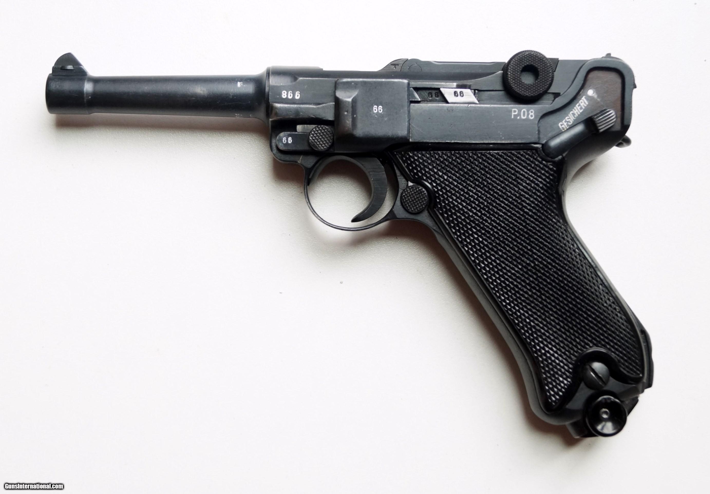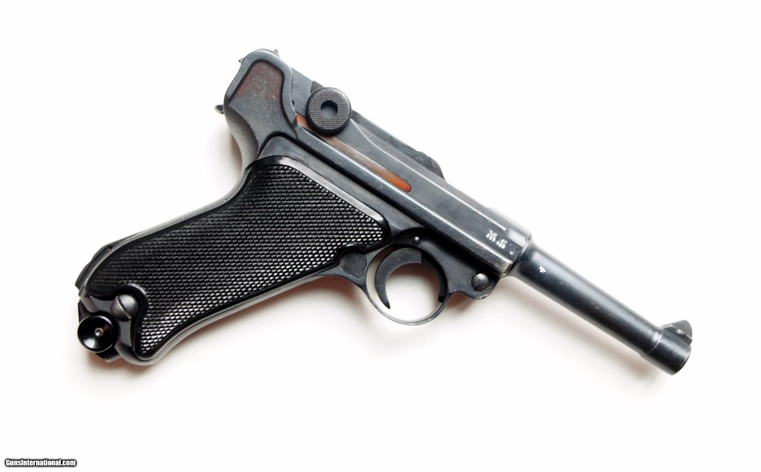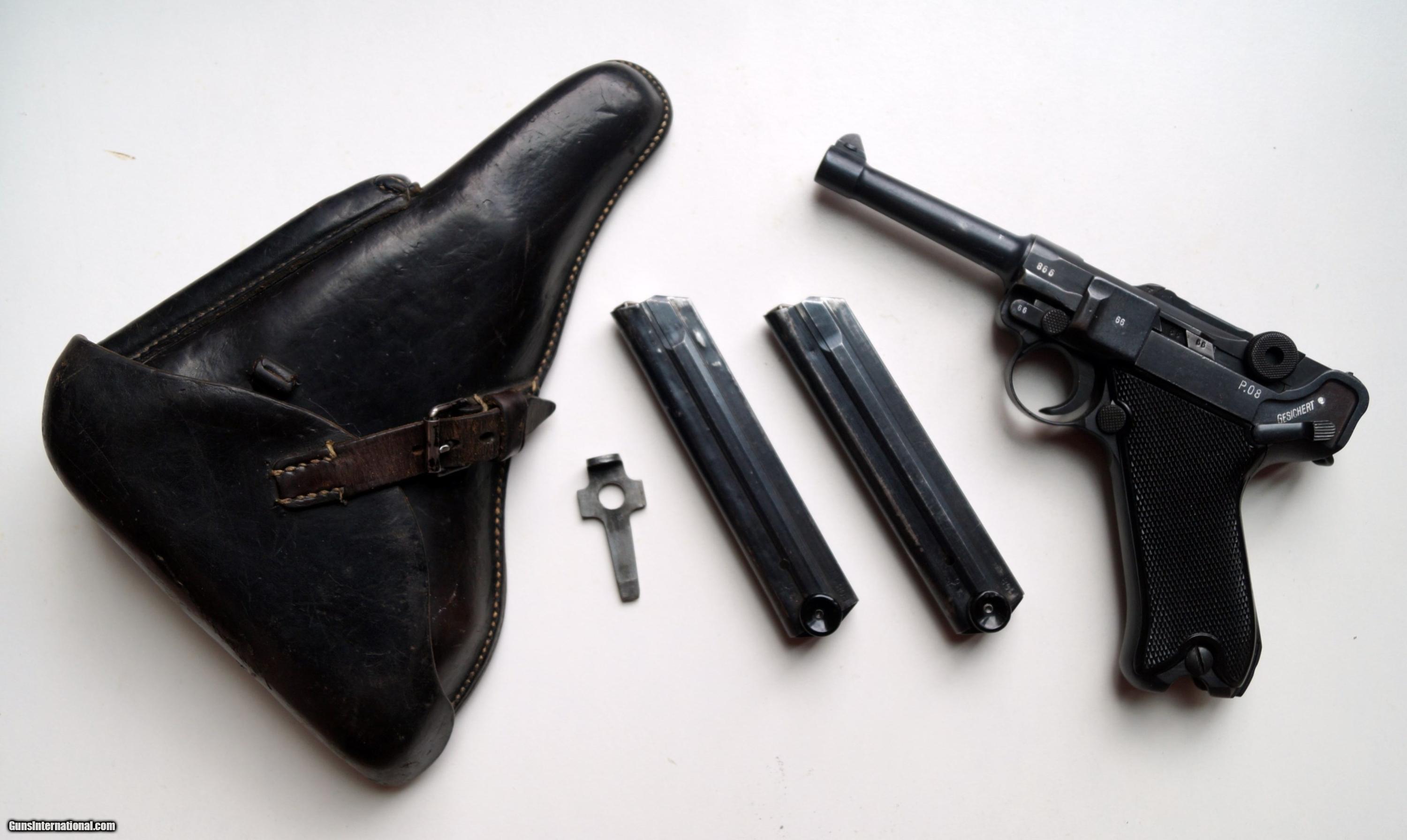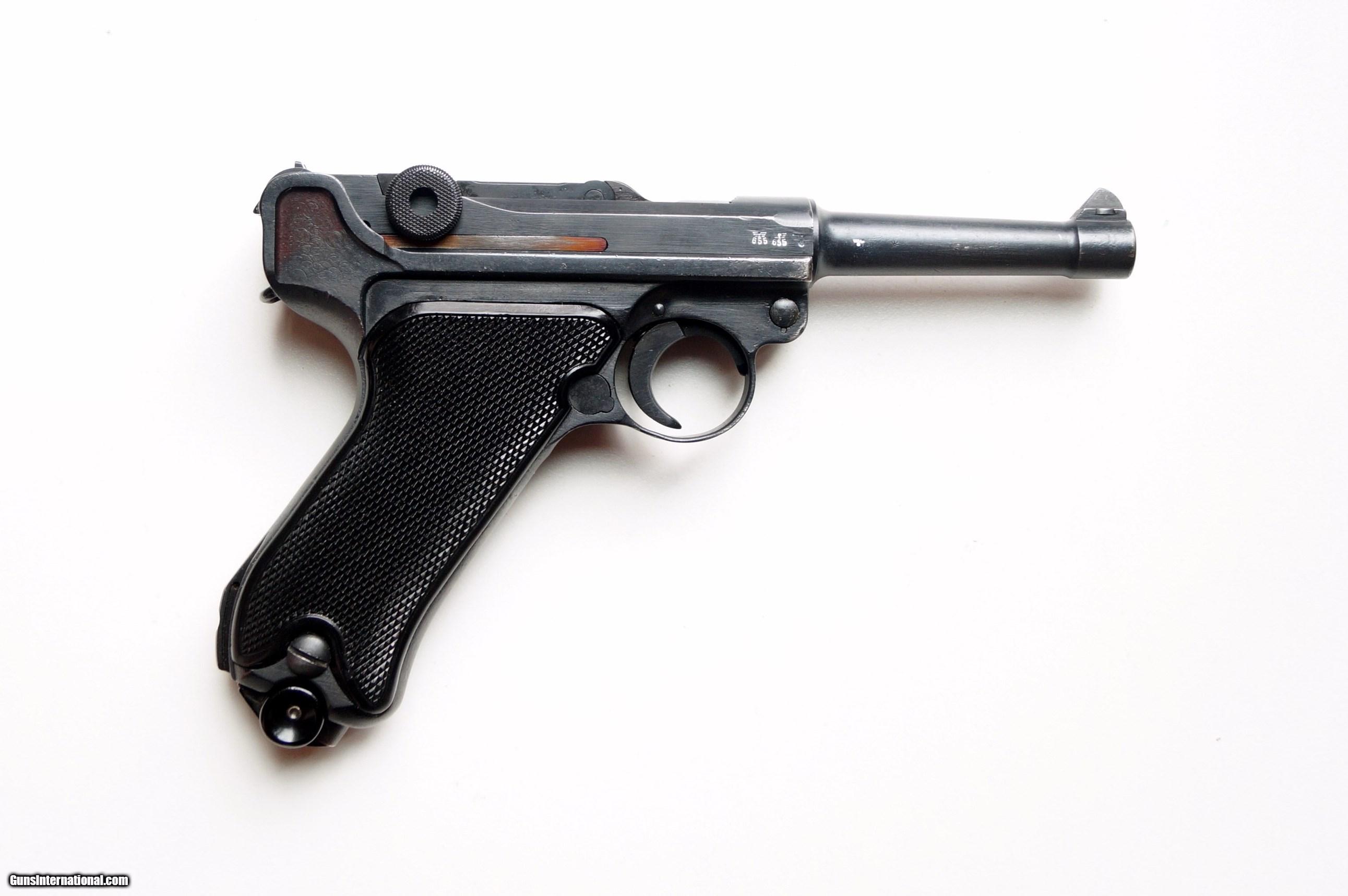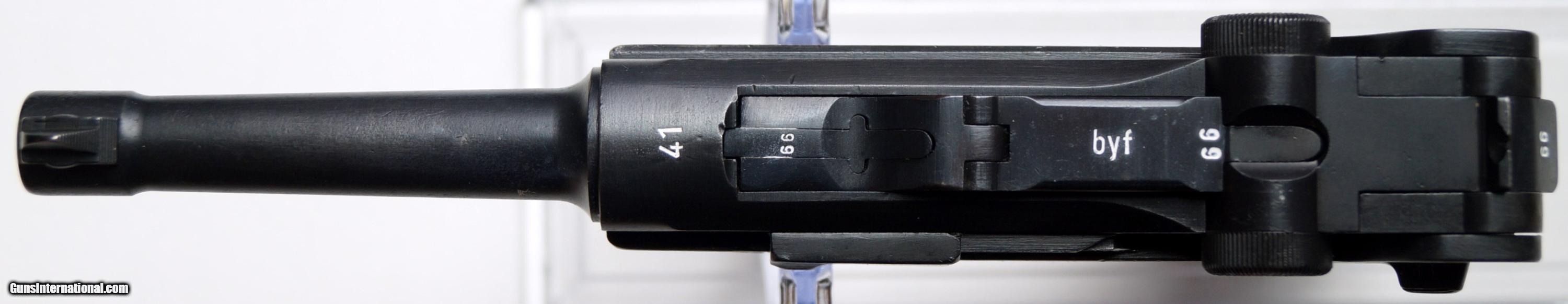 Description: THIS IS A 41 BYF ( MAUSER) NAZI BLACK WIDOW GERMAN LUGER RIG, 9MM. THE LUGER IS IN VERY GOOD CONDITION, ALL ORIGINAL INSIDE AND OUT, VERY GOOD BORE AND GRIPS, MECHANICALLY CORRECT AND TIGHT. THE RIG CONSISTS OF THE LUGER, 2 ORIGINAL NAZI MARKED FXO MAGAZINES, 1 ORIGINAL NAZI MARKED HOLSTER AND 1 ORIGINAL NAZI MARKED LOADING TOOL. THIS IS A VERY NICE ALL ORIGINAL WWII NAZI BLACK WIDOW RIG. SOLD Curio/Relic: Yes |
