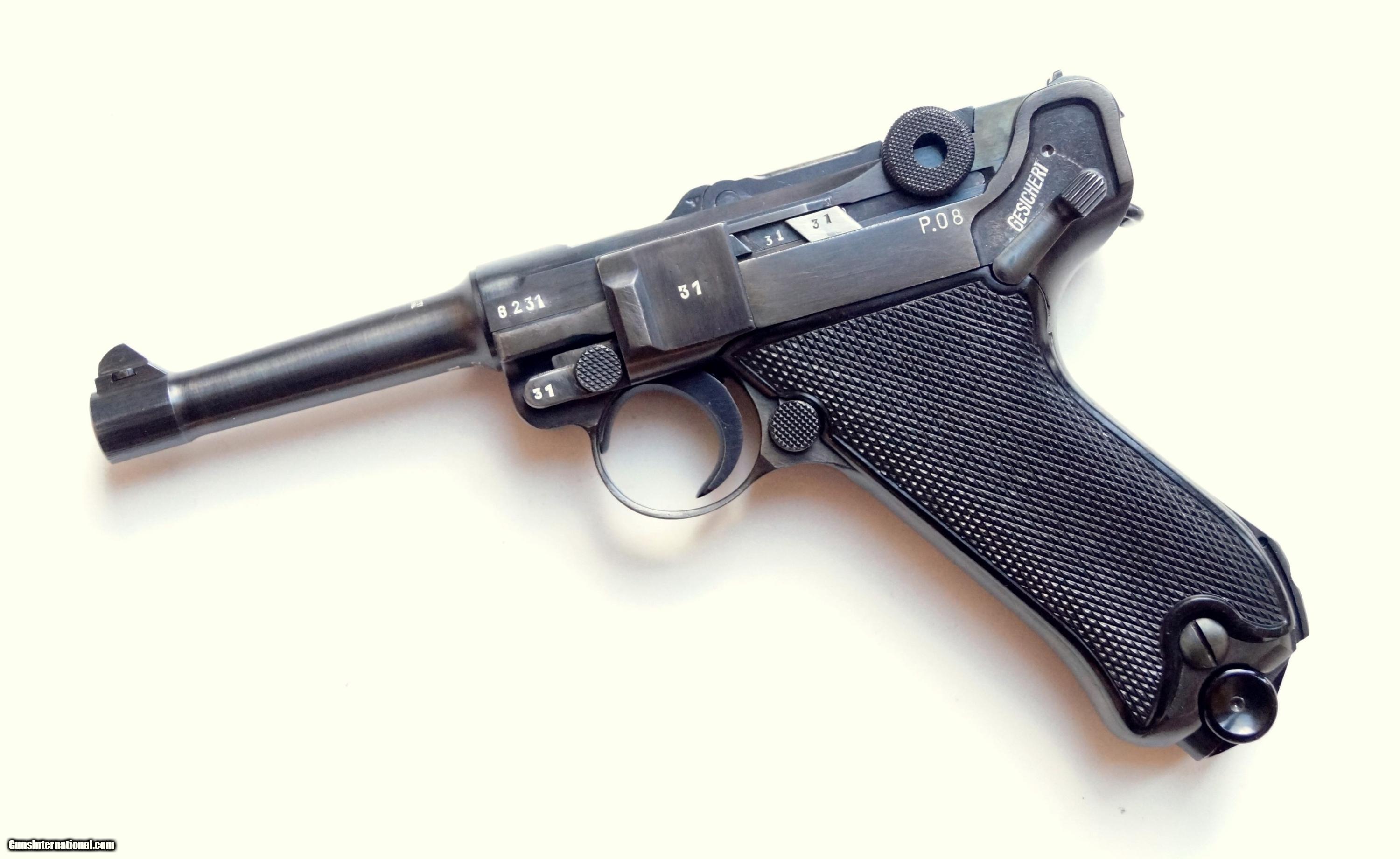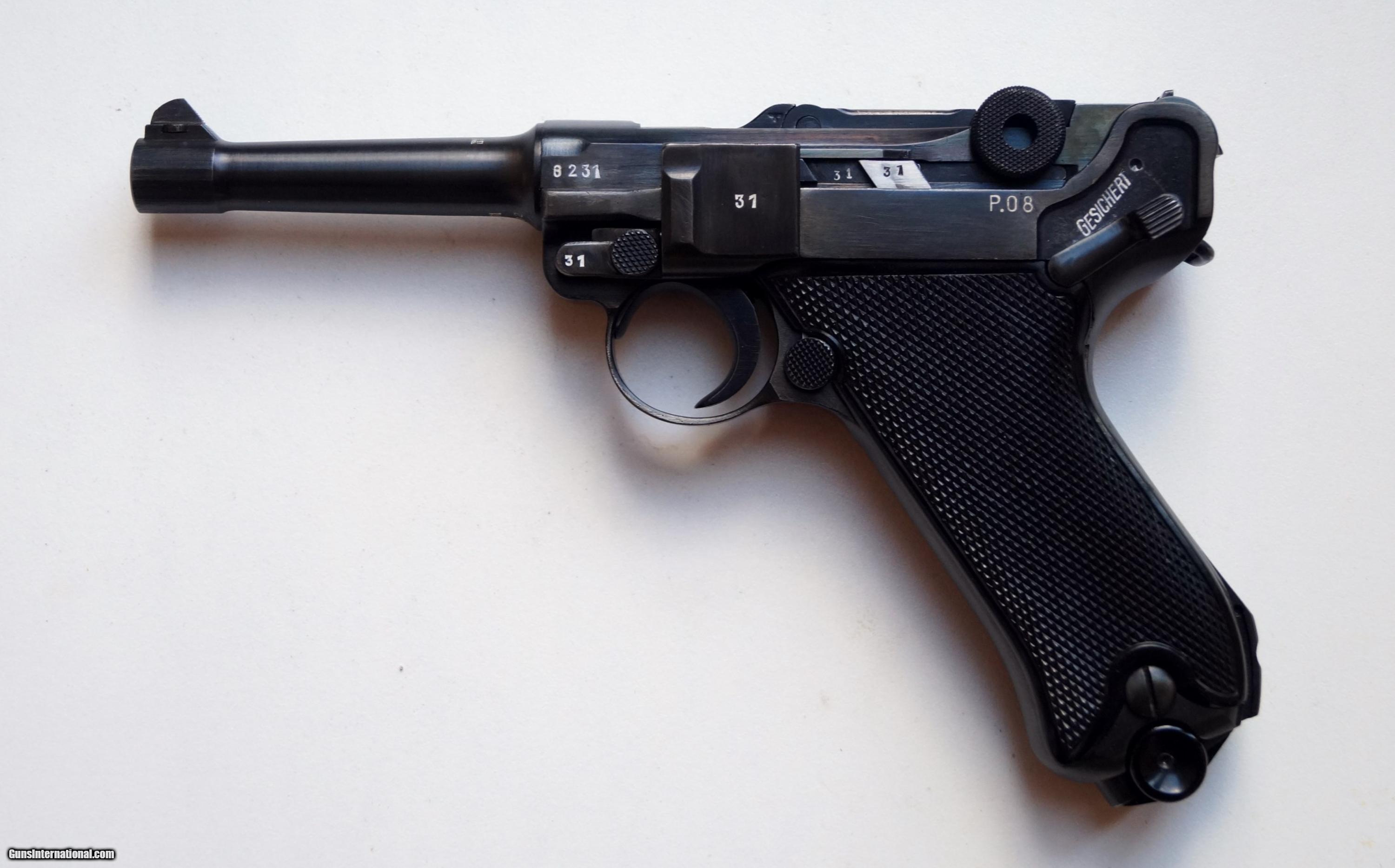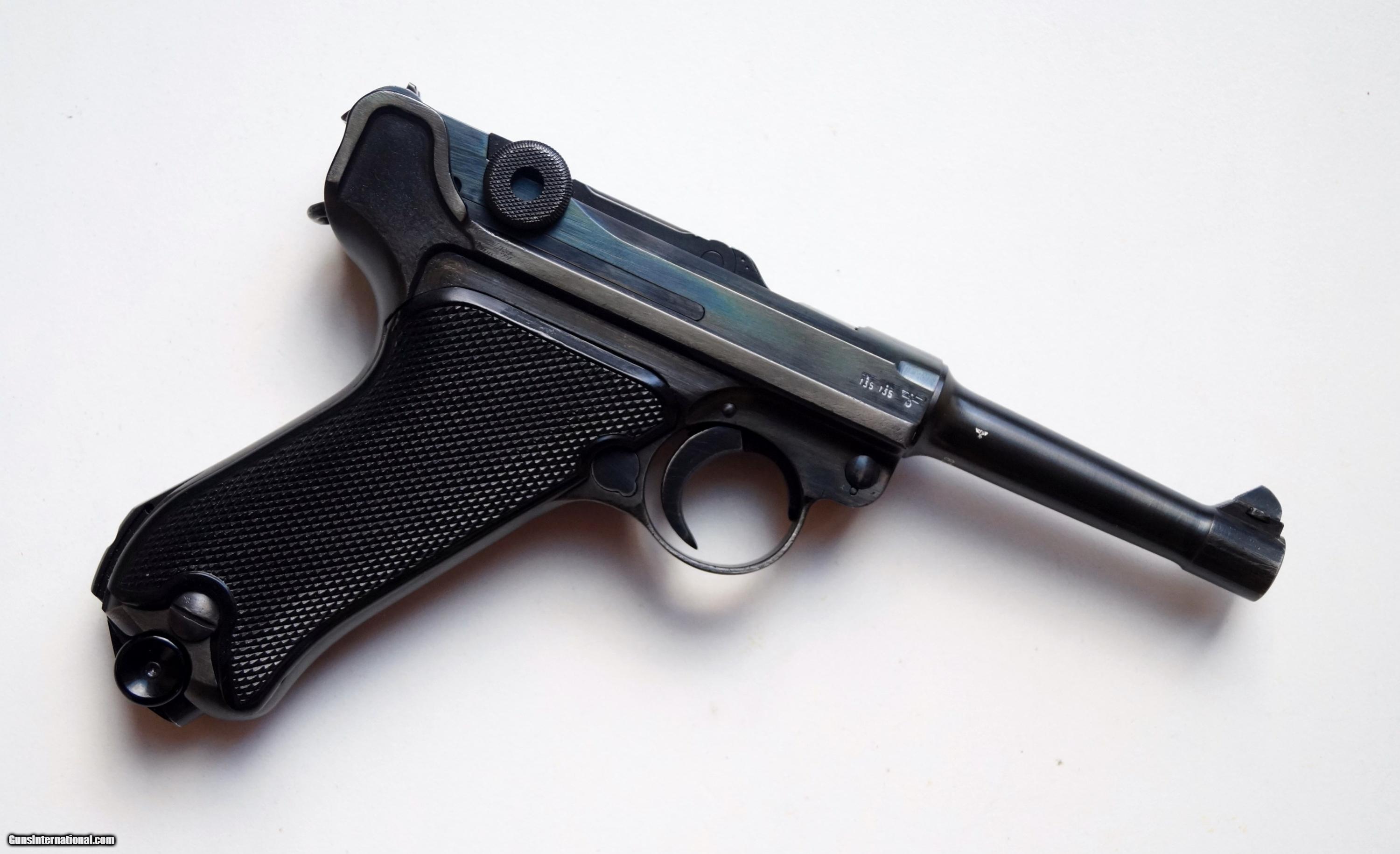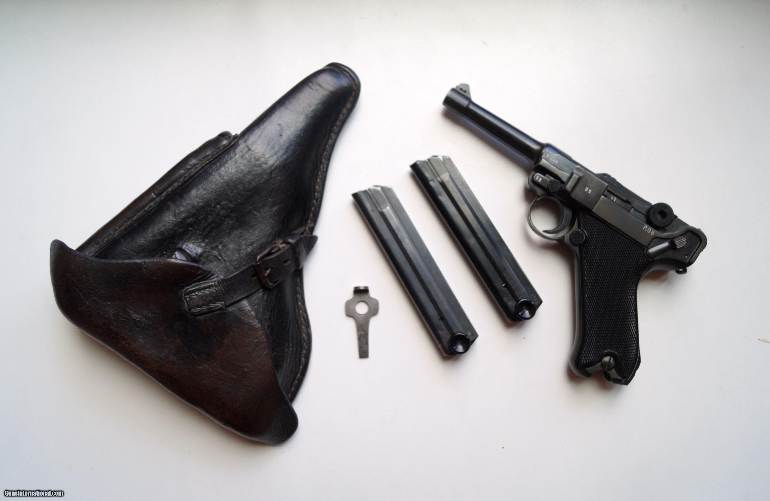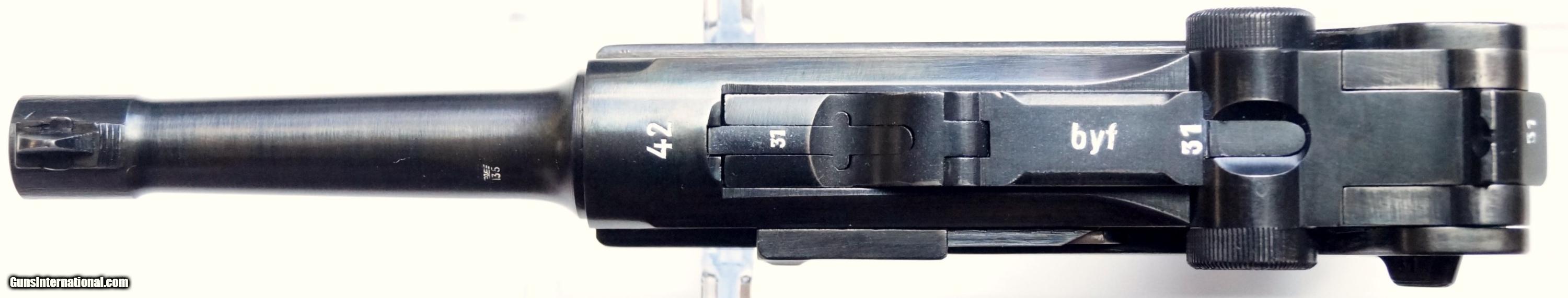 Description: THIS IS A 42 BYF (MAUSER) BLACK WIDOW GERMAN LUGER RIG, 9MM. THE LUGER IS IN VERY GOOD CONDITION, ALL ORIGINAL, NUMBER MATCHING, VERY GOOD BORE AND GRIPS, MECHANICALLY CORRECT AND TIGHT. THE RIG CONSISTS OF THE LUGER, 2 ORIGINAL NAZI MARKED FXO MAGAZINES, I ORIGINAL NAZI MARKED 1942 DATED HOLSTER AND 1 ORIGINAL NAZI MARKED LOADING TOOL. THEY DON'T COME BETTER THAN THIS. SOLD Curio/Relic: Yes |