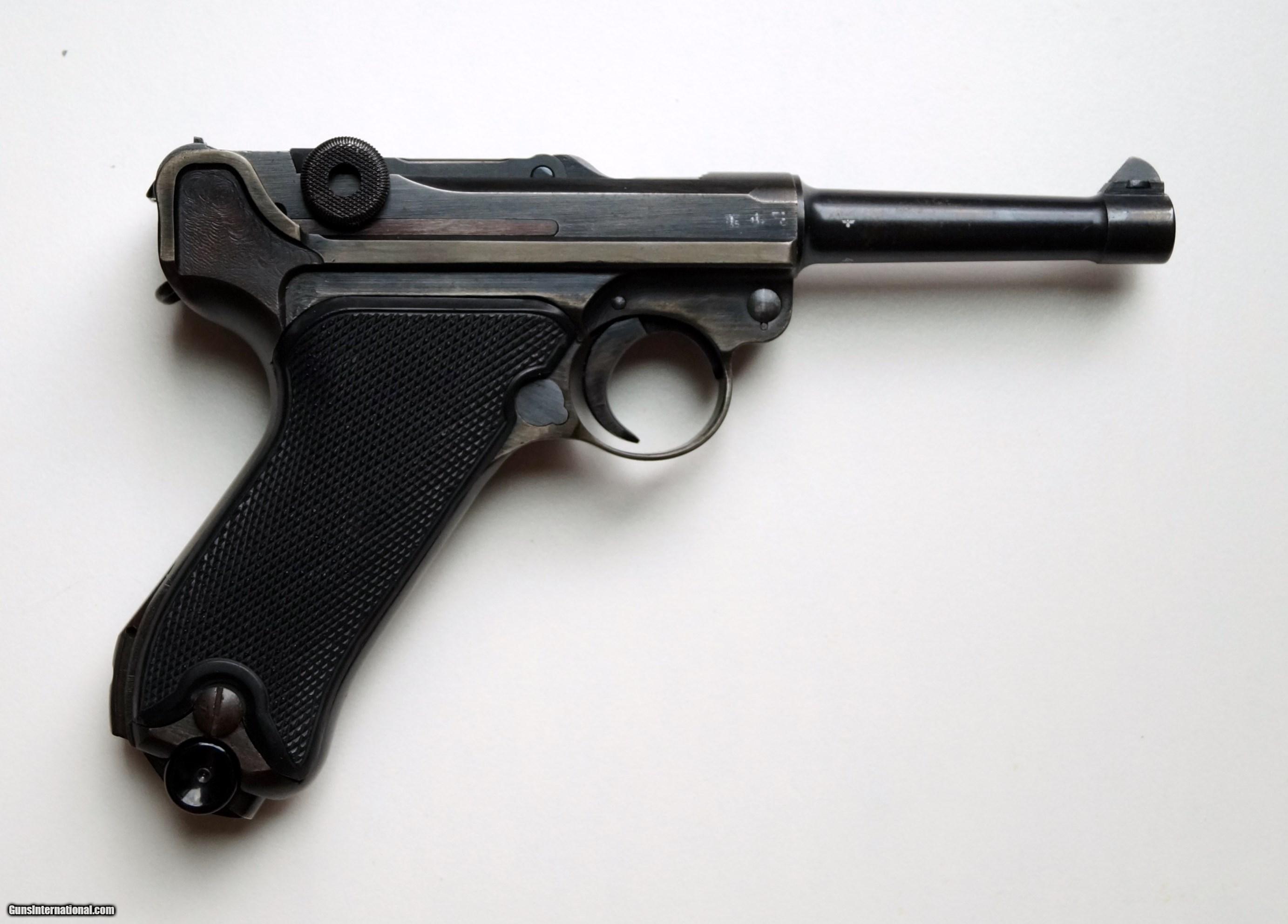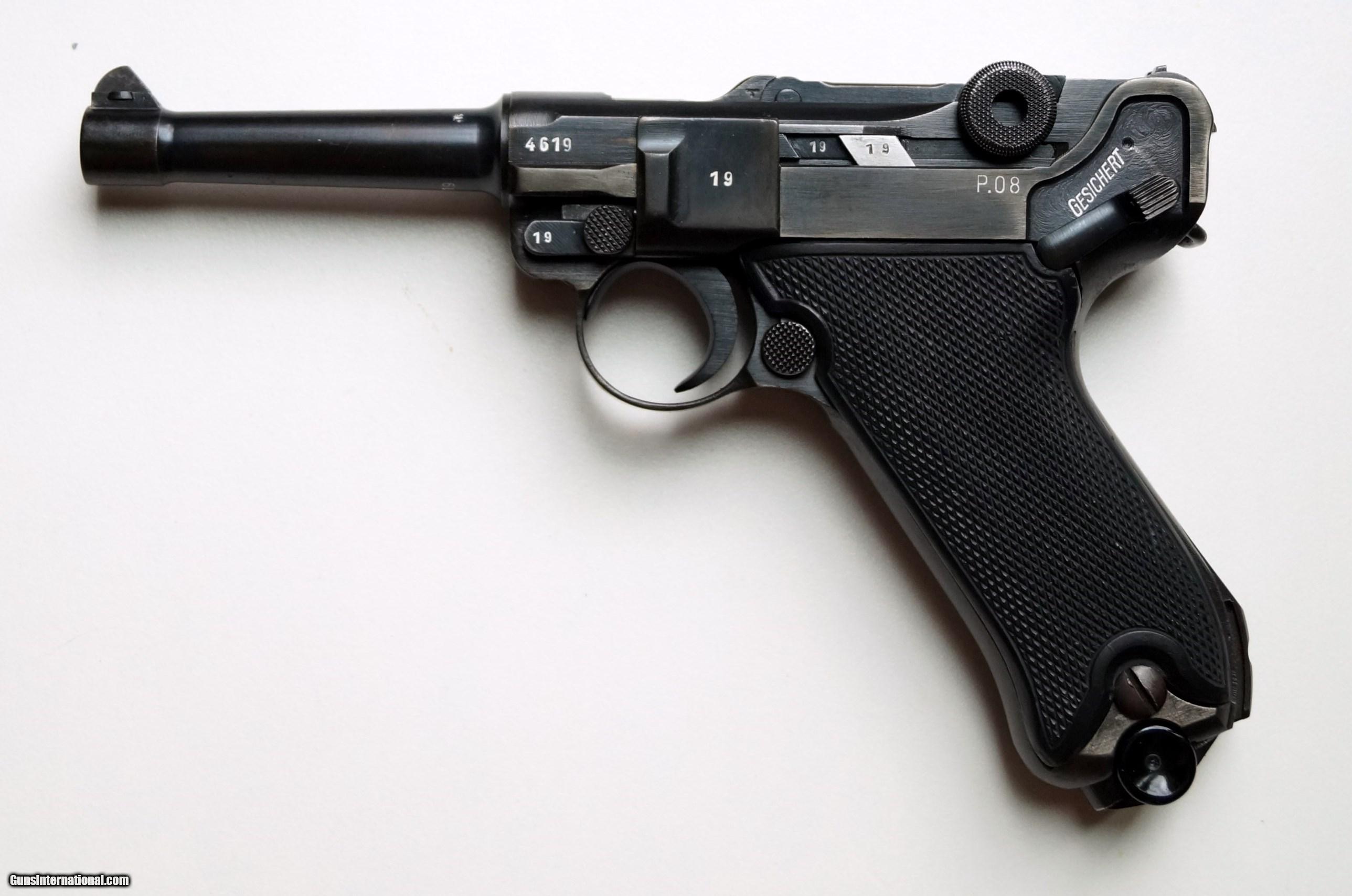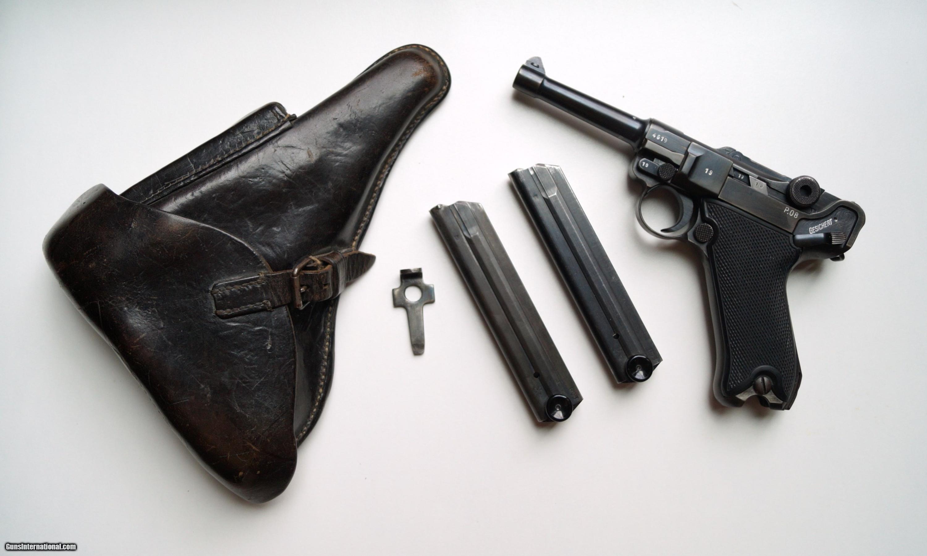 Description: THIS IS A 42 BYF (MAUSER) BLACK WIDOW GERMAN LUGER RIG, 9MM. THE LUGER IS IN VERY GOOD CONDITION, ALL ORIGINAL, NUMBER MATCHING, VERY GOOD BORE AND GRIPS, MECHANICALLY CORRECT AND TIGHT. THE RIG CONSISTS OF THE LUGER, 2 ORIGINAL NAZI MARKED FXO MAGAZINES, 1 ORIGINAL NAZI MARKED 1942 DATED HOLSTER AND 1 LOADING TOOL A VERY NICE WWII NAZI BLACK WIDOW GERMAN LUGER RIG. SOLD Curio/Relic: Yes |