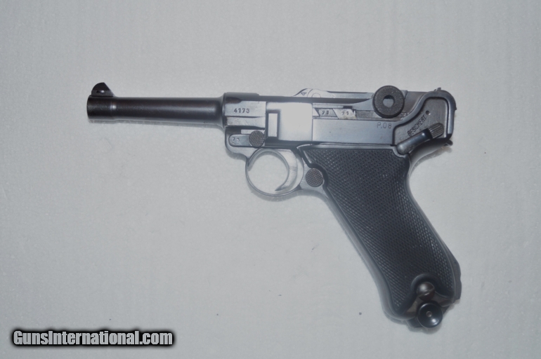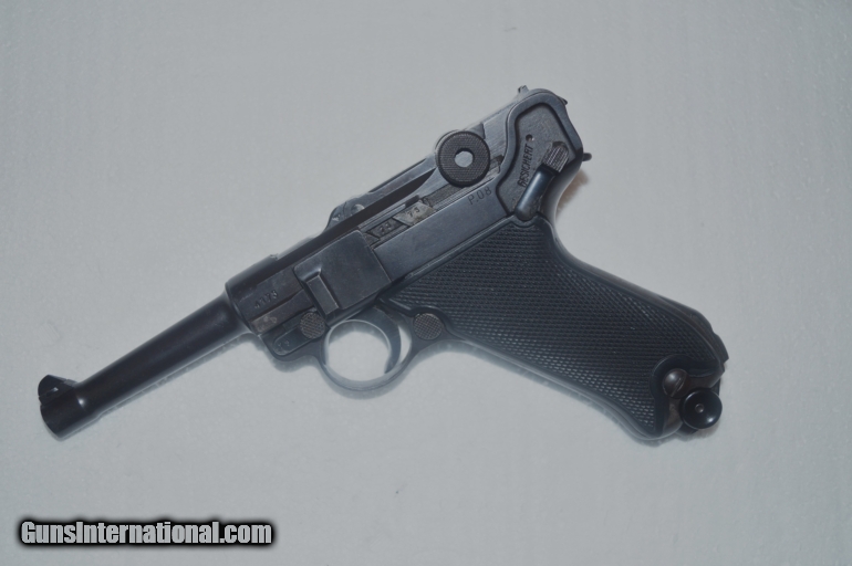 Description: THIS IS A 42 BYF NAZI BLACK WIDOW GERMAN LUGER, 9MM. THE LUGER IS IN GOOD CONDITION, ALL ORIGINAL, NUMBER MATCHING, VERY GOOD BORE AND GRIPS,MECHANICALLY CORRECT AND TIGHT. THE MAGAZINE IS AN ORIGINAL NAZI MARKED FXO TYPE. A NICE NAZI WWII BLACK WIDOW GERMAN LUGER. SOLD Curio/Relic: Yes |