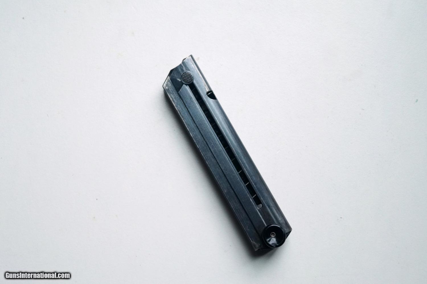 Description: THIS IS A 42 BYF (MAUSER) BLACK WIDOW GERMAN LUGER, 9MM. THE LUGER IS IN GOOD CONDITION, IT SHOWS NORMAL WEAR, ALL ORIGINAL, NUMBER MATCHING INSIDE AND OUT, VERY GOOD BORE AND GRIPS, MECHANICALLY CORRECT AND TIGHT. A NICE WWII BLACK WIDOW LUGER AT AN AFFORDABLE PRICE. NOTE: THE MAGAZINE IS AN ORIGINAL NAZI MARKED FXO TYPE. SOLD Curio/Relic: Yes |