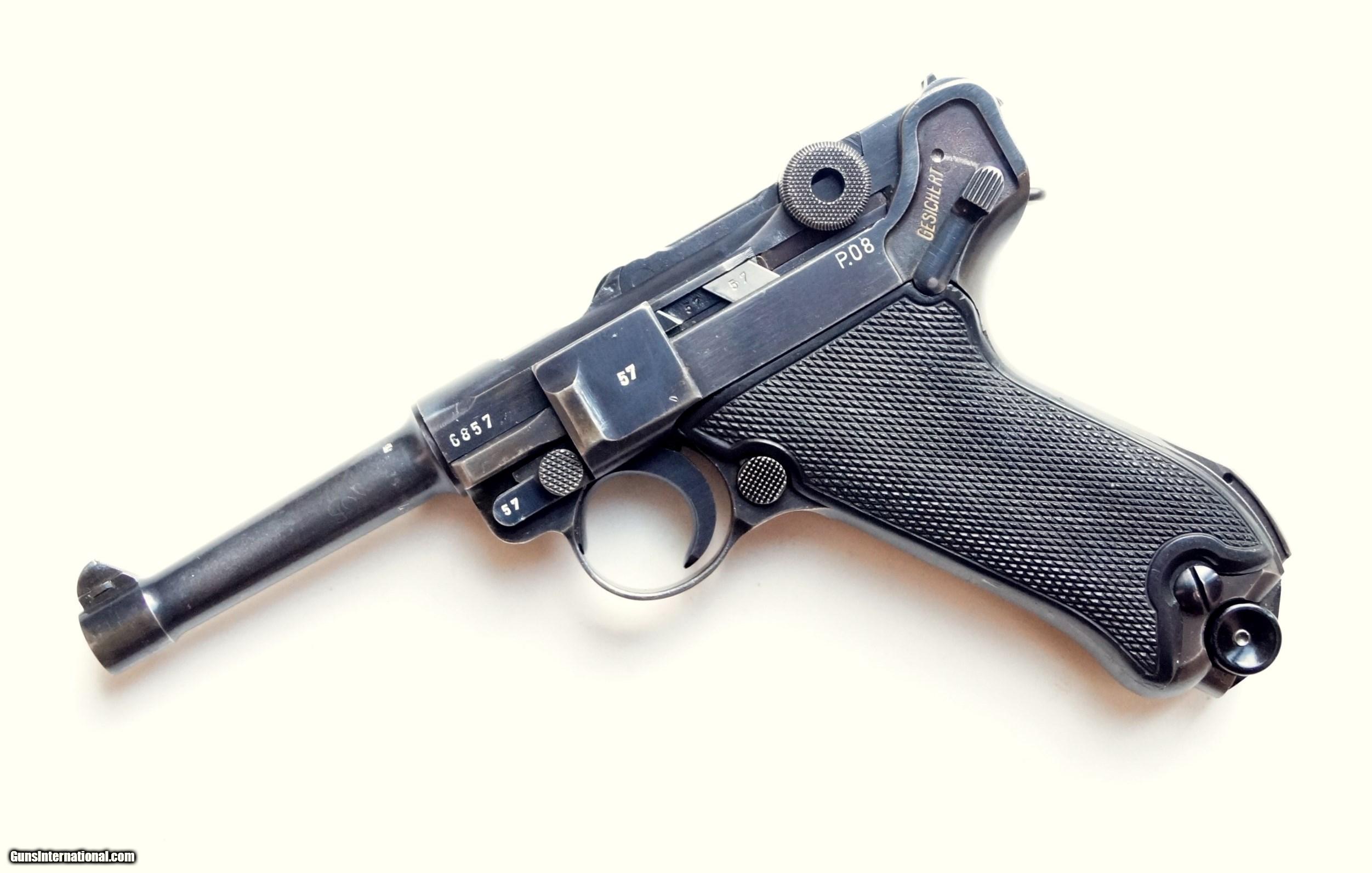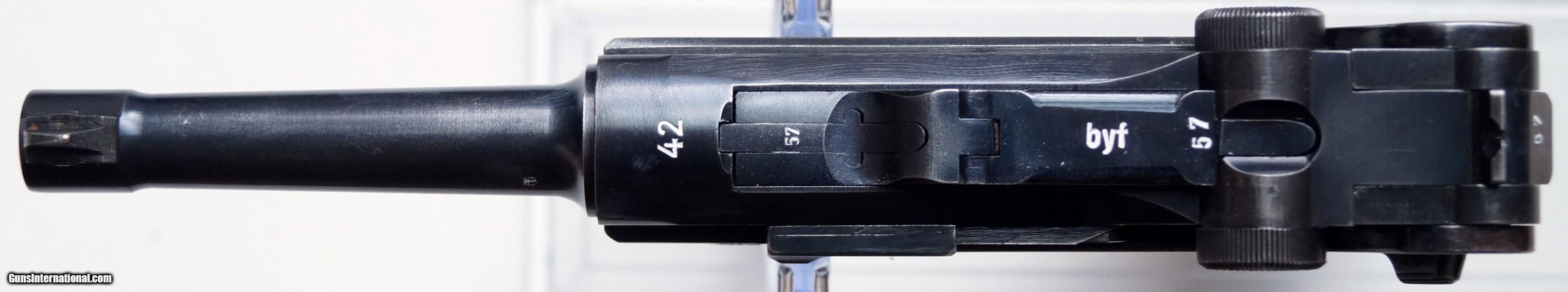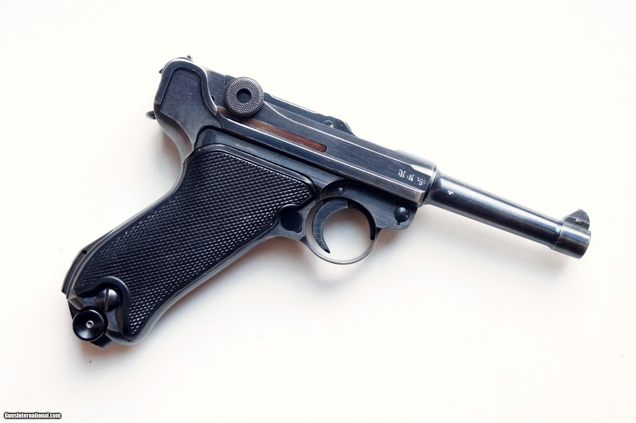 Description: THIS IS A 42 BYF (MAUSER) BLACK WIDOW GERMAN LUGER, 9MM. THE LUGER IS IN VERY GOOD CONDITION, ALL ORIGINAL, NUMBER MATCHING, VERY GOOD BORE AND GRIPS, MECHANICALLY CORRECT AND TIGHT. A VERY NICE WWII NAZI BLACK WIDOW GERMAN LUGER. SOLD Curio/Relic: Yes |