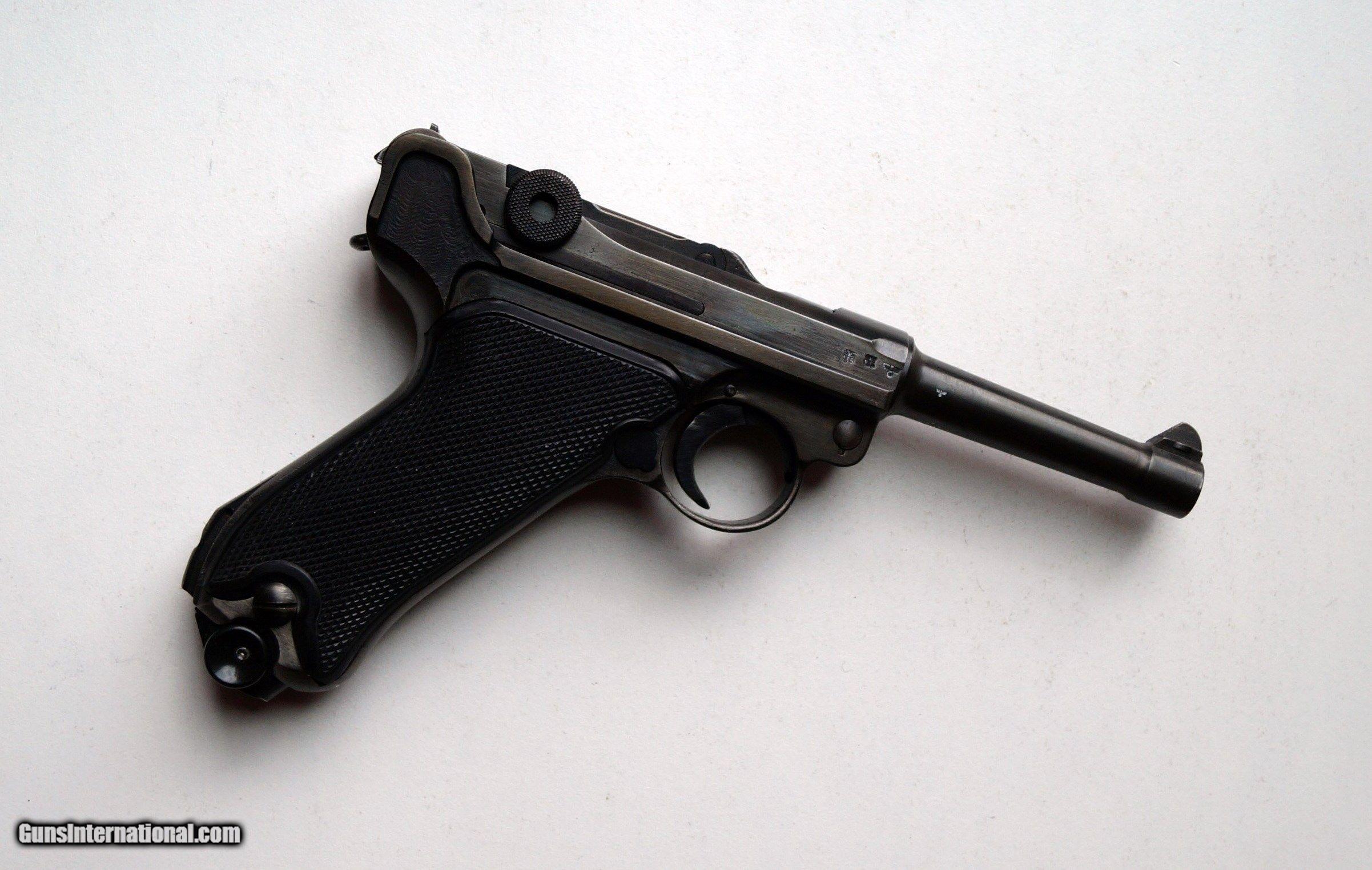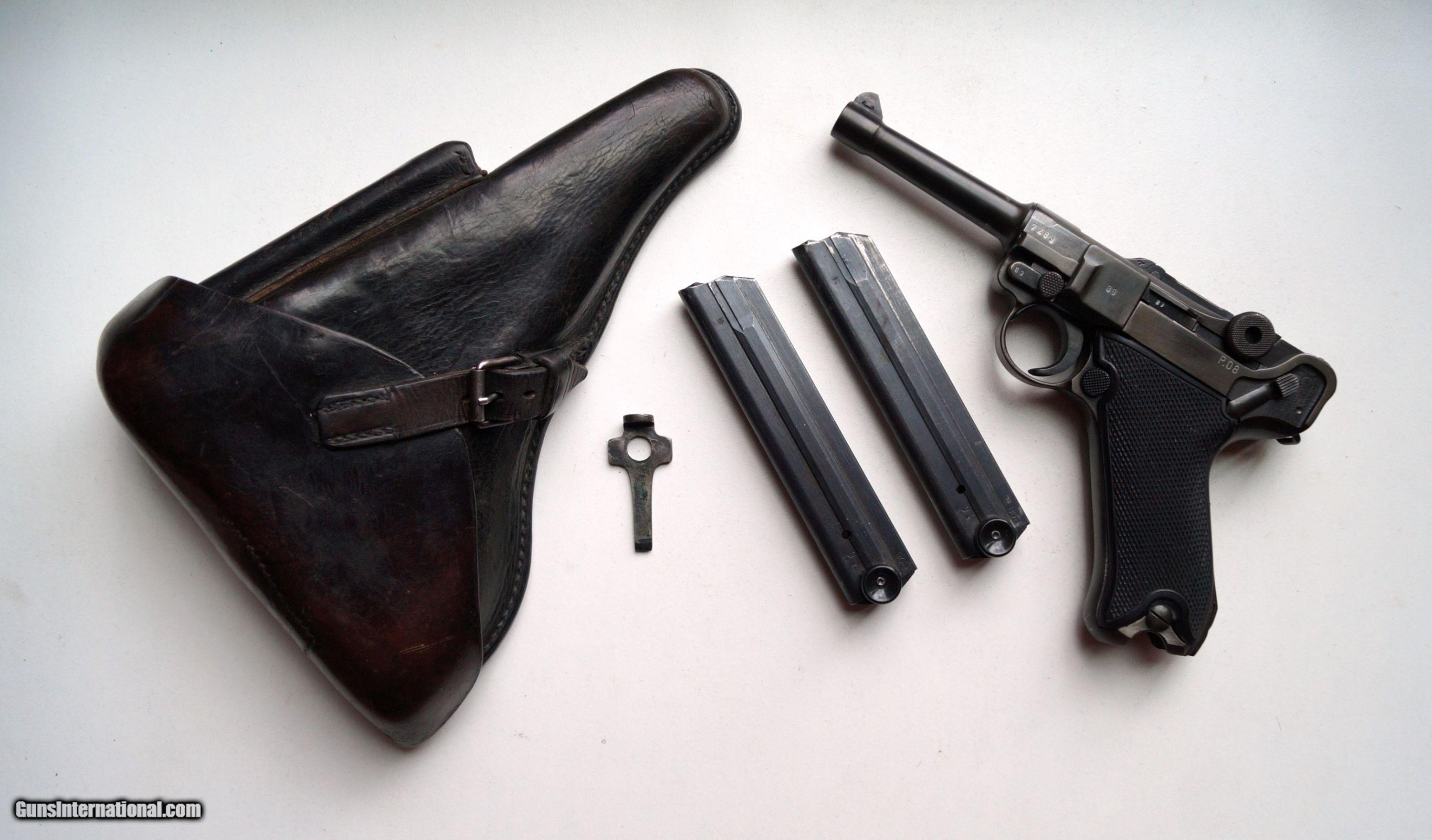 Description: THIS IS A 42 BYF (MAUSER) NAZI BLACK WIDOW GERMAN LUGER RIG, 9MM. THE LUGER IS IN VERY GOOD CONDITION, NUMBER MATCHING, VERY GOOD BORE AND GRIPS, MECHANICALLY CORRECT AND TIGHT. THE RIG CONSISTS OF THE LUGER , 2 ORIGINAL NAZI MARKED FXO MAGAZINES, 1 ORIGINAL NAZI MARKED HOLSTER AND 1 ORIGINAL NAZI MARKED LOADING TOOL. A VERY NICE WWII NAZI BLACK WIDOW GERMAN LUGER RIG. SOLD Curio/Relic: Yes |