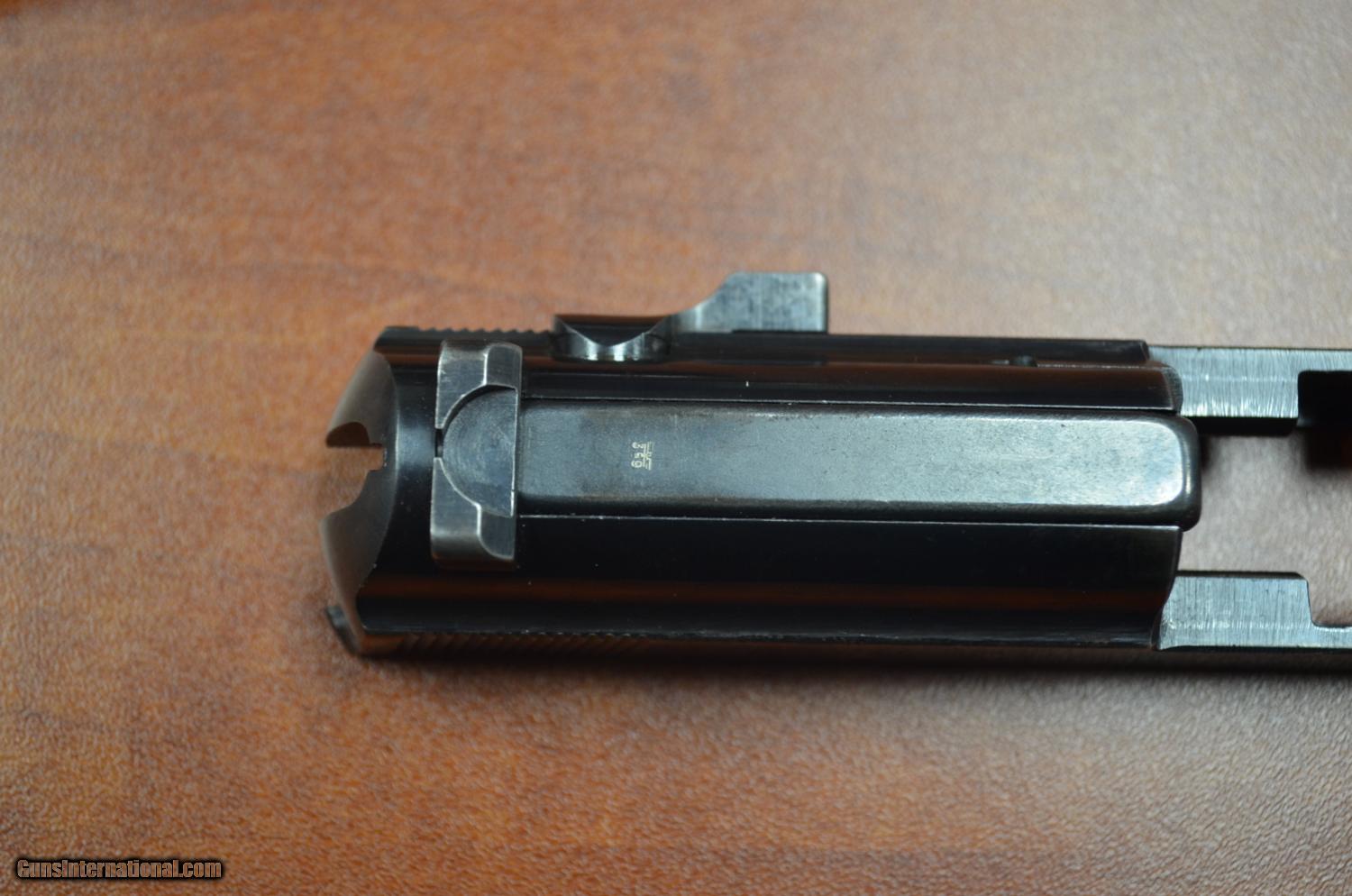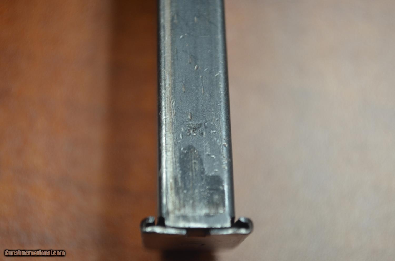 Description: AC(Walther) P-38 9mm 5”barrel- This pistol is an rare early AC(Walther) P-38 made in 1940. The pistol has the original high polished blue finish with Eagle/359 waffenamts. The pistol has all matching parts, including grips except for the magazine which is an early numbered mag. in the same letter block with double E/359 stamps. The front strap of grip shows wear from service use. The pistol has a bright bore and strong grooves. Please call and ask for Jason in sales at 610.258.5500 Ext 104, Tuesday through Saturday 10am-6pm. All guns subject to sale in our retail location. SOLD Curio/Relic: Yes Manufacturer: AC(Walther) Model: P-38 Caliber Info: 9mm Bore: Bright Finish: Bright Blue Sights: fixed Manufacture Date: 1940 |
