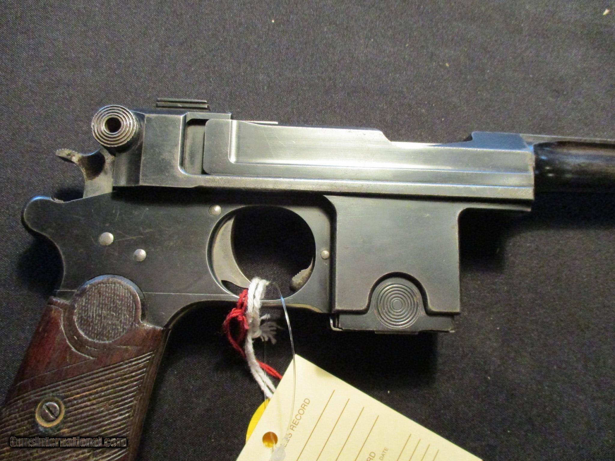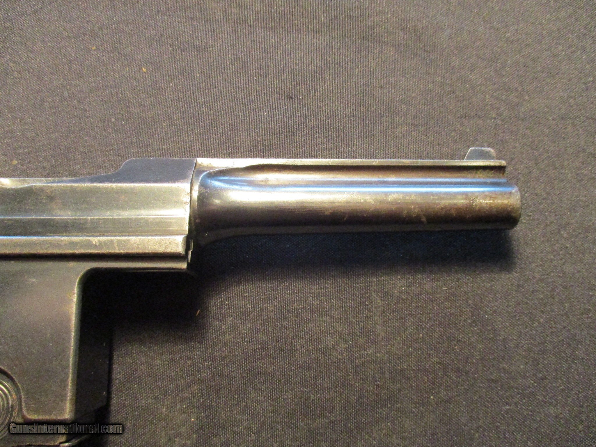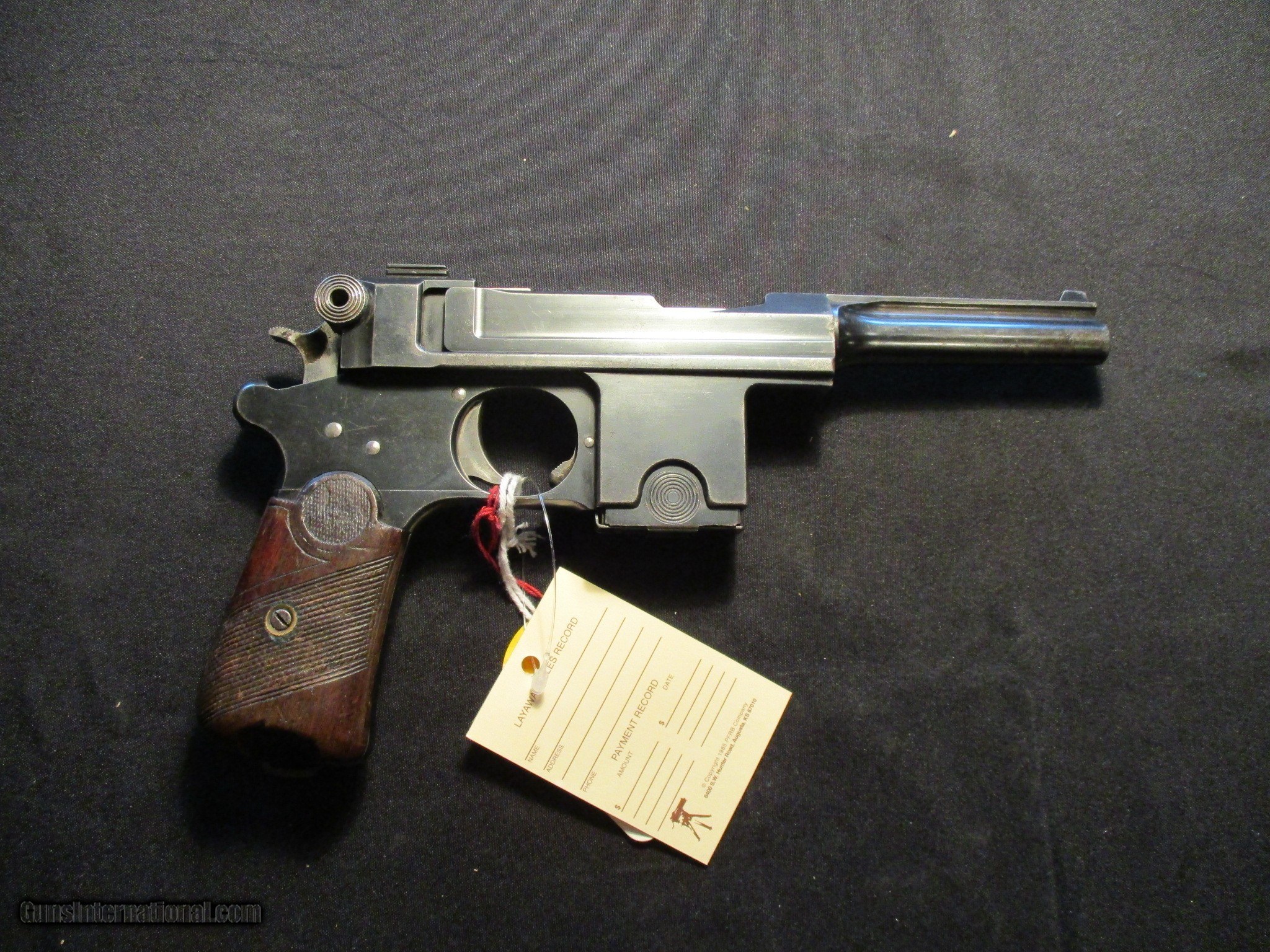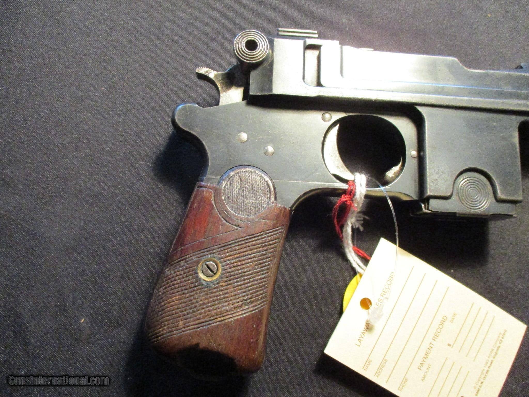Description: Bergmann Bayard Model 1908, 9mm with a 4" barrel. Factory finish on both grips and metal, Nice clean hard to find gun! Sn is 160xx. Receiver is marked Brevette S.G.D.G. also stamped Anciens Etablissements Pieper Herstal-Liege Bergmanns Patent. Email me if you would like these pics sent to you, they will come through bigger and better than on the listing page here. Email me with any questions. I am a store front dealer, and I will close s if the gun sells locally. Once it has aI will pull it from my shelves. Please check your local laws to confirm it is legal to own in your state! Buyer pays $25 shipping and insurance to your FFL in the lower 48. AK, HI or PR is extra. I will ship to California, NO PROBLEM! All my guns come with a non firing, 3 day unconditional return privilege, from the day UPS delivers to your dealer. Buyer pays shipping both ways if the gun comes back. I can add a new hard case by PLANO for secure shipping for $25 if the buyer wishes (highly recommended, cheap insurance, really helps keep the UPS monster from eating my guns!). No sales tax on guns ship out of Kansas, guns sold in Kansas are subject to Kansas sales tax. I am a licensed FFL, and will include a copy of my FFL with the gun for your dealers records. I will ship to a C&R if the gun is eligible. I will ship to California, but you need to confirm the gun is legal where you are, California or other. I am always looking for good clean, old original Winchesters to buy, consign, or trade, especially pre '64's model 70's and model 54's. WE ALSO TRADE FOR CLASSIC CARS AND TRUCKS! Email me with any questions, and good luck! SOLD |